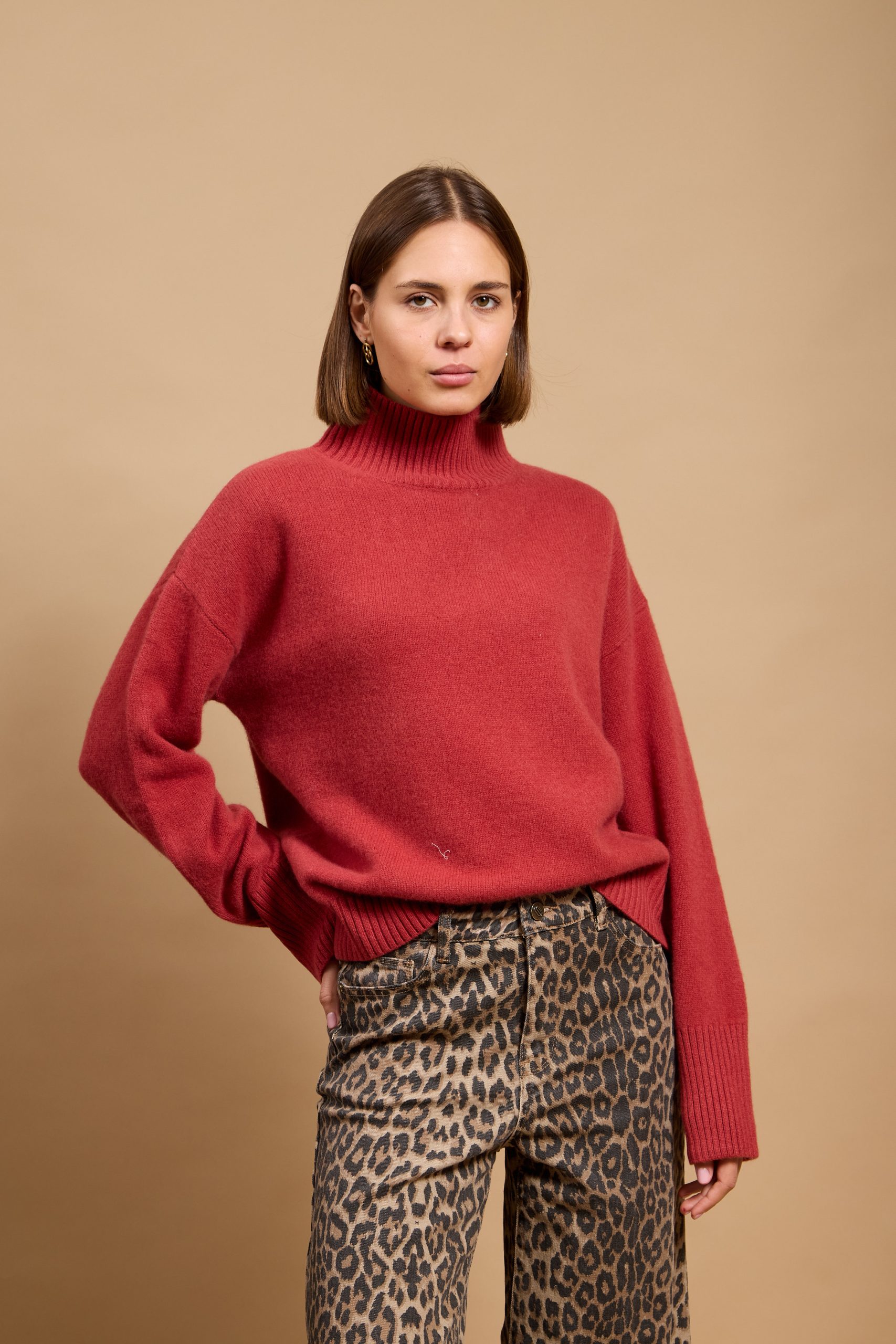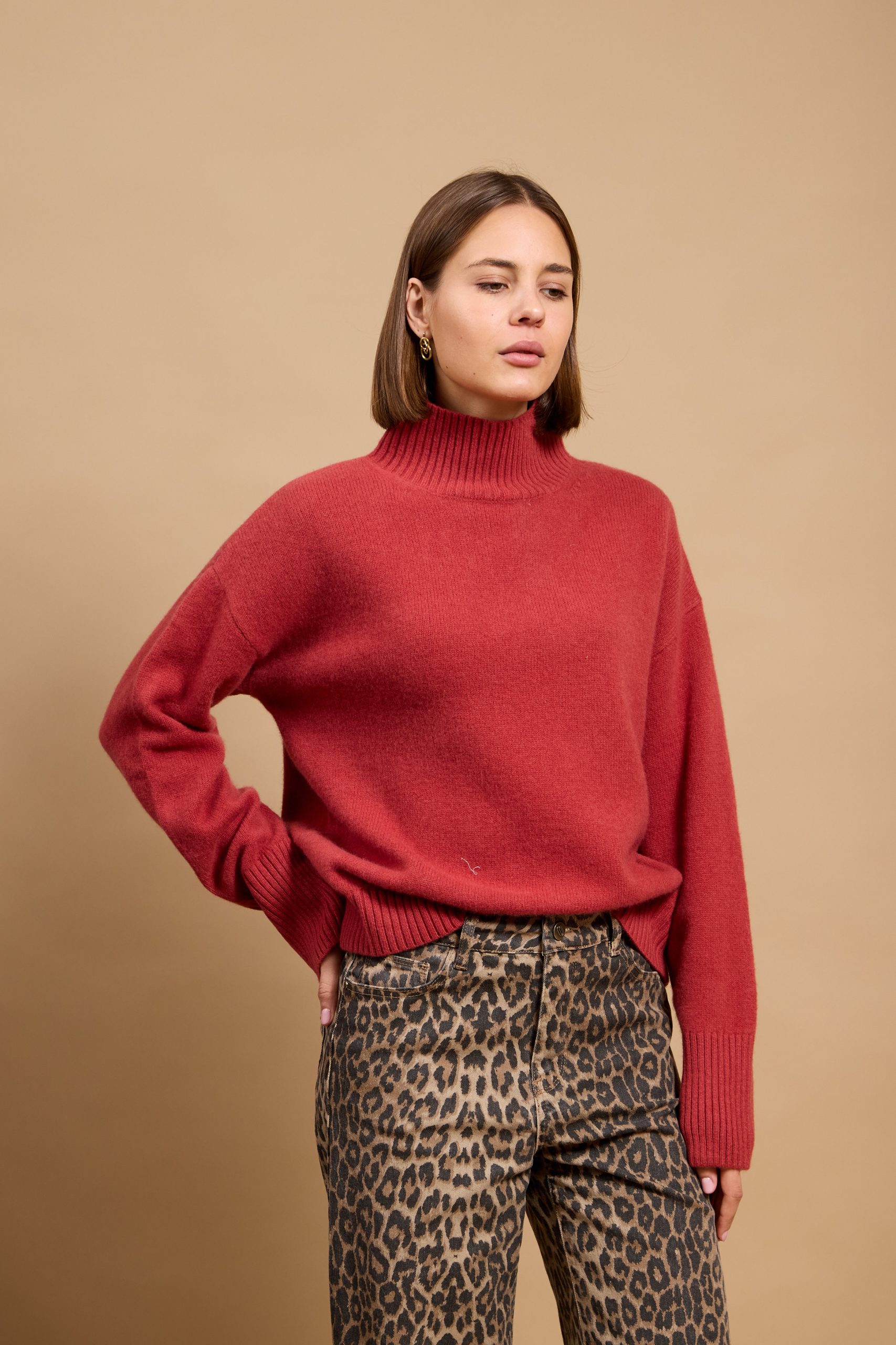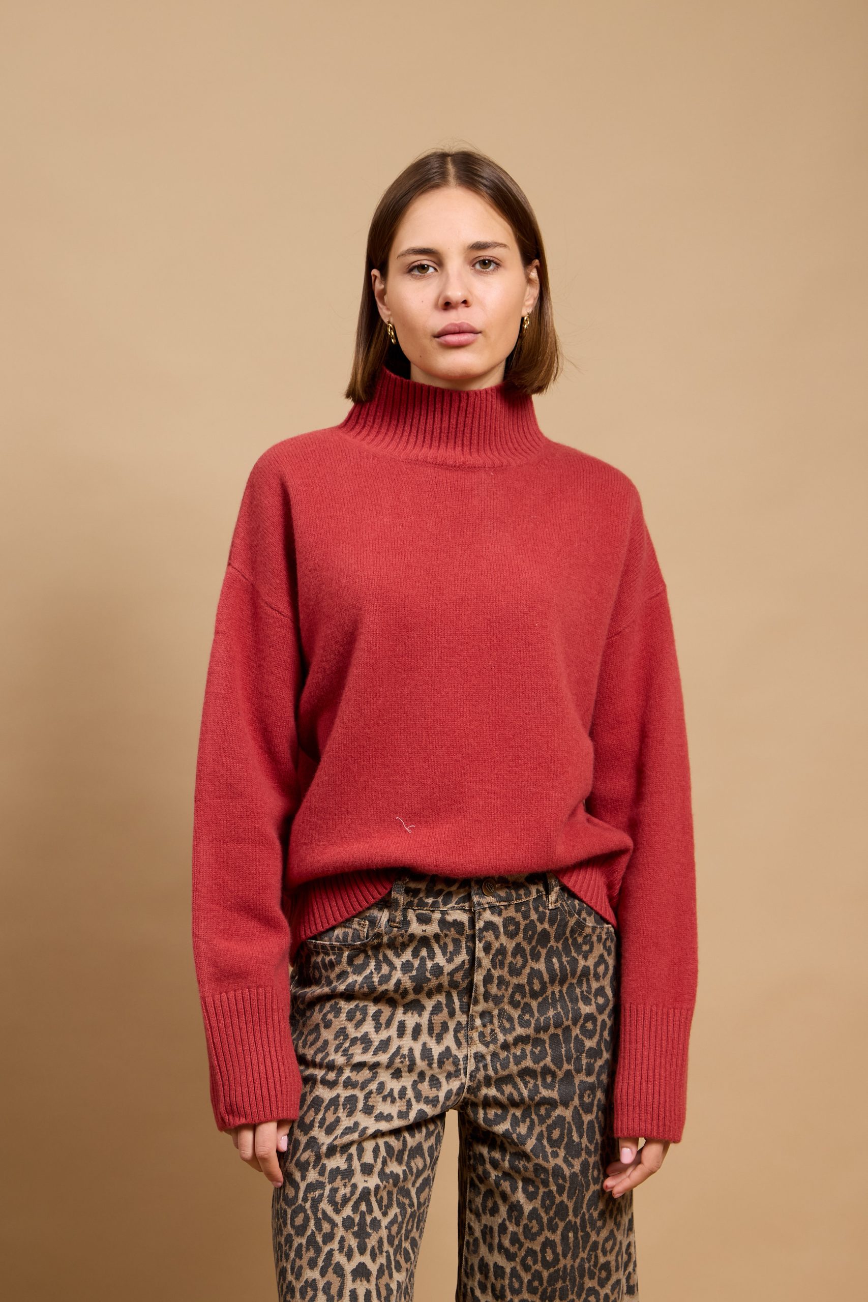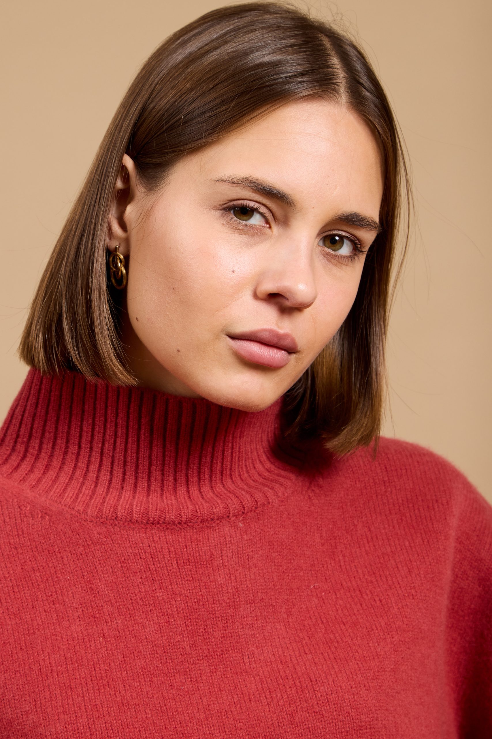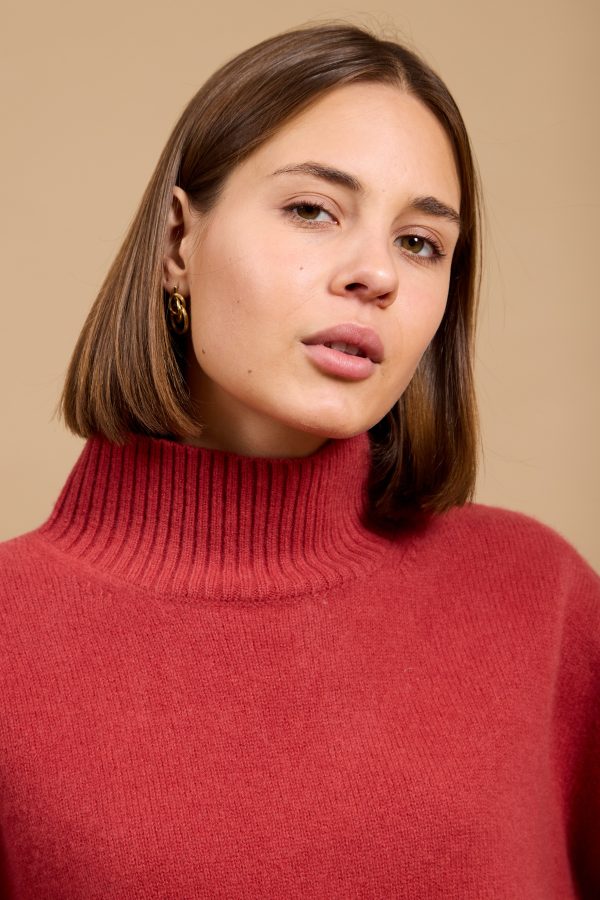 Lennon sweater offers refined comfort. This turtleneck sweater is so versatile and cosy. Spun from soft wool, it has a relaxed fit with a cropped hem and chunky ribbed trims. It’s finely knitted with touches of  wool for a really lightweight and breathable handle. The striking  hue will instantly freshen up your complexion and complements everything from neutral tones to dark denim. Designed in a classic turtleneck shape,  in a relaxed fit enhanced by dropped shoulders . Switch between styling it with boyfriend jeans, slouchy tailoring and tulle skirts.