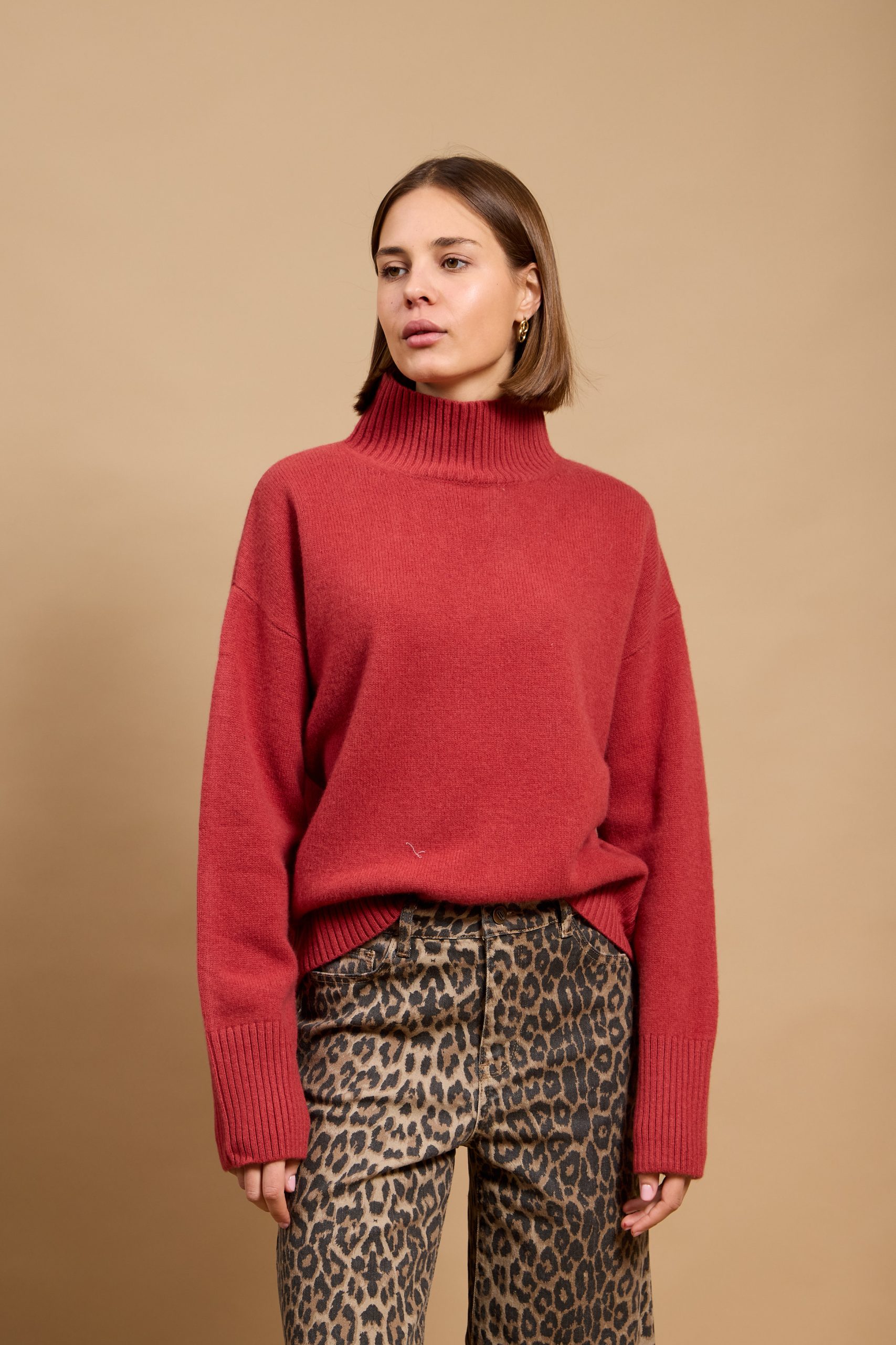 Lennon – Wool hooded Turtleneck Sweater In cinnamon