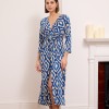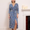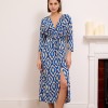Leona – Knotted waist midi dress in blue snake