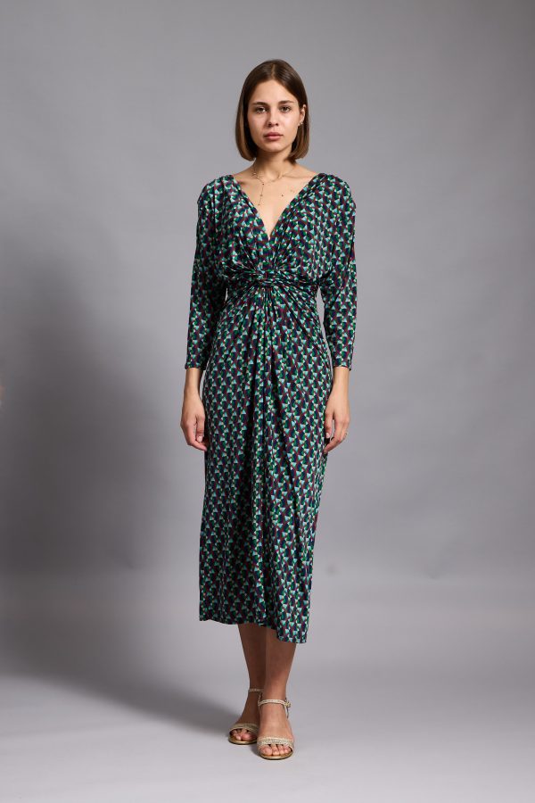 This Leona midi dress is cut from stretch-jersey with long sleeves and a twisted neckline. It’s designed for a slim fit with a twisted bodice and slit skirt. This printed dress is artfully twisted into a slightly more feminine shape than classic styles. Style yours with drop earrings and high heels for maximum impact.