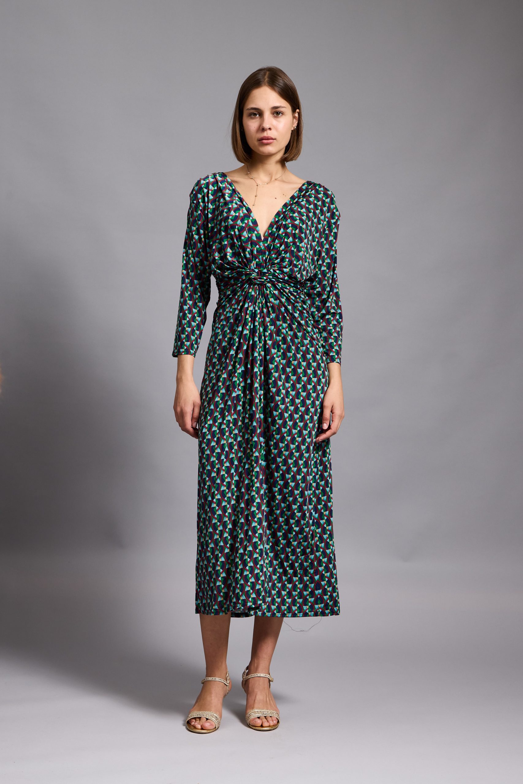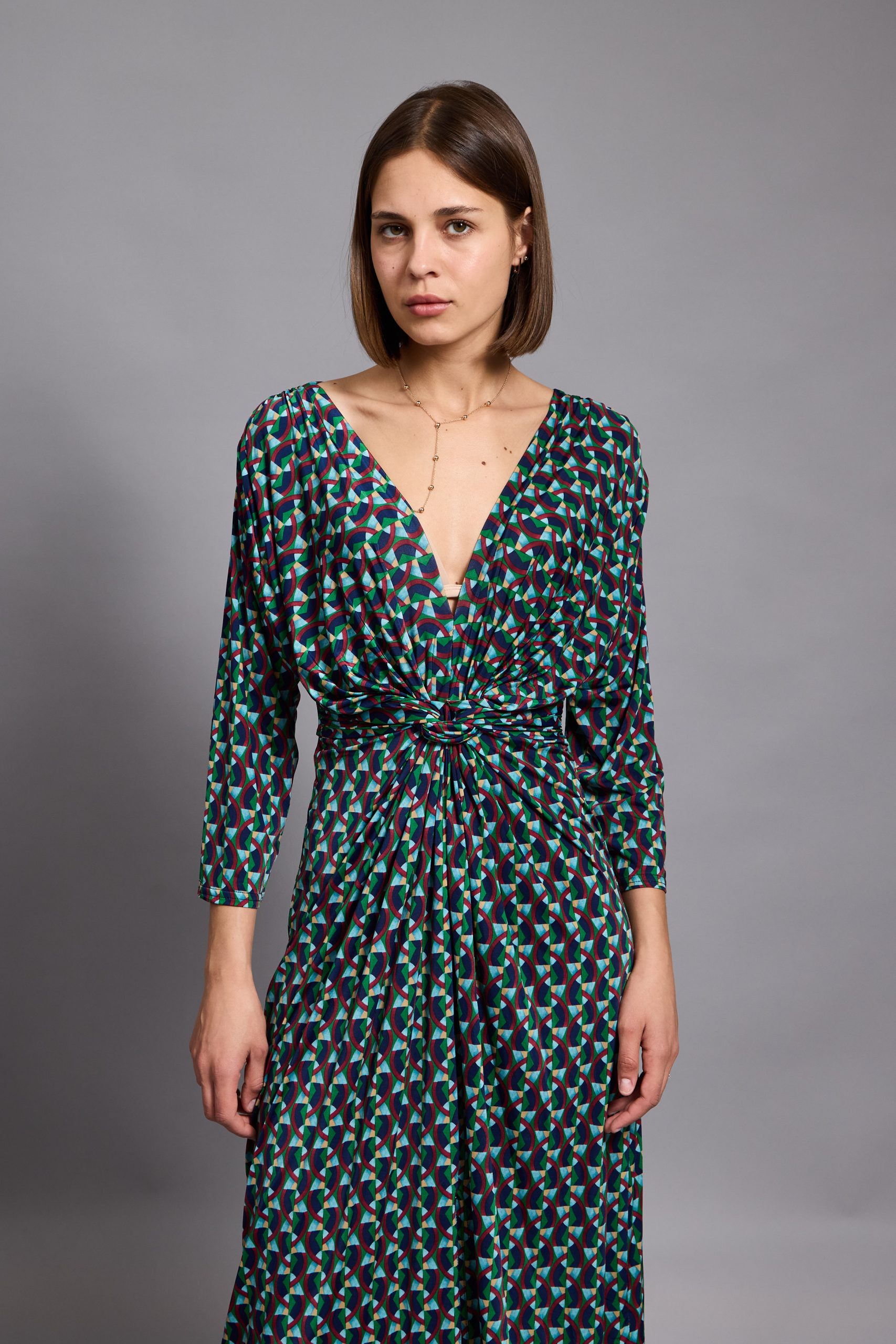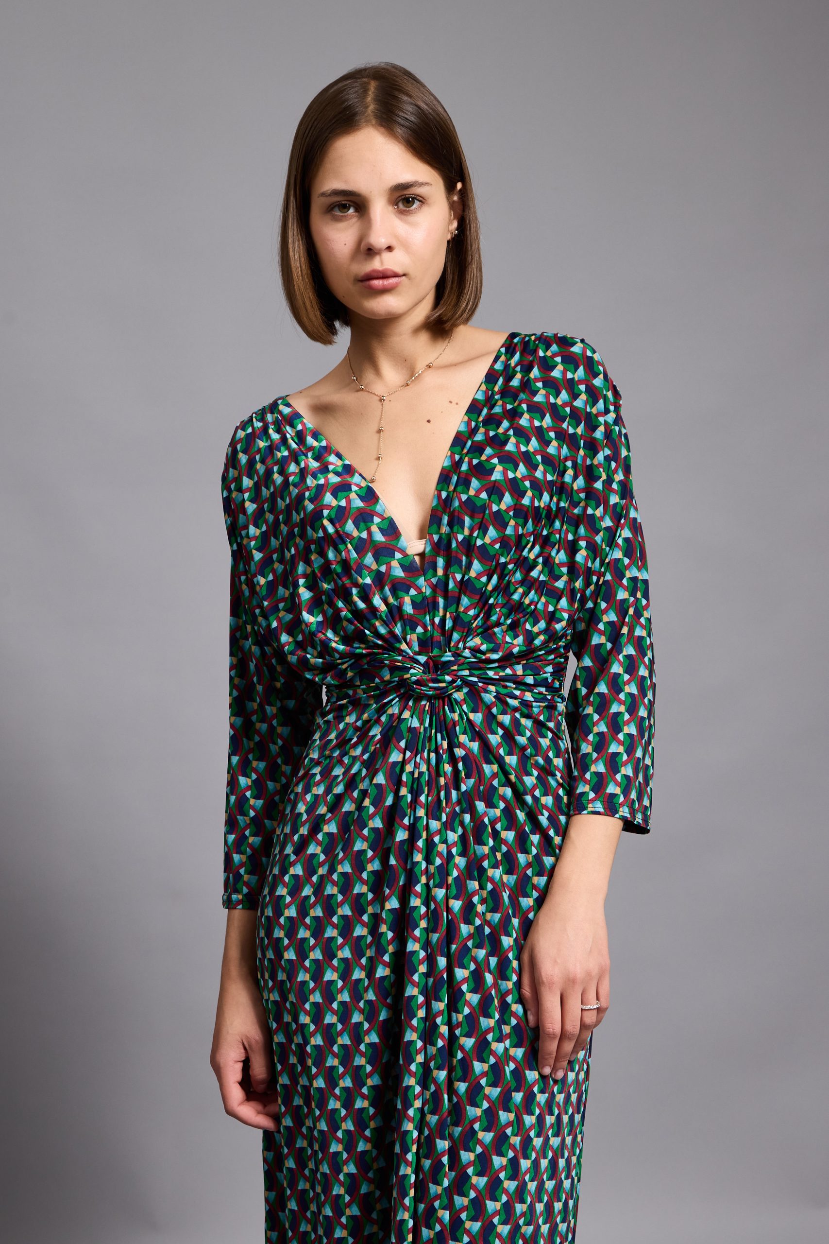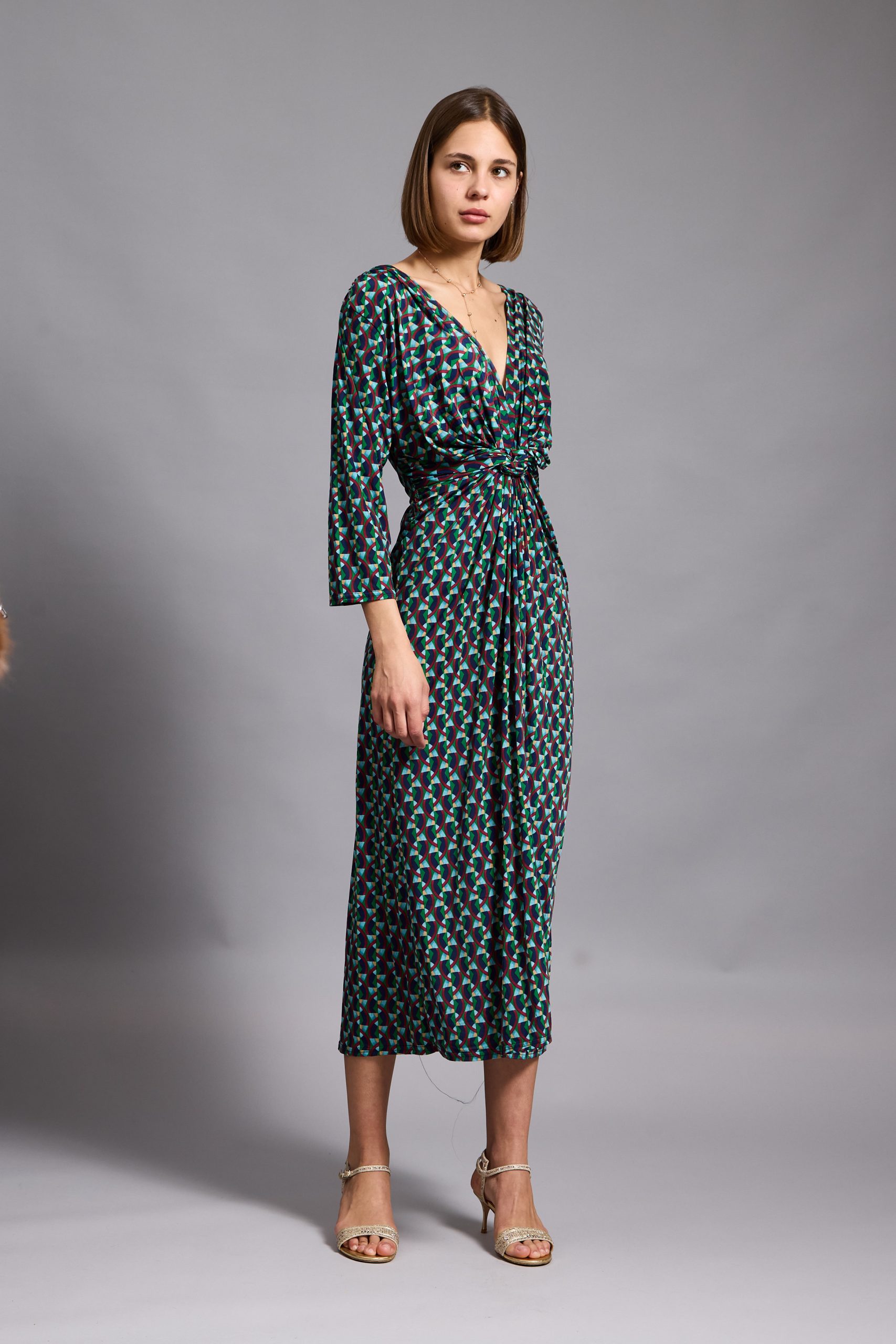 This Leona midi dress is cut from stretch-jersey with long sleeves and a twisted neckline. It’s designed for a slim fit with a twisted bodice and slit skirt. This printed dress is artfully twisted into a slightly more feminine shape than classic styles. Style yours with drop earrings and high heels for maximum impact.