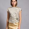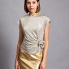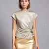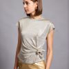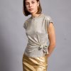 Lina top is so easy to style – the casual yet sophisticated design pairs nicely with everything from jeans to tailoring. It’s made from a lightweight metallic viscose to enhance the close fit. It’s a staple you’ll want in every occasion . Lina top has a crossed over tie at front to create a figure-hugging fit. It’s defined by the round neckline, which can be adjusted to show just the right amount of skin.