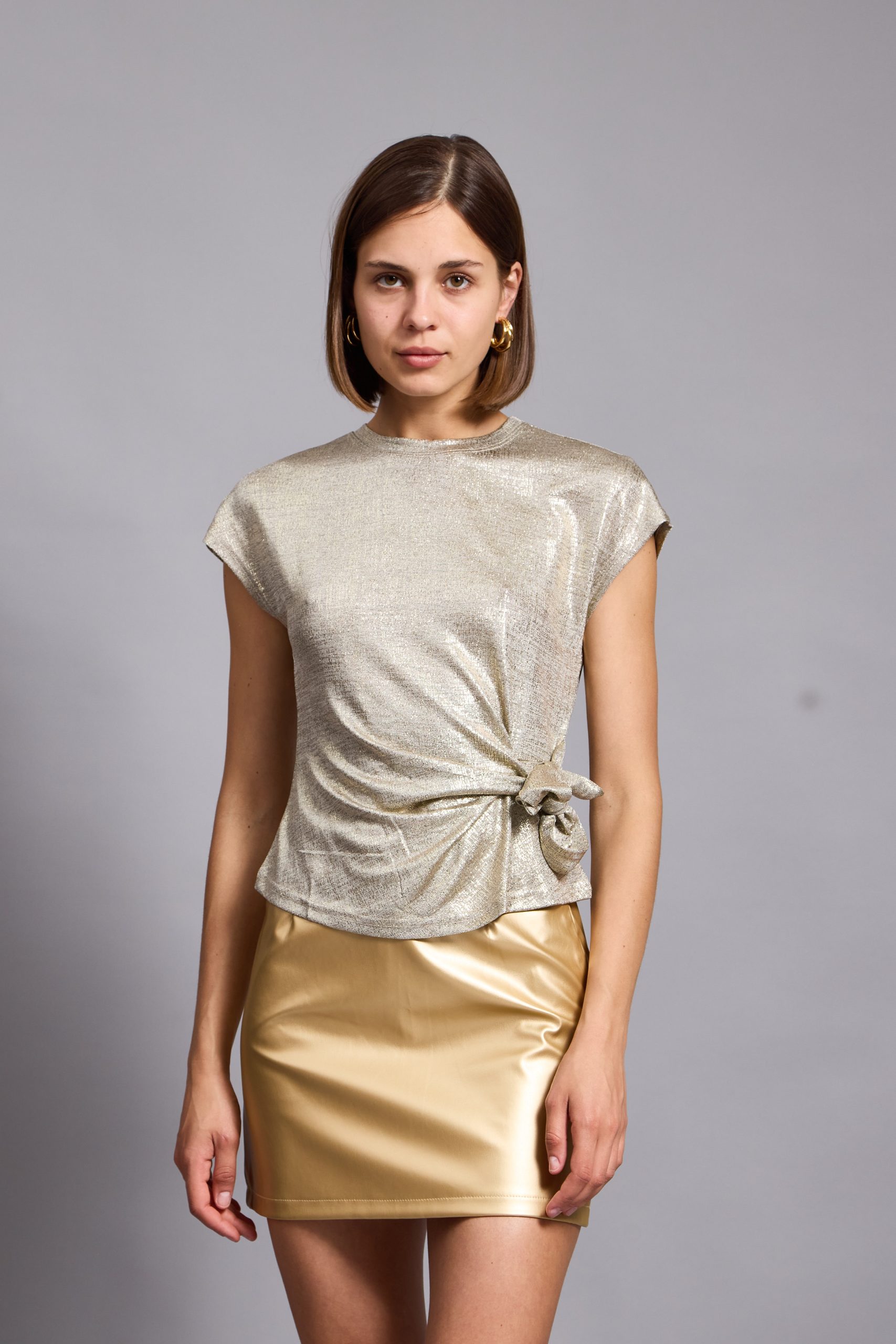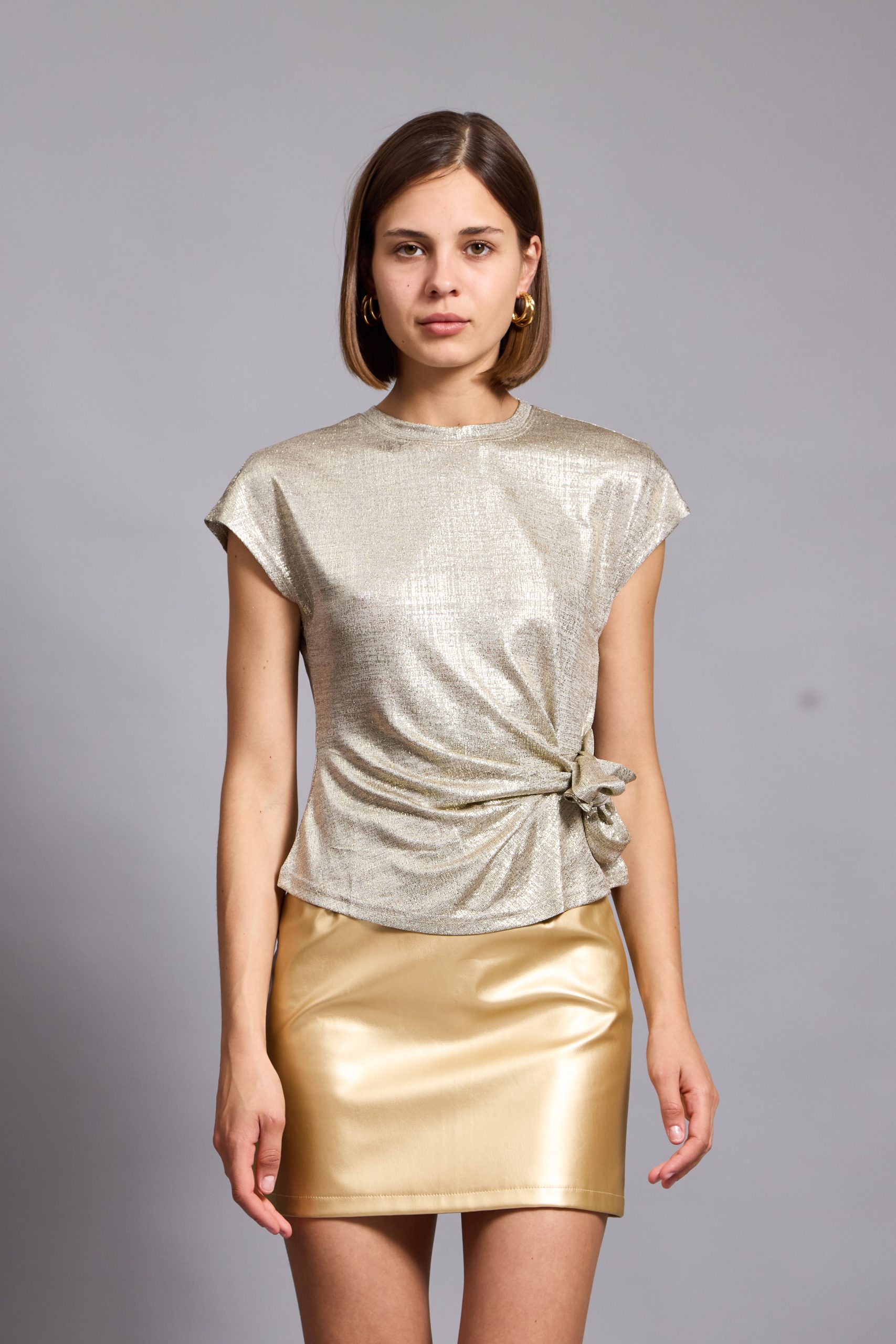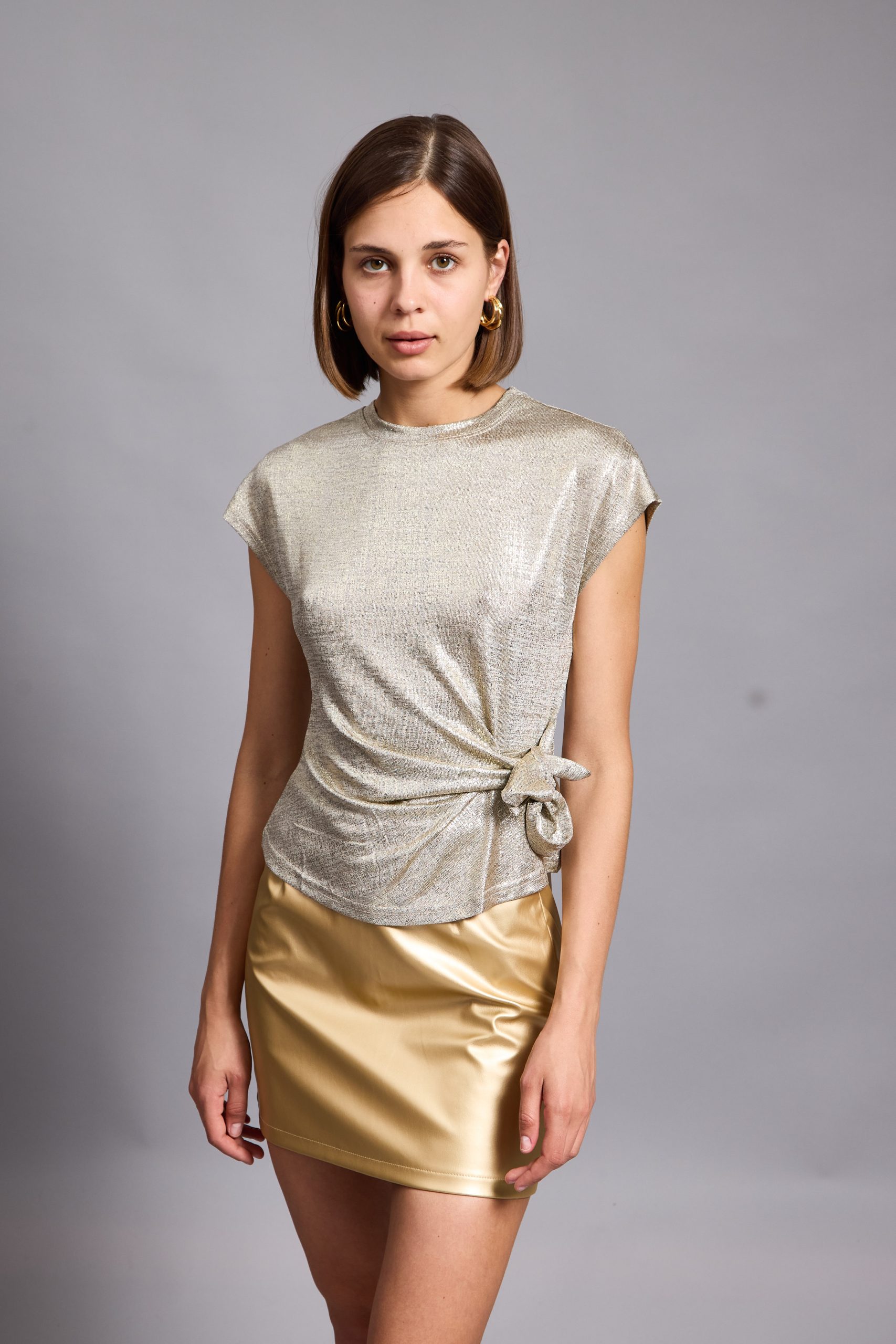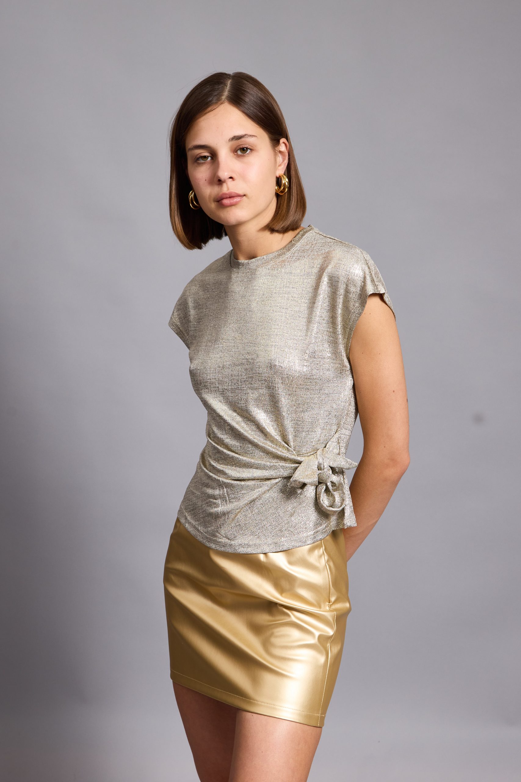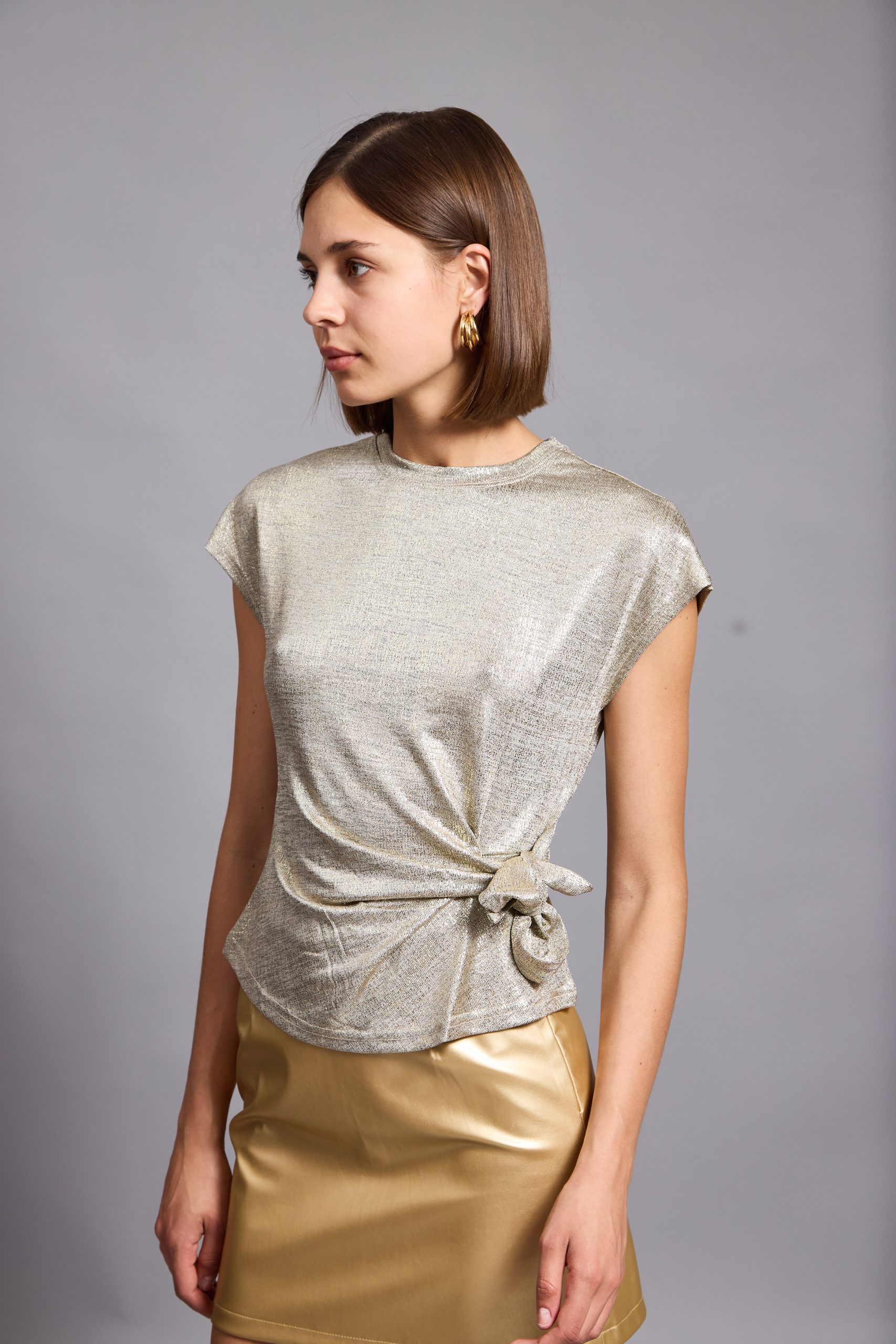 Lina top is so easy to style – the casual yet sophisticated design pairs nicely with everything from jeans to tailoring. It’s made from a lightweight metallic viscose to enhance the close fit. It’s a staple you’ll want in every occasion . Lina top has a crossed over tie at front to create a figure-hugging fit. It’s defined by the round neckline, which can be adjusted to show just the right amount of skin.