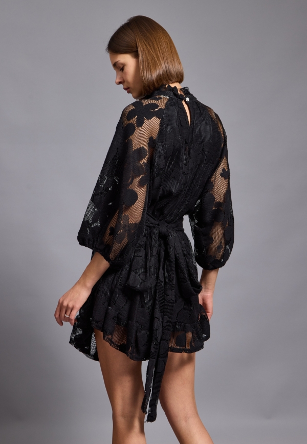 The best thing about a beautiful lace dress is that you’ll never fall out of love with it. This dress is such a pretty choice for evening events. It has lace bishop sleeves framing the turtle neck neckline and a empire waist and a floaty skirt . Designed for a figure-skimming fit, it’s underpinned with tonal crepe for coverage and has a slim belt to cinch the shape. Accessorize with gold jewellery and statement heels.