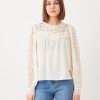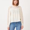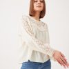 Madison effortlessly incorporates romantic, vintage details into its feminine collections. This elegant lace trimmed blouse whimsically evokes the Victorian era. Crafted from delicate lace with touches of cotton, it’s cut for a relaxed fit with elegant flared sleeves. Delicate lace trims give it a pretty, bohemian look. Tuck yours into high-rise jeans or tailored pants.