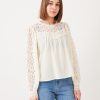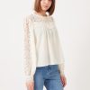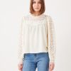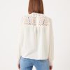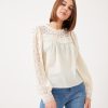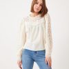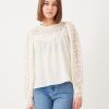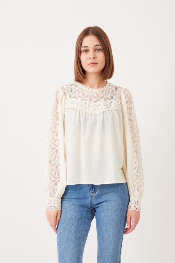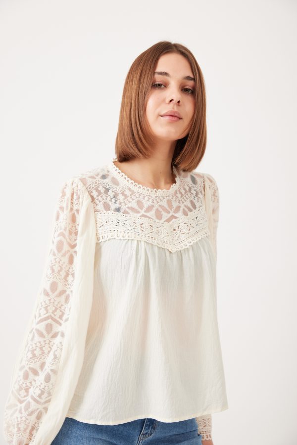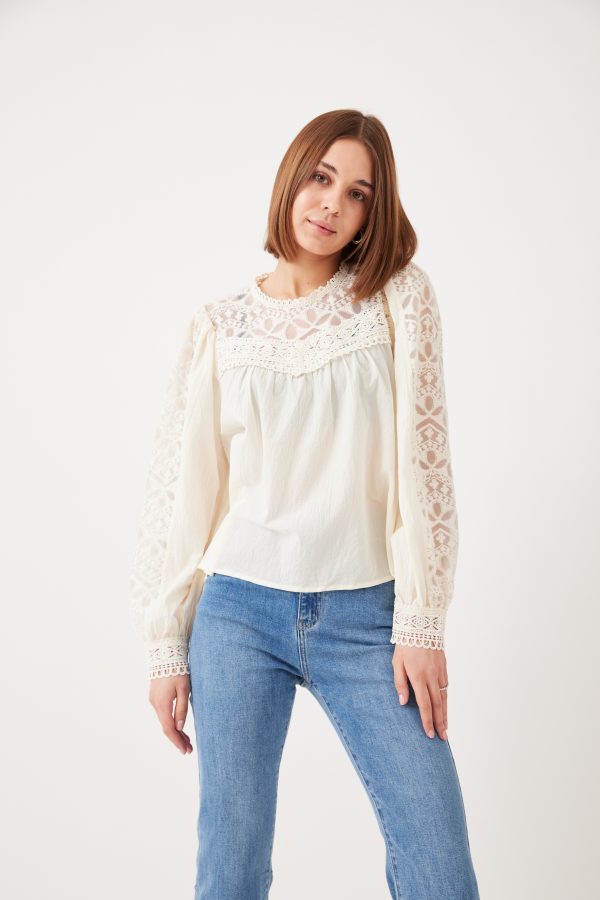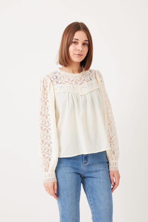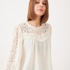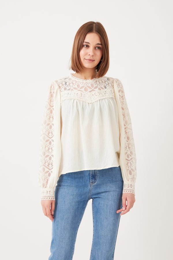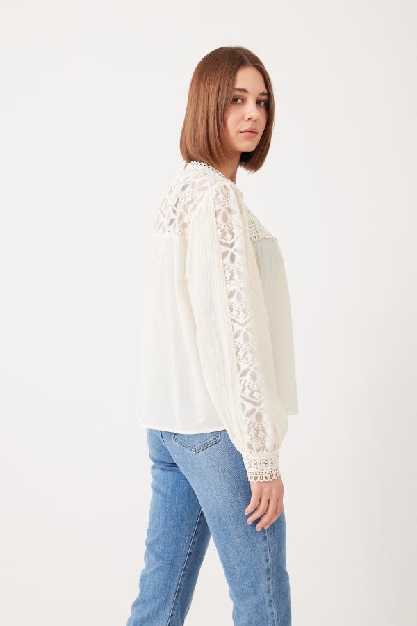 Madison -Lace Trimmed Cotton Blend Blouse In Cream