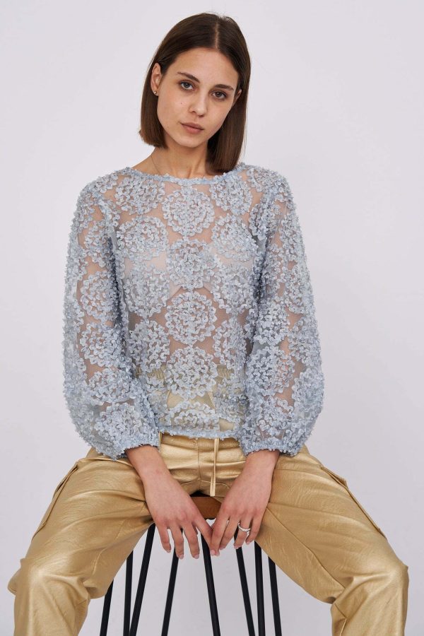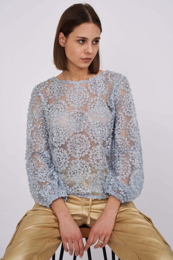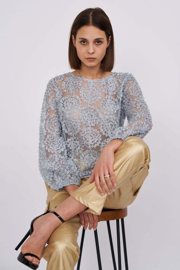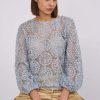 Mandy elegant lace trimmed blouse whimsically evokes the Victorian era. Delicate lace trims give it a pretty, bohemian look. Tuck yours into shorts or lurex palazzo trousers.