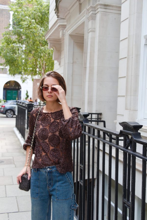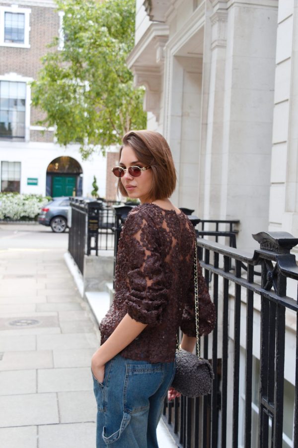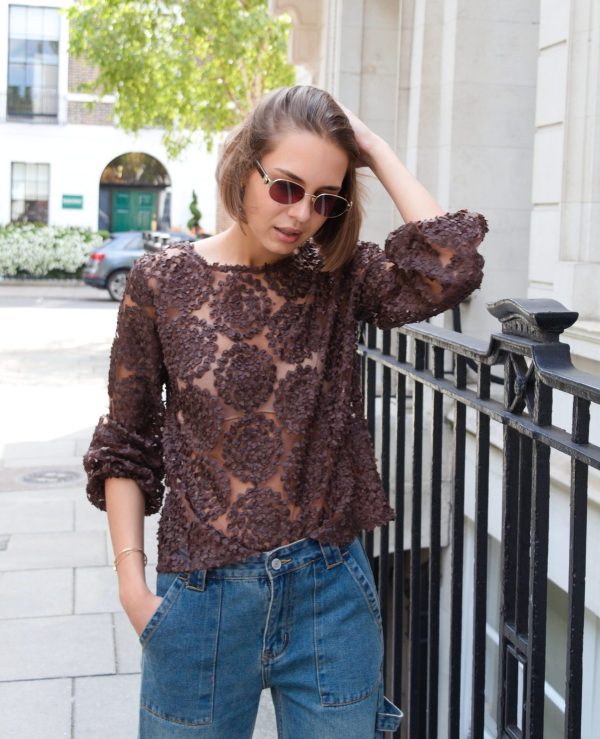 Mandy elegant lace trimmed blouse whimsically evokes the Victorian era. Delicate lace trims give it a pretty, bohemian look. Tuck yours into shorts or lurex palazzo trousers.
