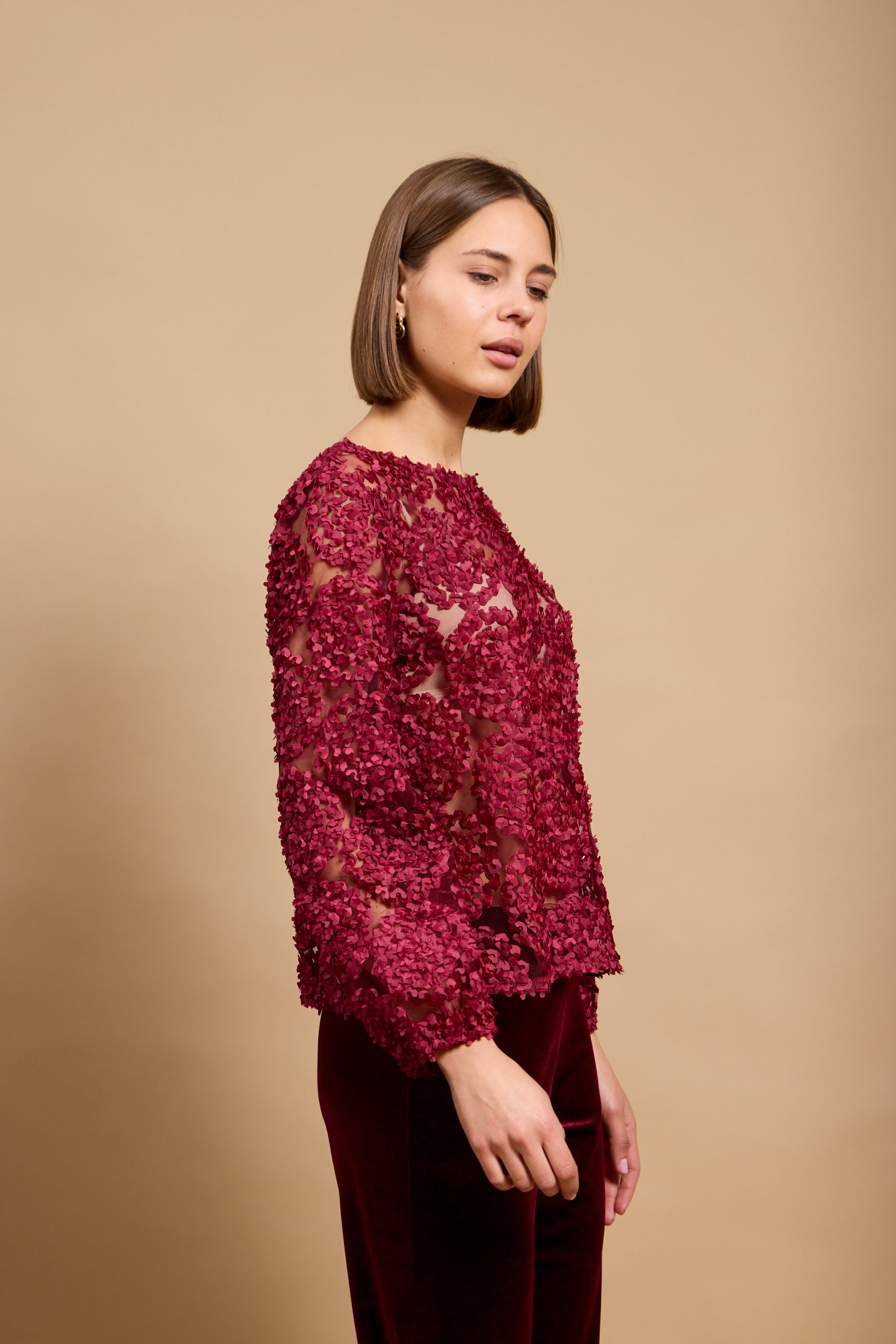 Mandy elegant lace trimmed blouse whimsically evokes the Victorian era. Delicate lace trims give it a pretty, bohemian look. Tuck yours into shorts or lurex palazzo trousers.