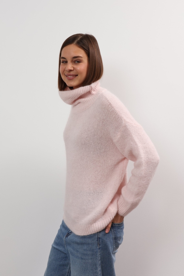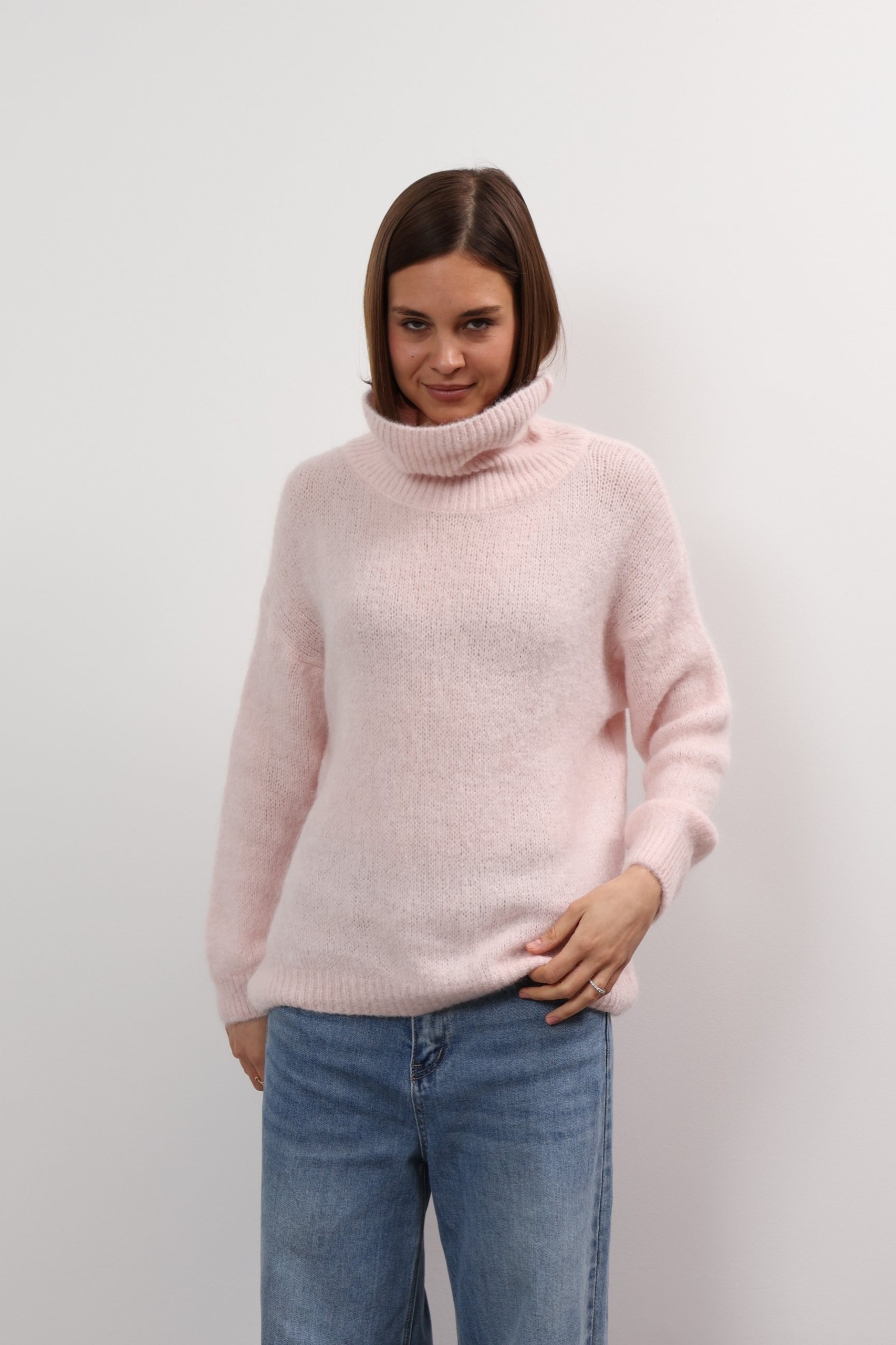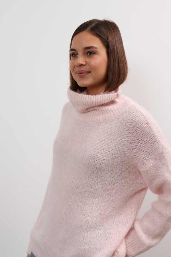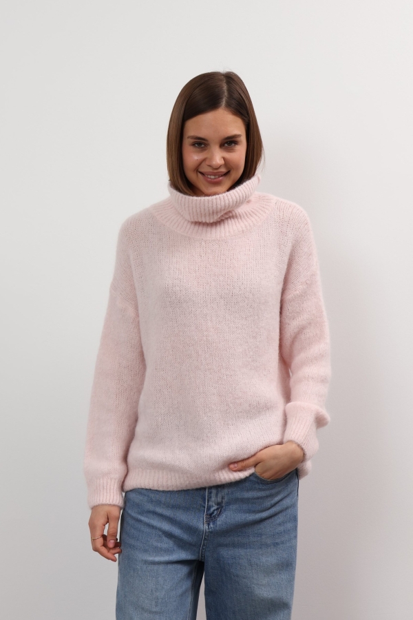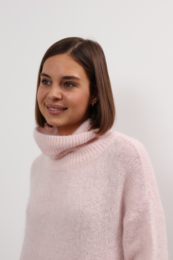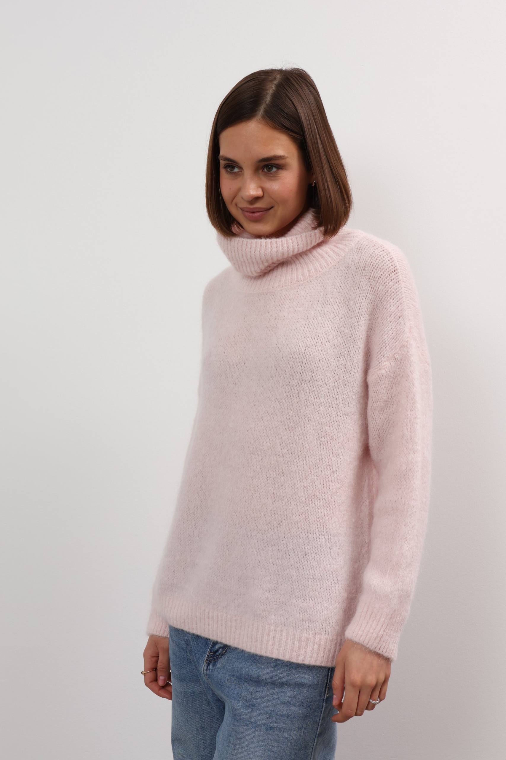 Mandy sweater offers refined comfort. This turtleneck sweater is so versatile and cosy. Spun from soft wool, it has a relaxed fit with a cropped hem and chunky ribbed trims. It’s finely knitted with touches of wool for a really lightweight and breathable handle. The striking hue will instantly freshen up your complexion and complements everything from neutral tones to dark denim. Designed in a classic turtleneck shape, in a relaxed fit enhanced by dropped shoulders . Switch between styling it with boyfriend jeans, slouchy tailoring and tulle skirts.