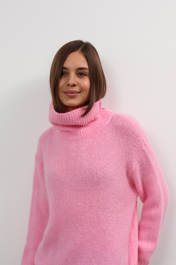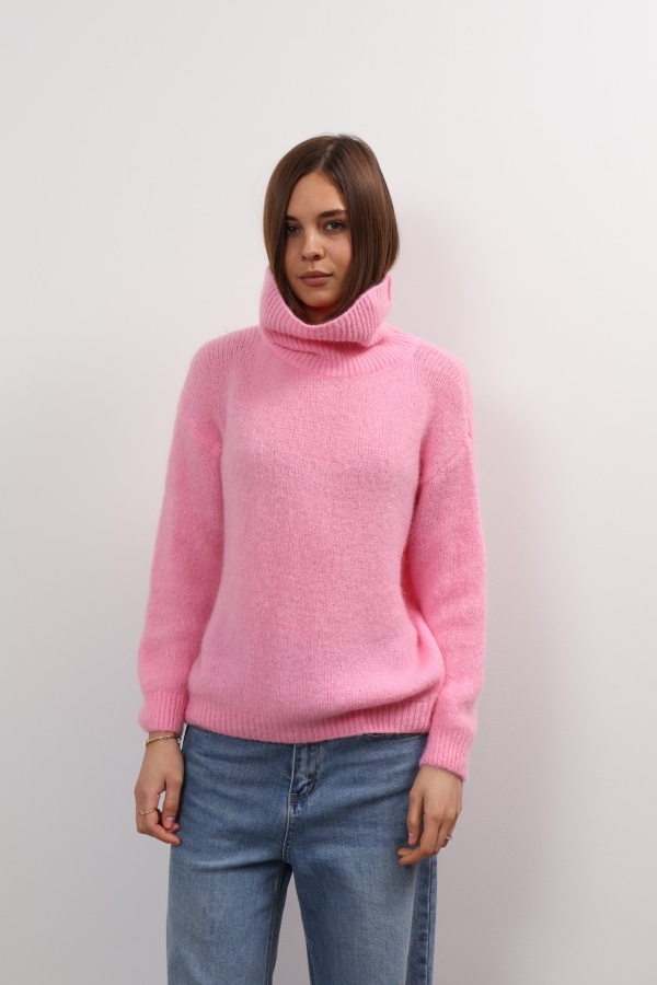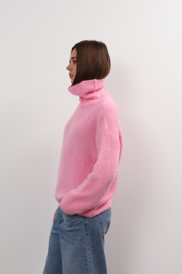 Mandy sweater offers refined comfort. This turtleneck sweater is so versatile and cosy. Spun from soft wool, it has a relaxed fit with a cropped hem and chunky ribbed trims. It’s finely knitted with touches of  wool for a really lightweight and breathable handle. The striking  hue will instantly freshen up your complexion and complements everything from neutral tones to dark denim. Designed in a classic turtleneck shape,  in a relaxed fit enhanced by dropped shoulders . Switch between styling it with boyfriend jeans, slouchy tailoring and tulle skirts.