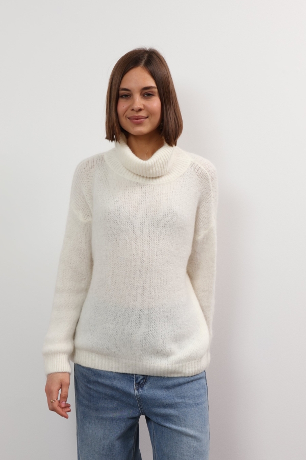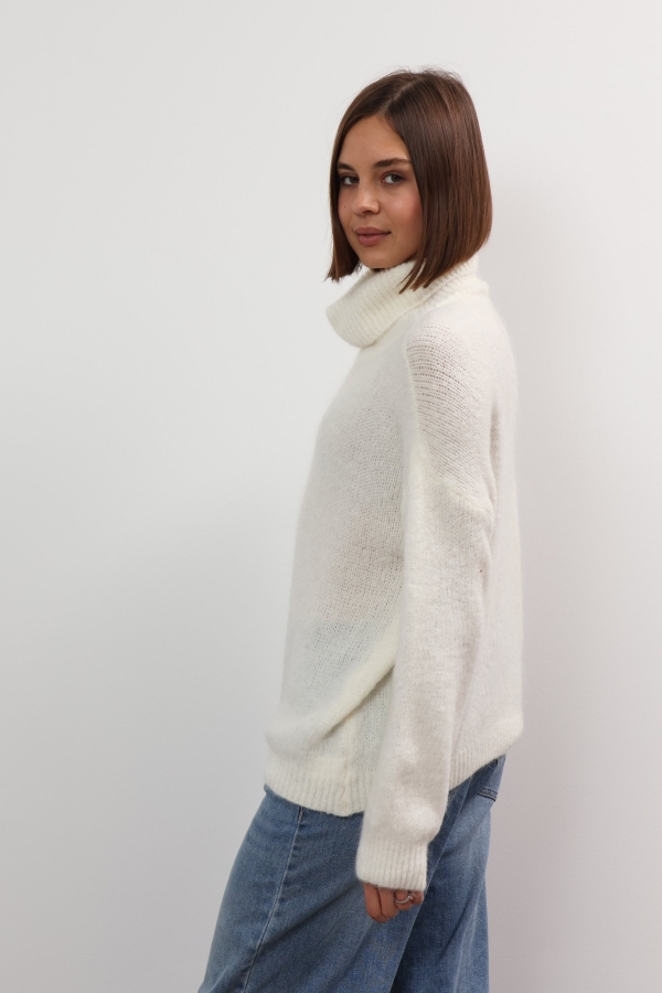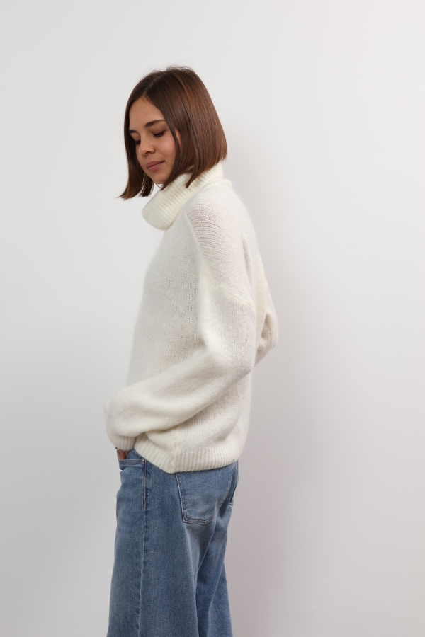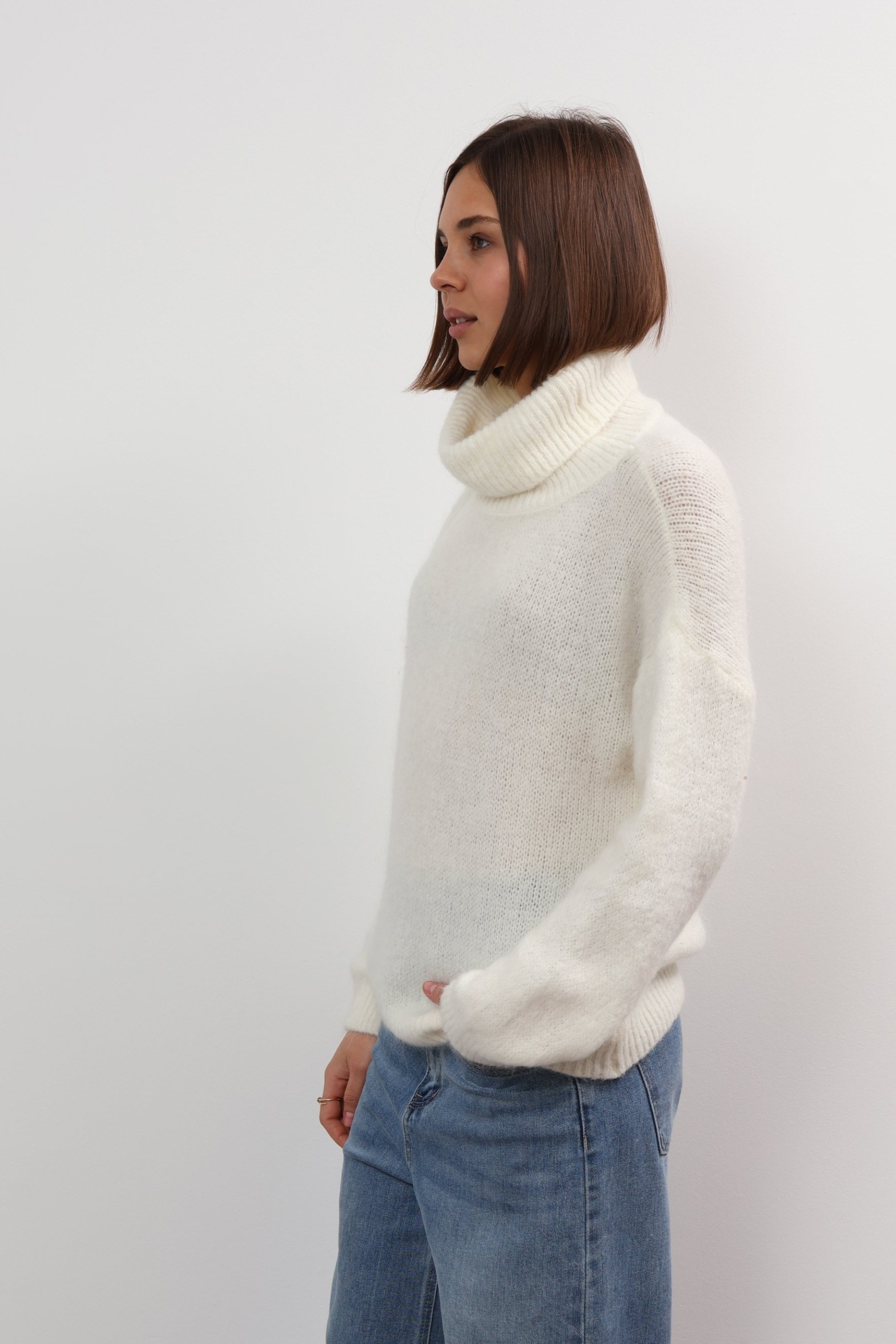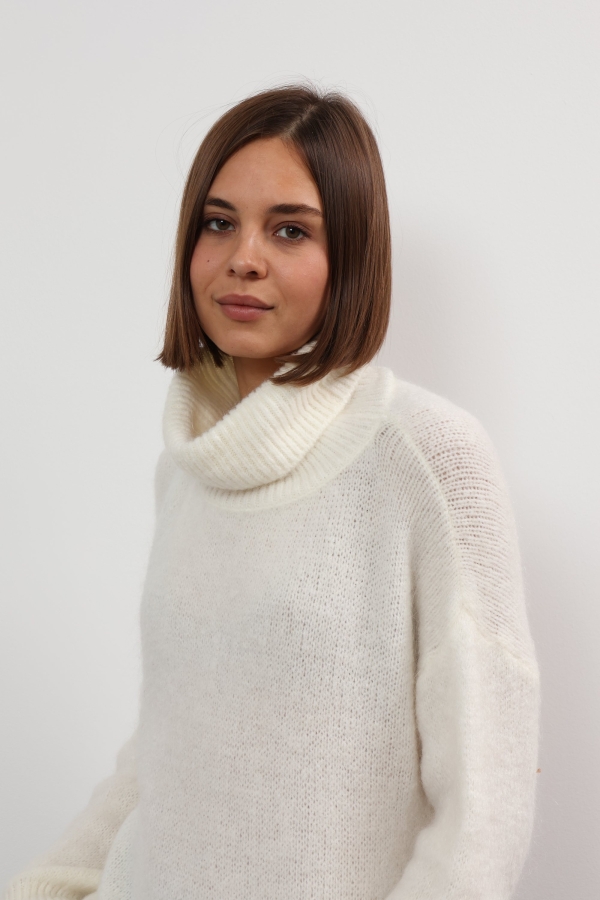 Mandy sweater offers refined comfort. This turtleneck sweater is so versatile and cosy. Spun from soft wool, it has a relaxed fit with a cropped hem and chunky ribbed trims. It’s finely knitted with touches of wool for a really lightweight and breathable handle. The striking hue will instantly freshen up your complexion and complements everything from neutral tones to dark denim. Designed in a classic turtleneck shape, in a relaxed fit enhanced by dropped shoulders . Switch between styling it with boyfriend jeans, slouchy tailoring and tulle skirts.