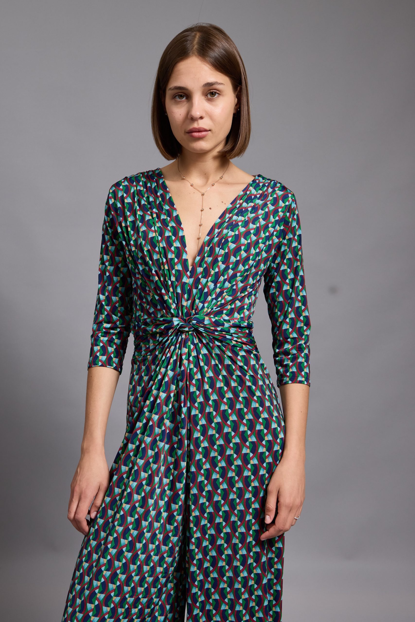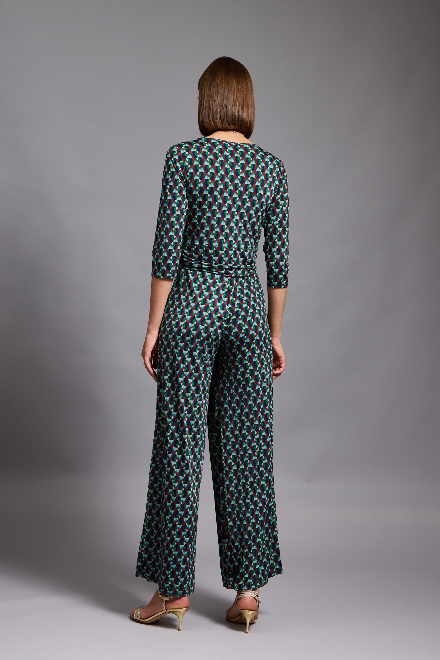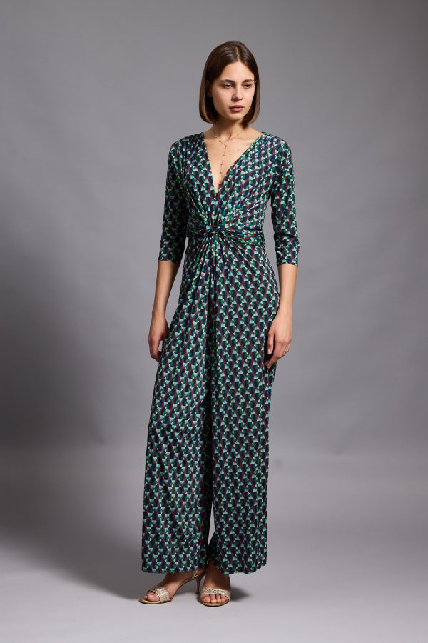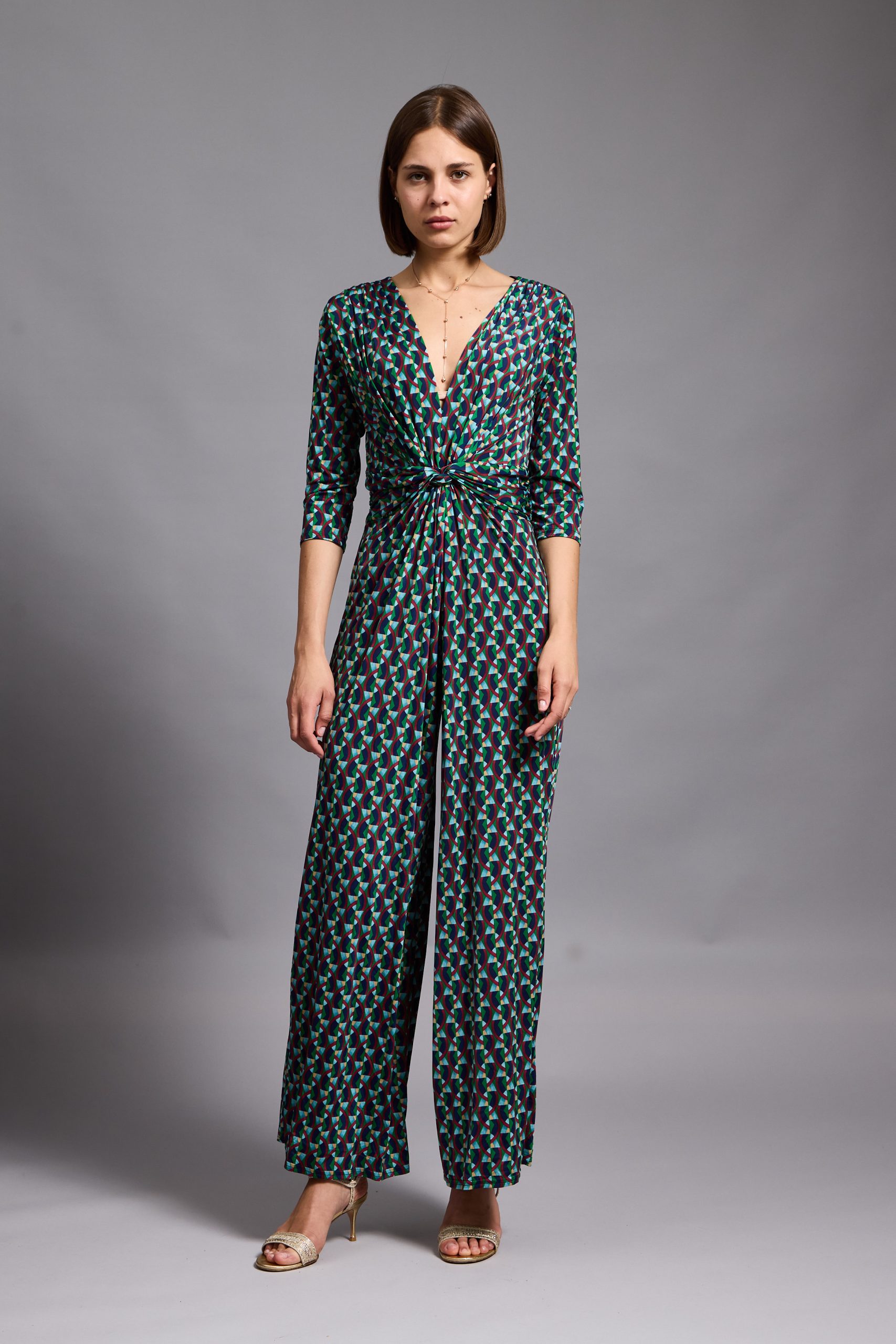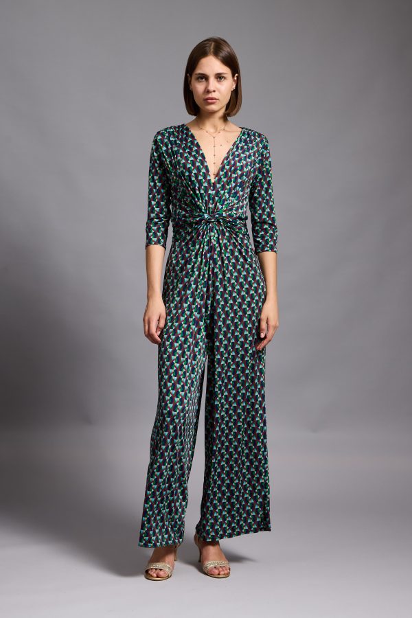 Marla – Twist wrap Jumpsuit Mosaic In Navy And Green