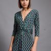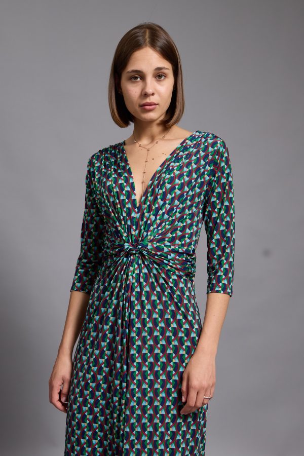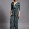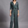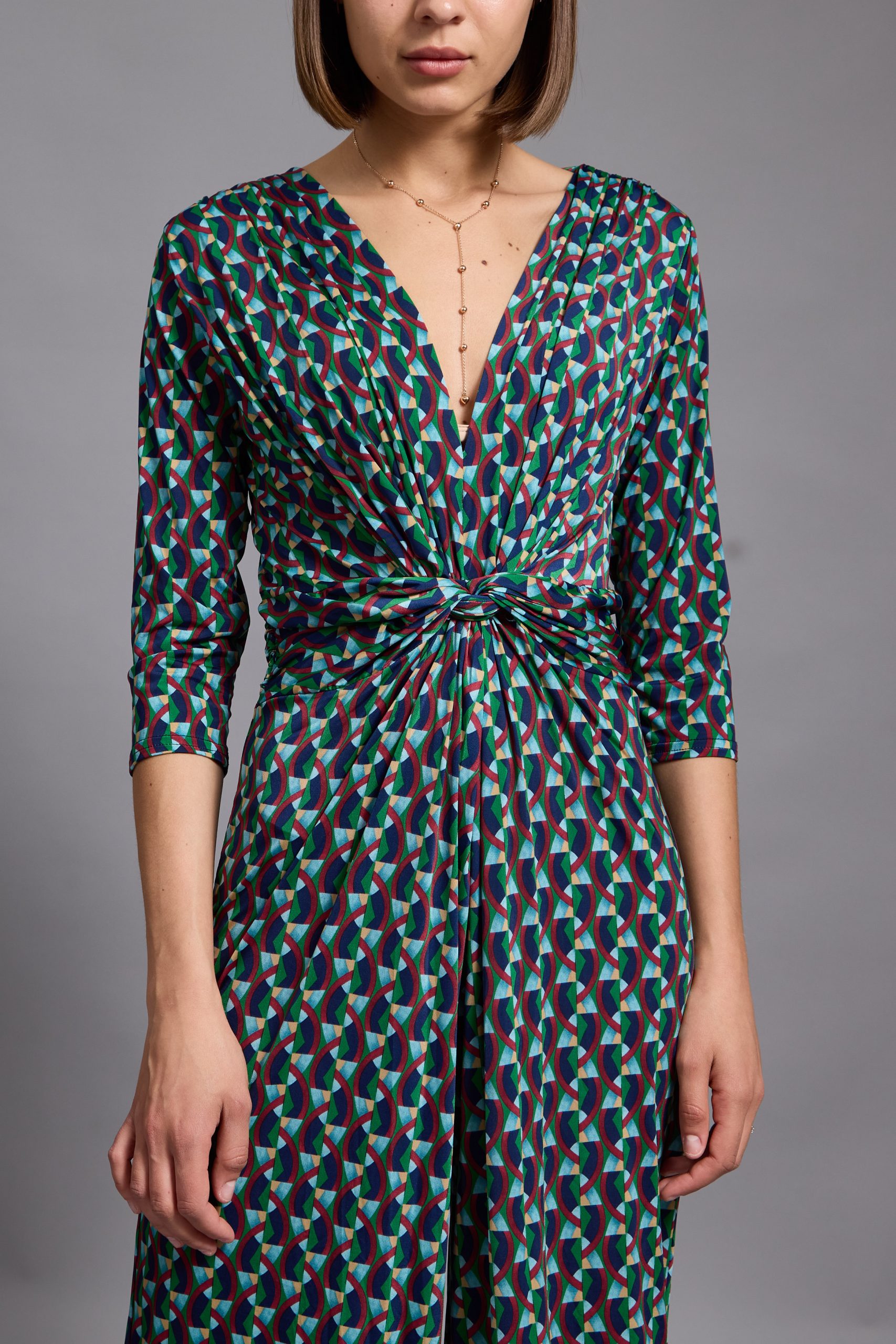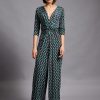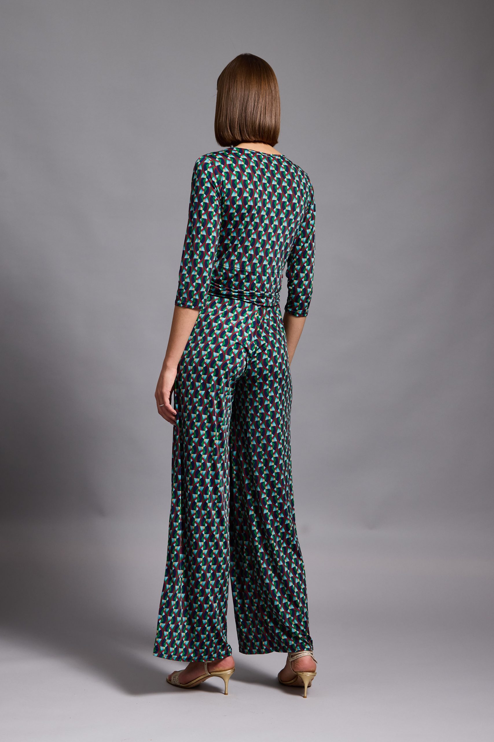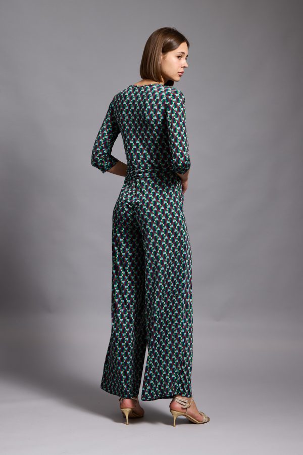 Marla – Twist wrap Jumpsuit Mosaic In Navy And Green
