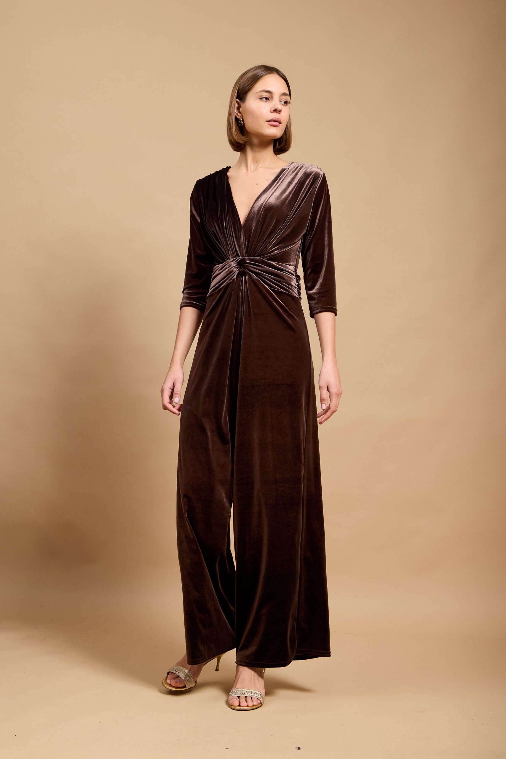 Shake up your party wardrobe with Marla knotted jumpsuit. This jumpsuit is one of the easiest (and quickest) way to look instantly stylish during your big day or the events leading up to it. Made from a fairly light stretch-jersey , it’s cut with a v neckline and wide legs . Wear yours with point-toe pumps to create the illusion of even longer legs or heels. Keep the rest of your look minimal with a soft clutch.