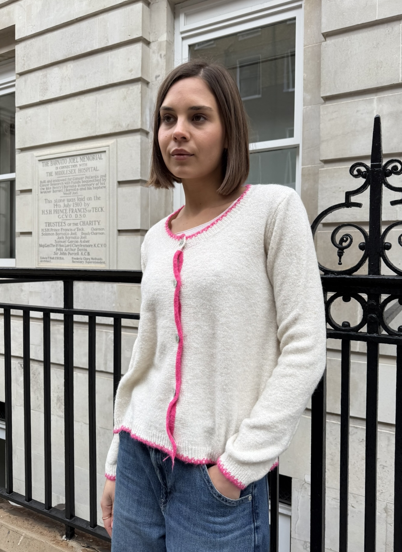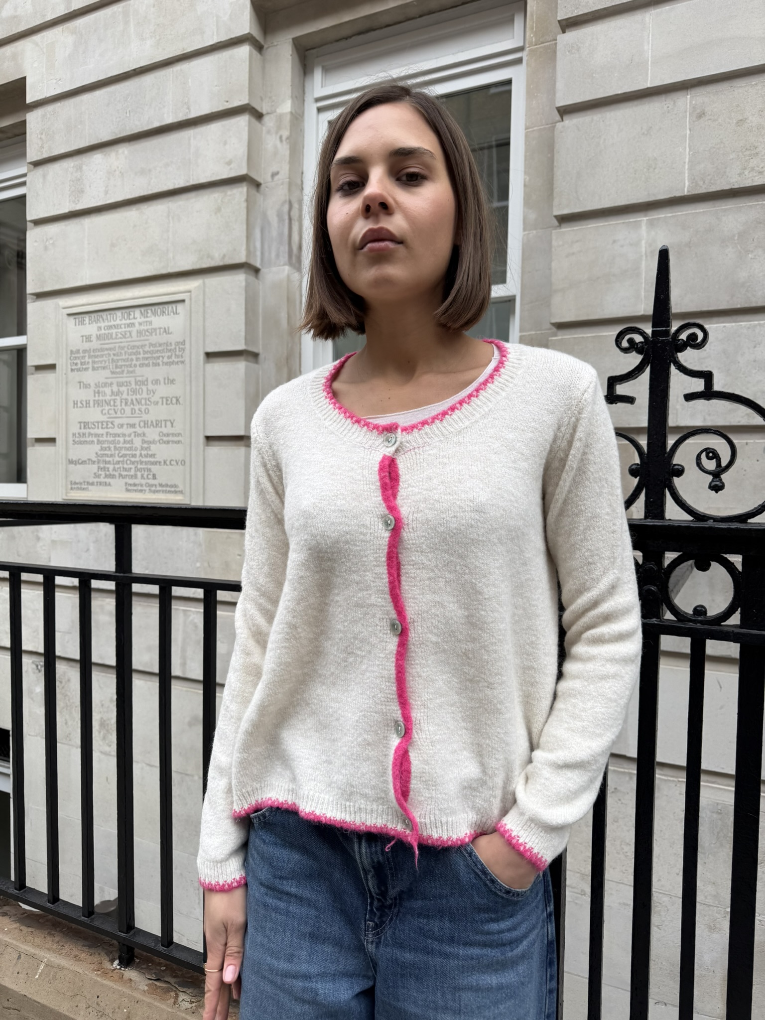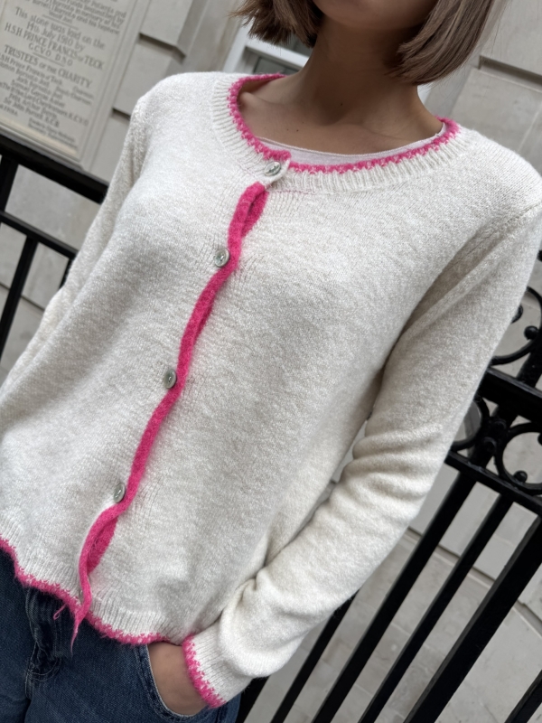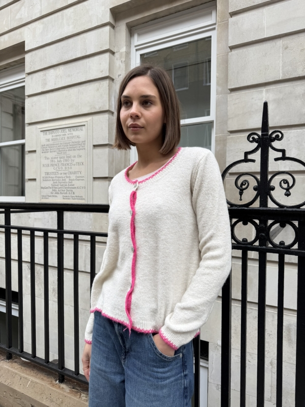 With its subtle yet striking contrast trim, Melania brings a sophisticated touch to any outfit while maintaining the cosy feel of a classic cardigan.