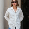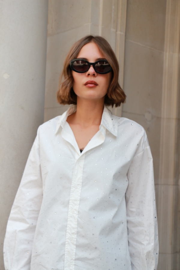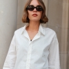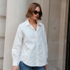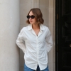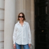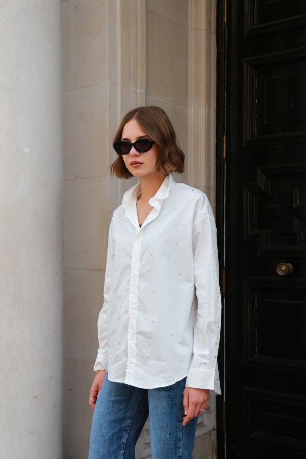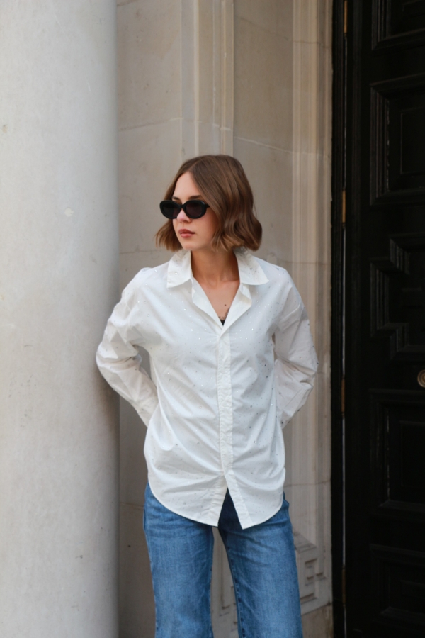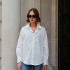 This shirt will go so far in your wardrobe – style yours half-tucked into jeans, silk pants cinched with a belt or layered under a knit vest. It has a relaxed shape with buttoned cuffs and a long, curved hem.  It’s cut from striped cotton-poplin and has a chest pocket. Wear it with a striped sweater wrapped around your shoulders. Leave a few buttons undone at the collared neckline and hem for a casual feel.