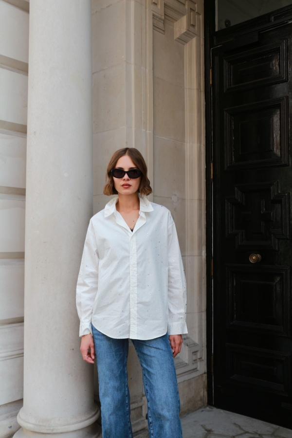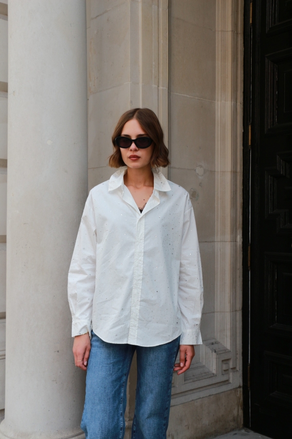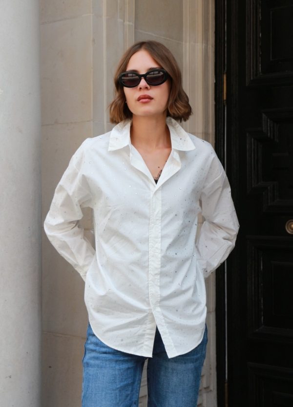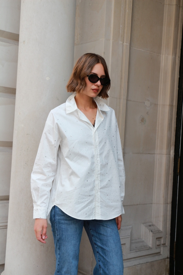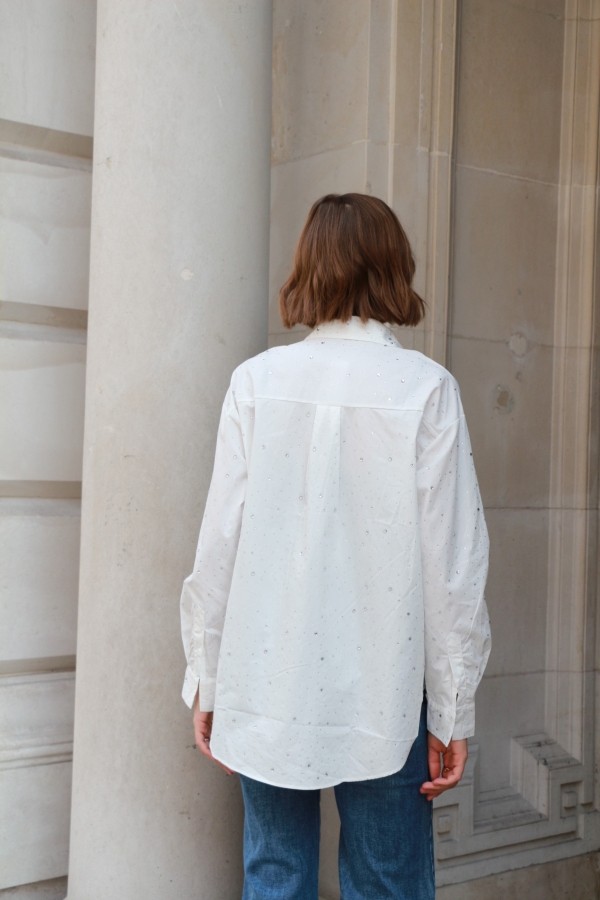 Melody – Embellished Striped Cotton Shirt In WHITE