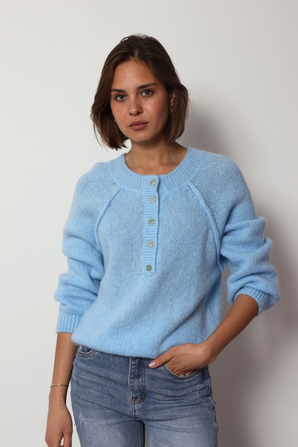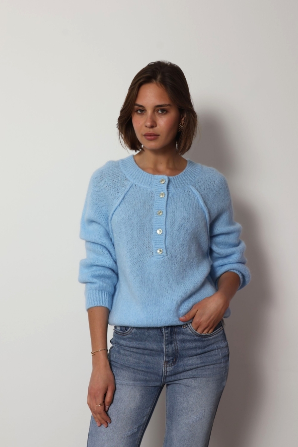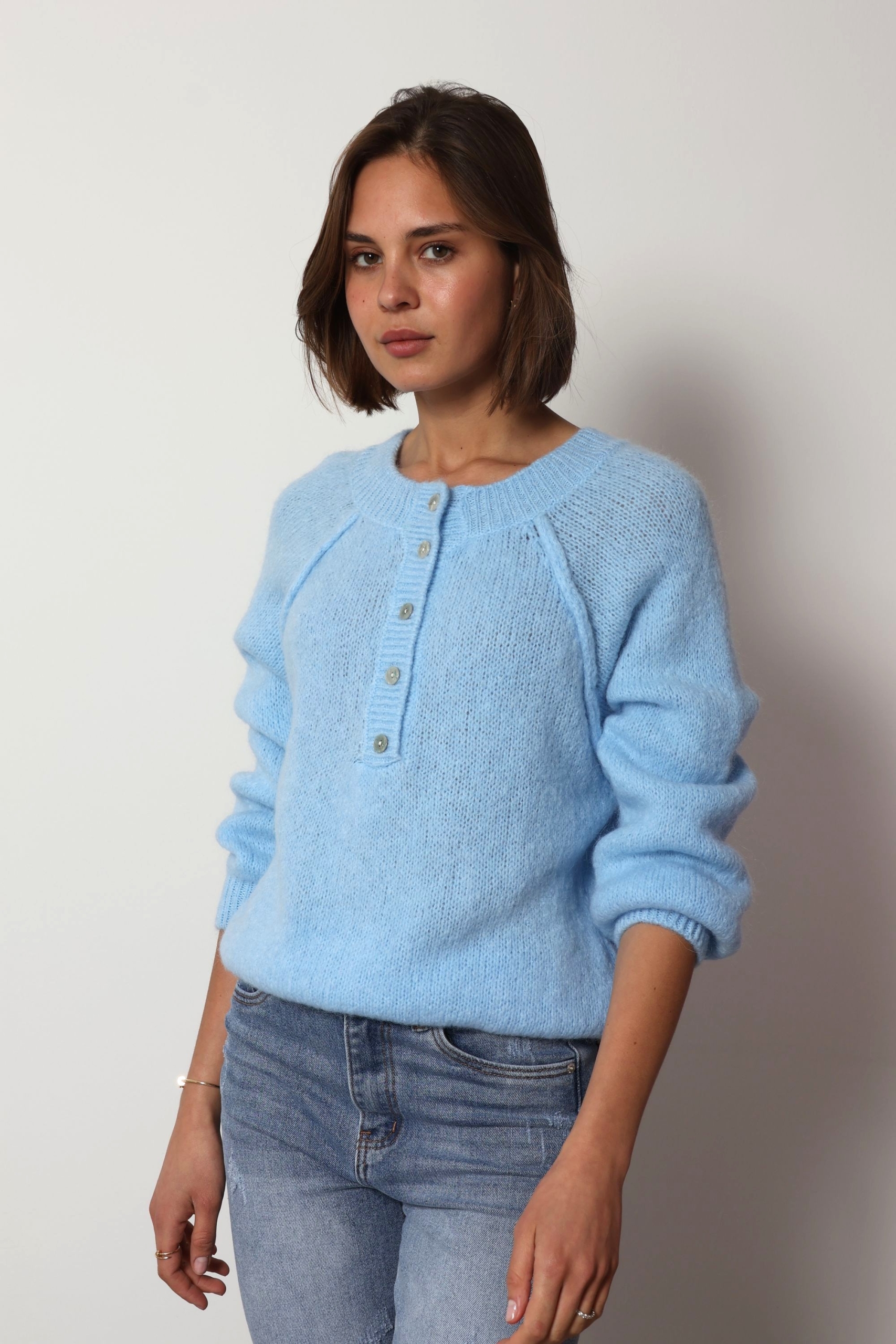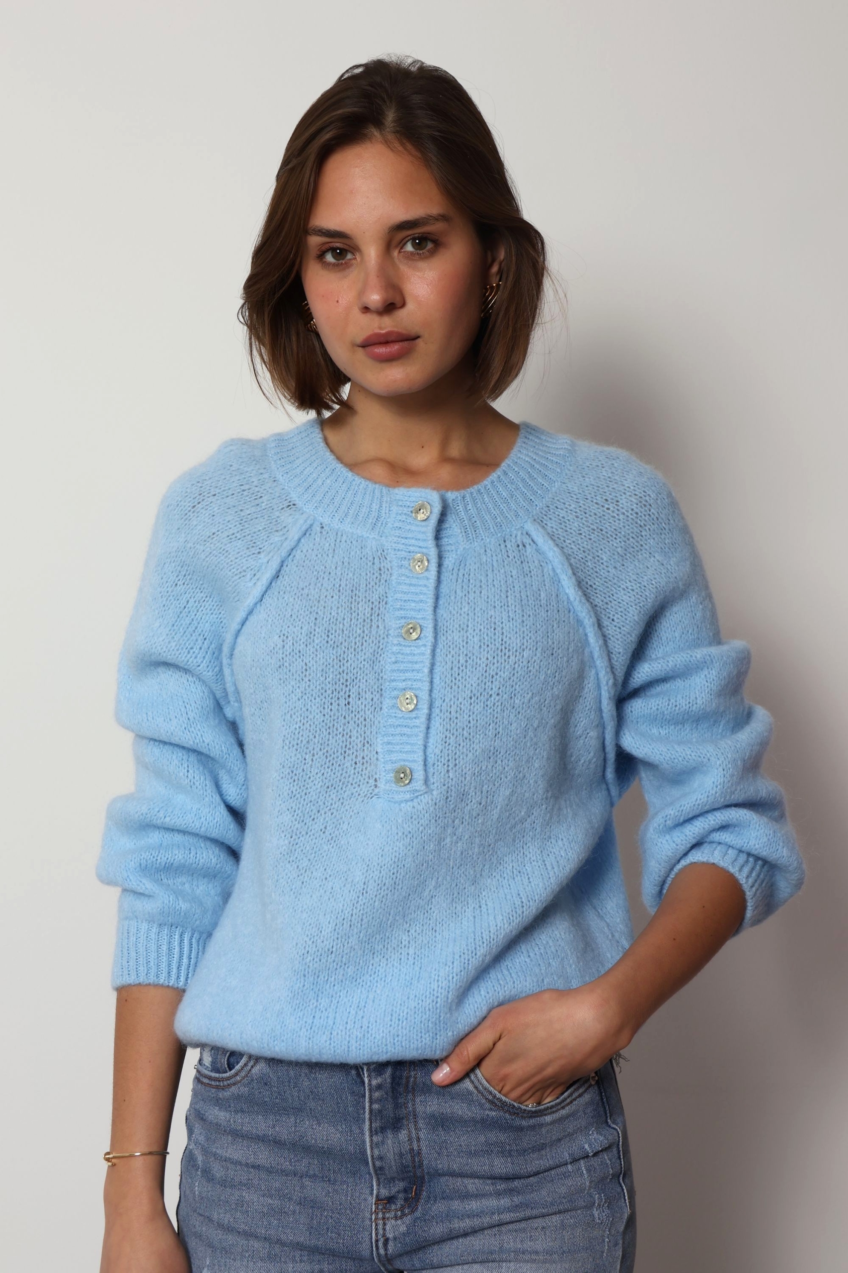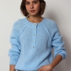 Made from a luxurious baby alpaca and wool blend, the Mia Button Detail Jumper is beautifully soft, warm, and lightweight — perfect for spring layering. Designed with a flattering raglan sleeve for a relaxed fit, it features subtle button detailing at the neckline for an elegant finishing touch.