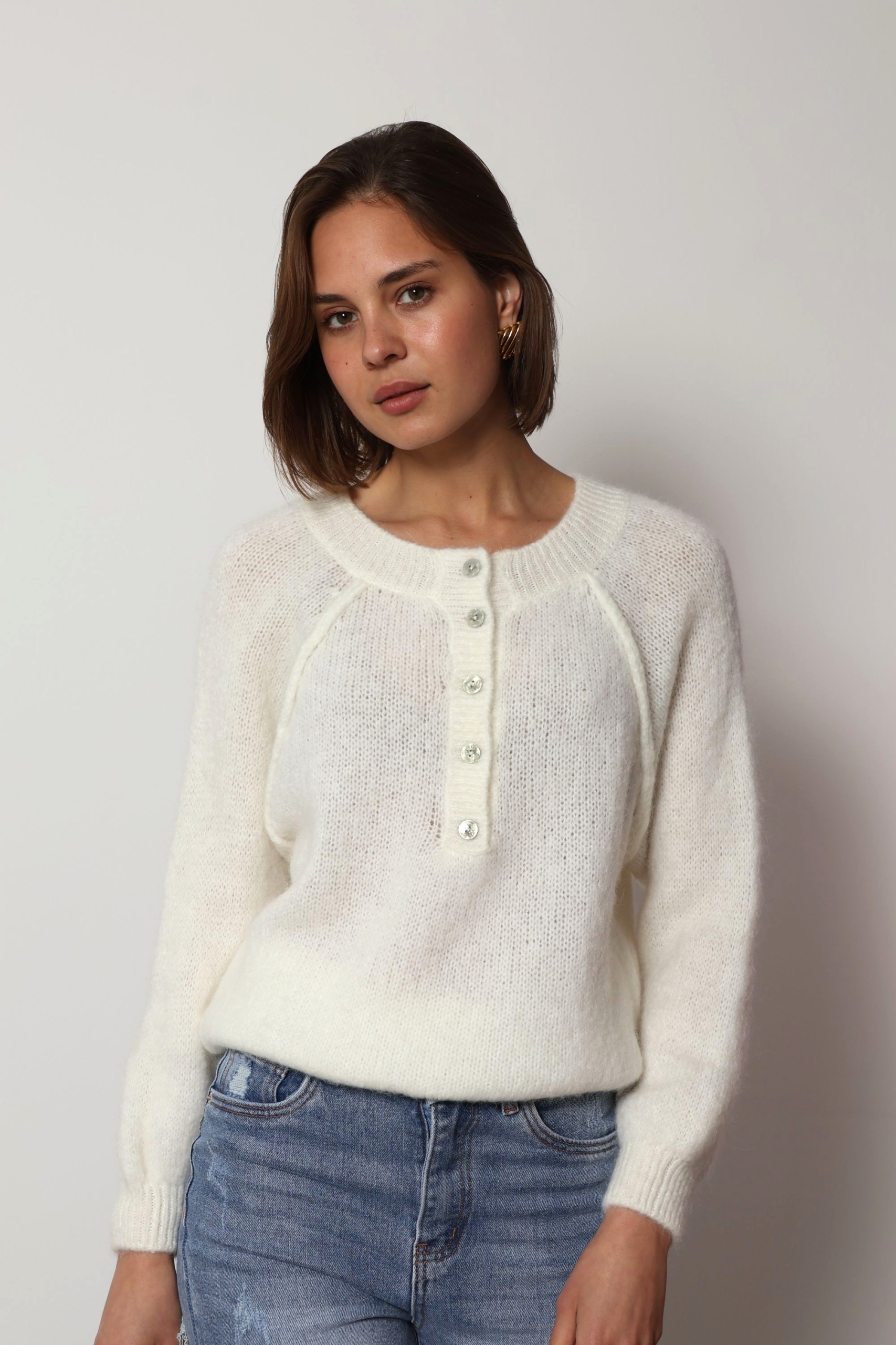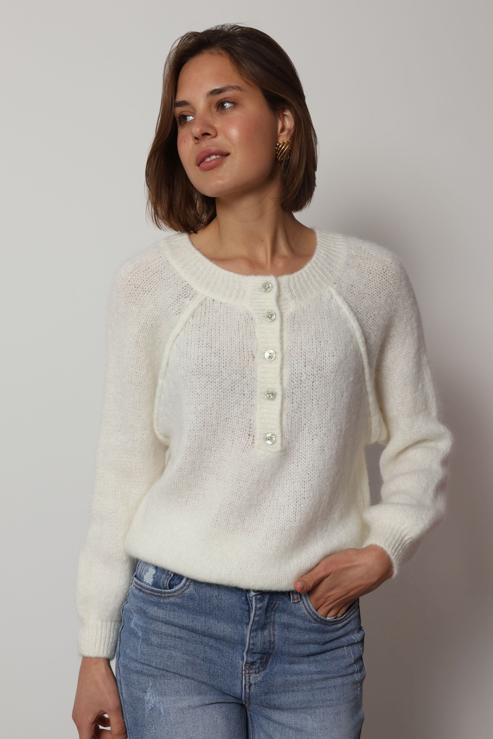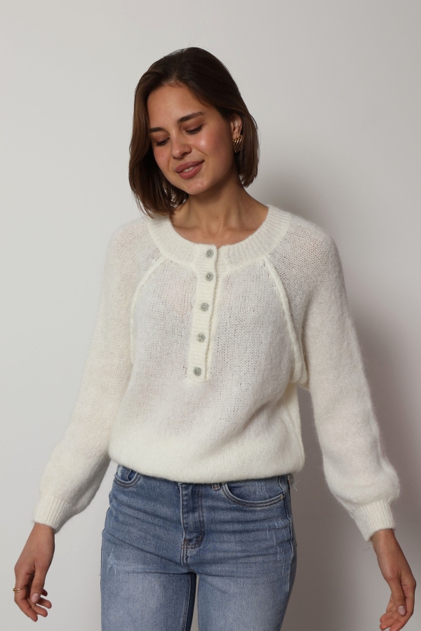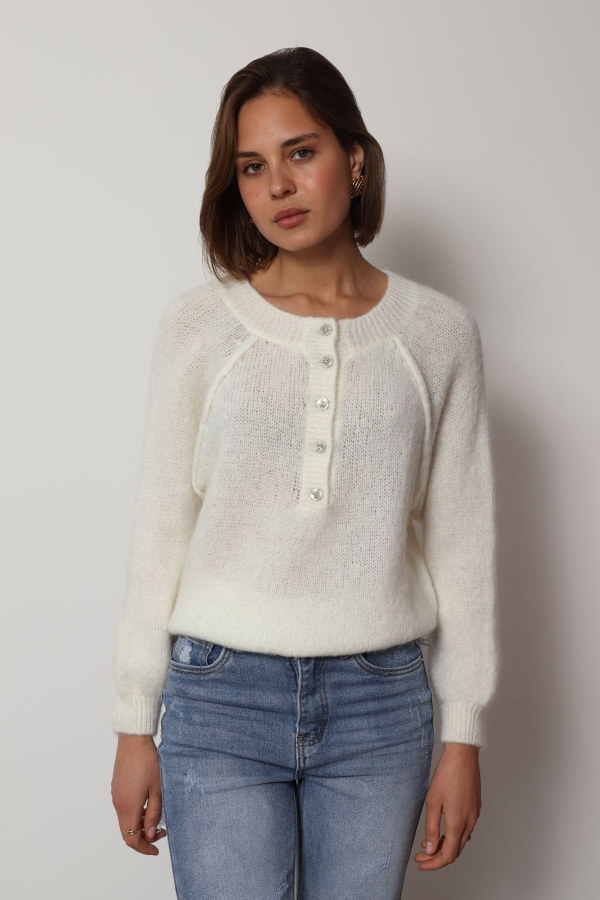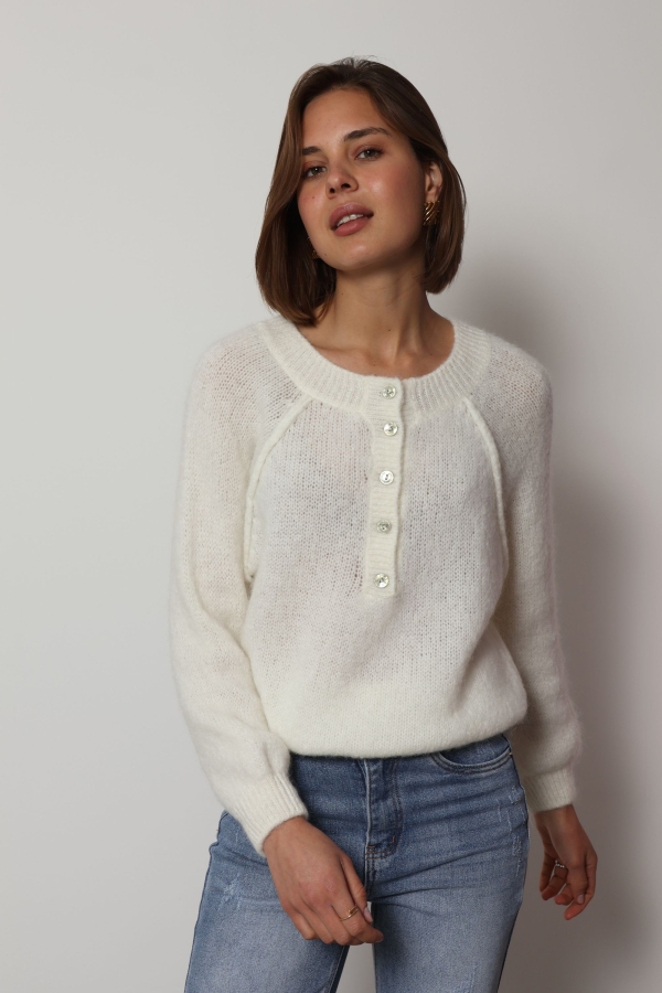 Mia – Button Detail Jumper in ecru