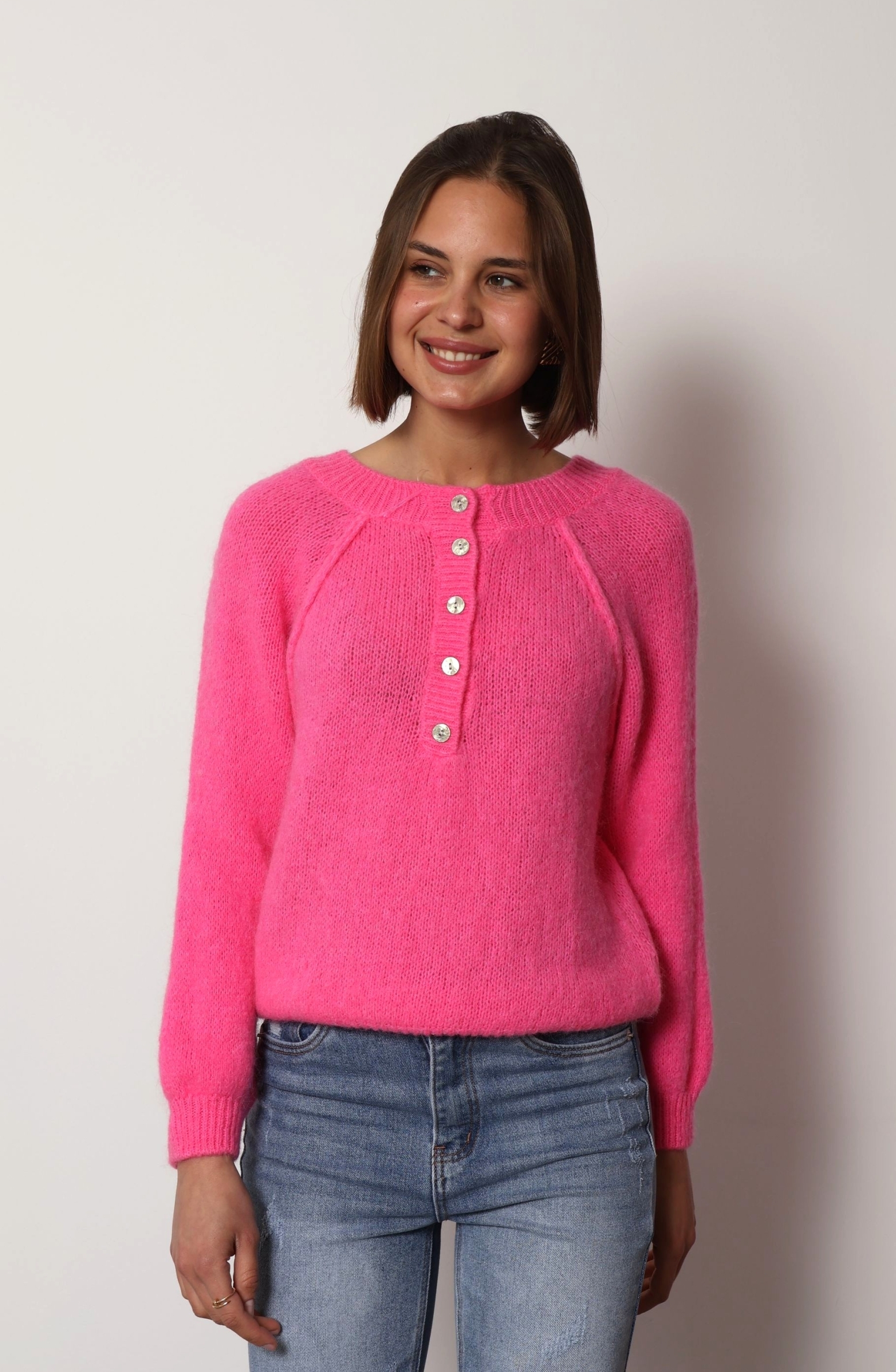 Made from a luxurious baby alpaca and wool blend, the Mia Button Detail Jumper is beautifully soft, warm, and lightweight — perfect for spring layering. Designed with a flattering raglan sleeve for a relaxed fit, it features subtle button detailing at the neckline for an elegant finishing touch.