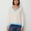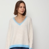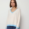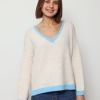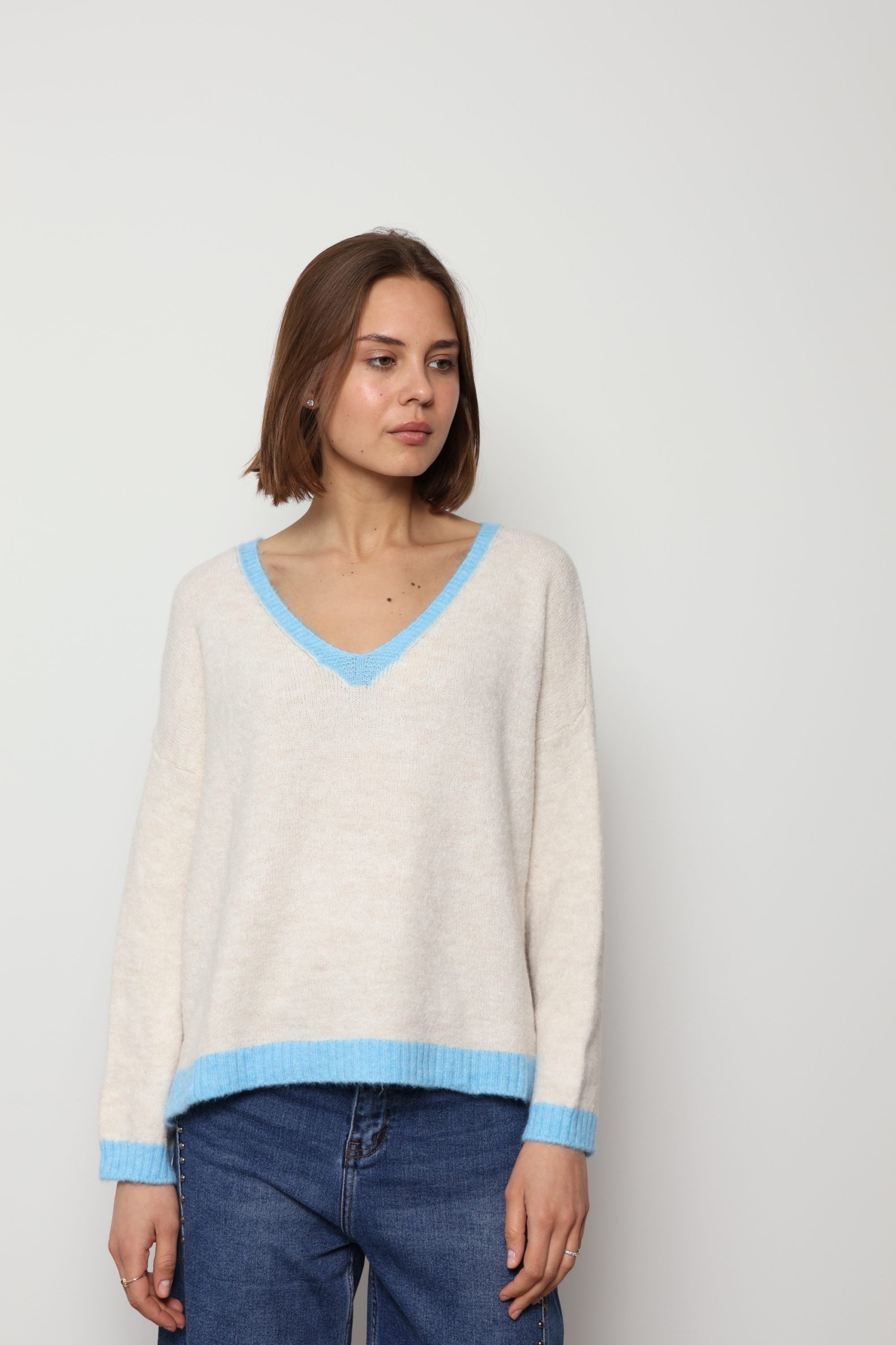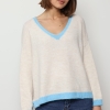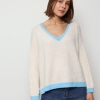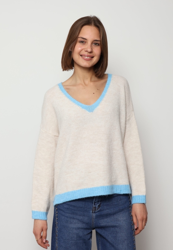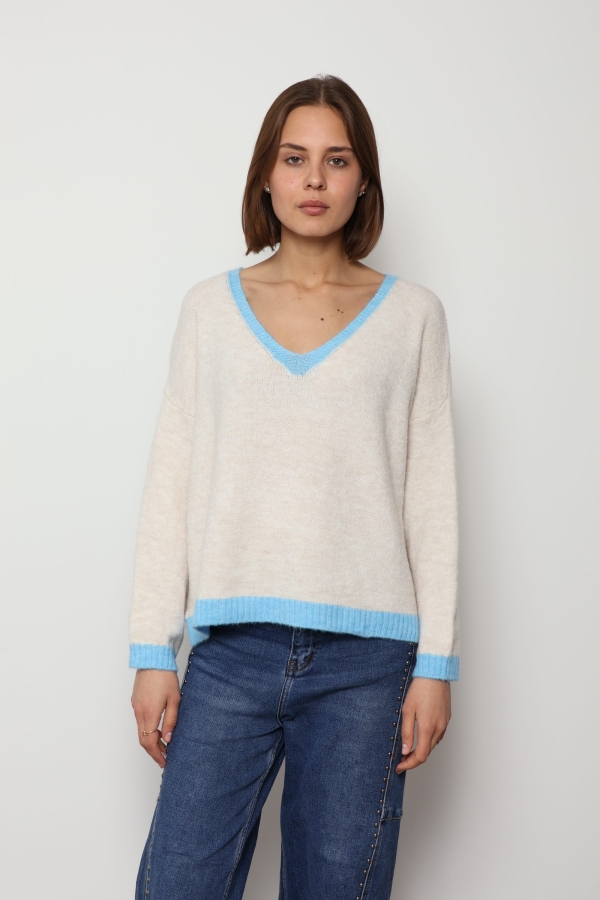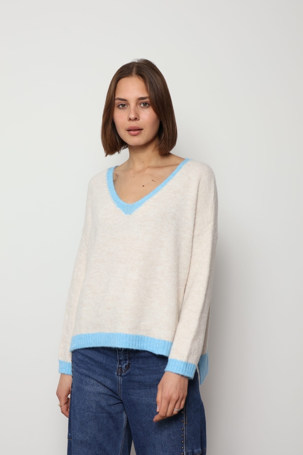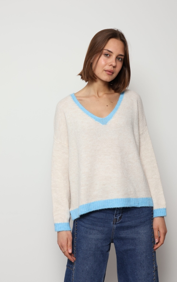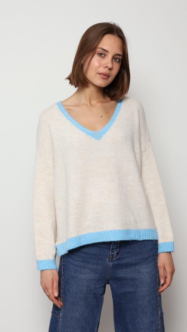 Mila – Contrast Trim V-Neck Jumper In Blue
