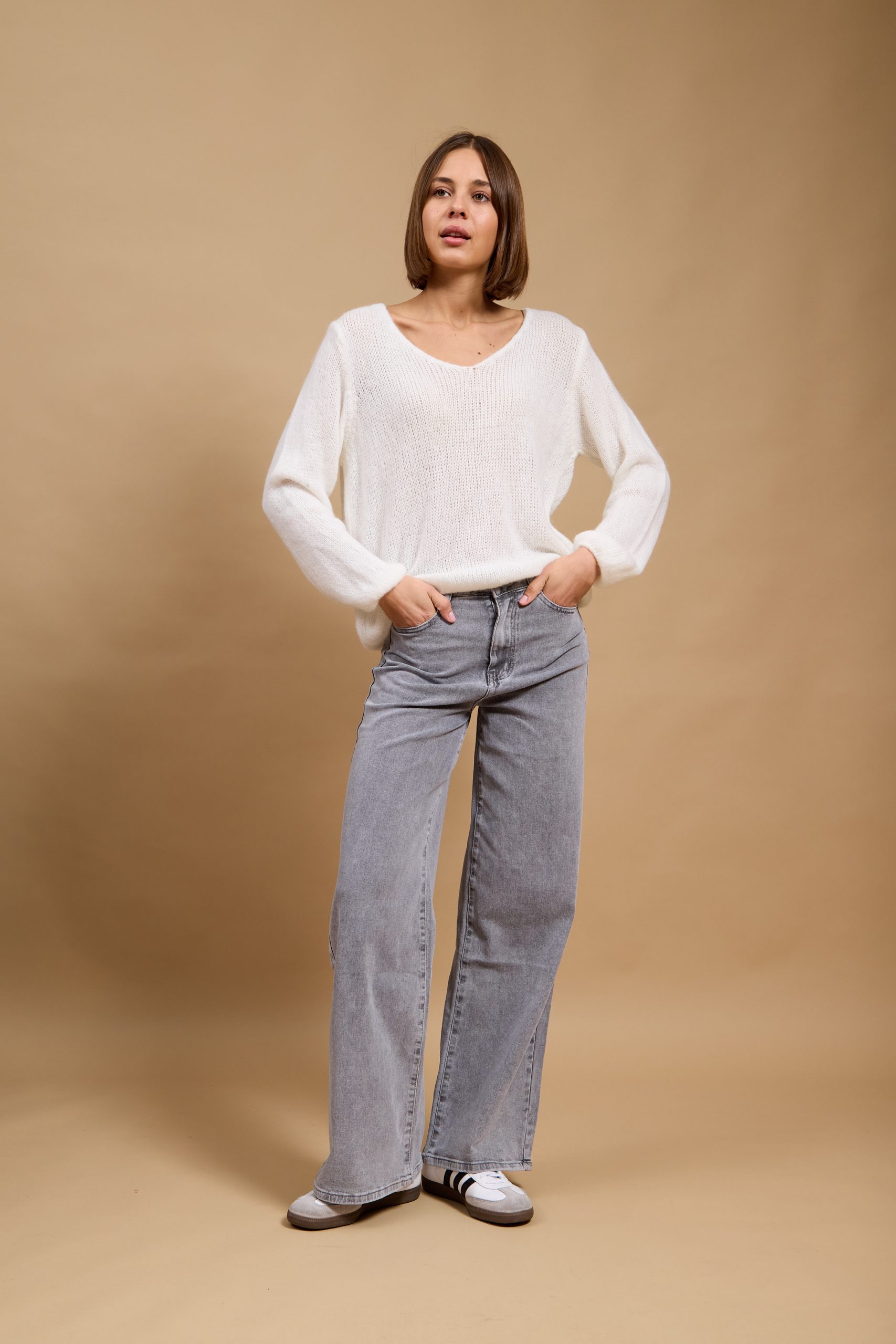 Designed to sit high on the waist and cut with wide legs, the denim is lightly washed for an authentic lived-in look. Wear yours with and oversized shirt or chunky knit.
