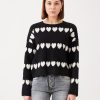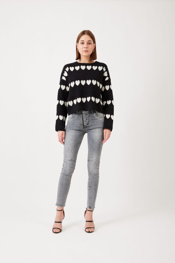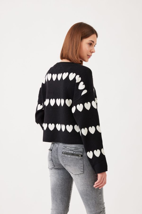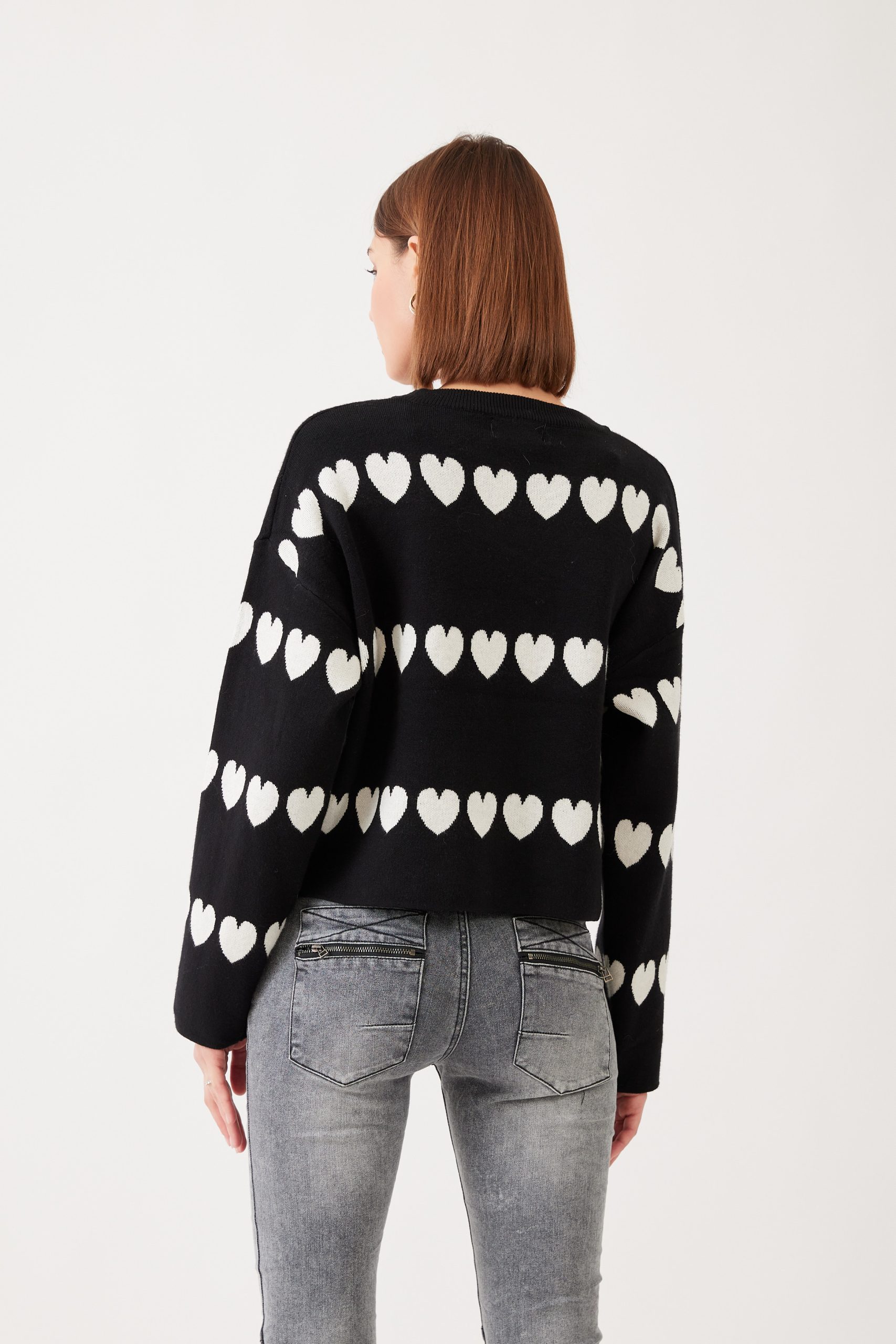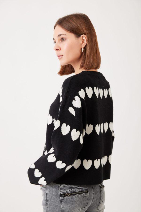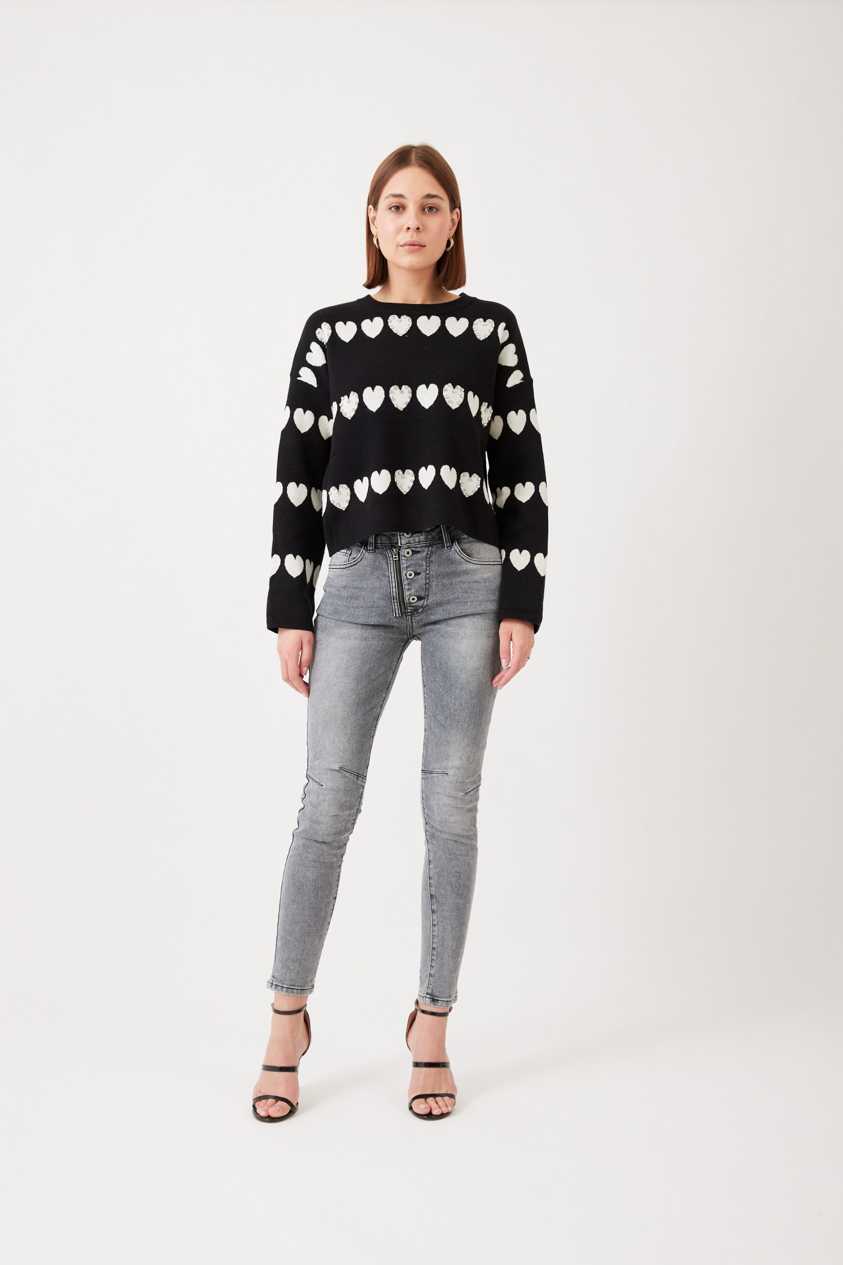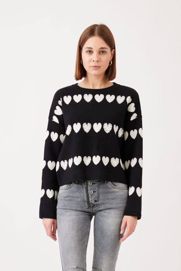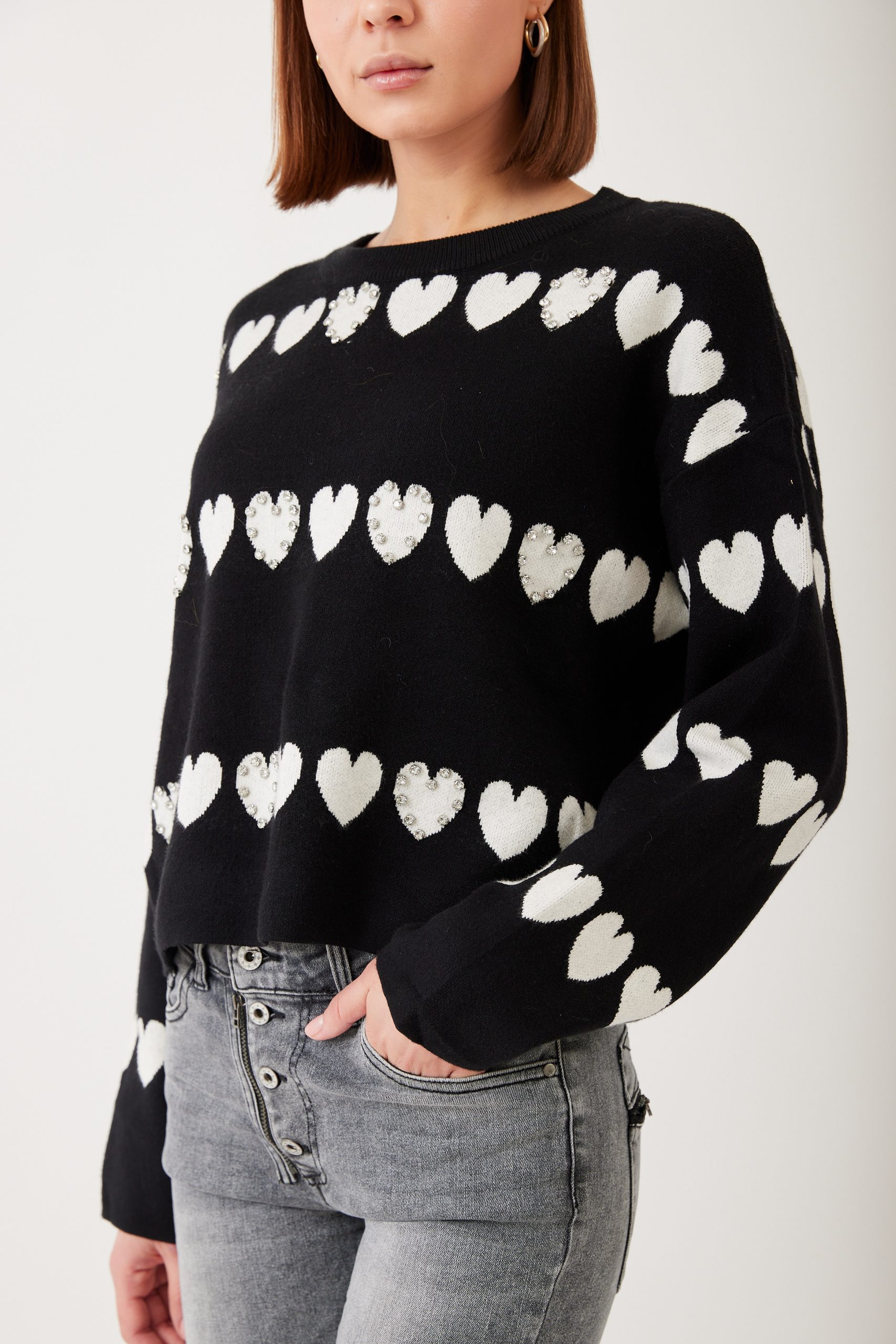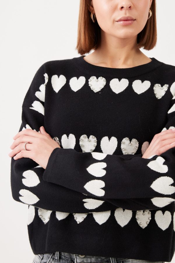 Millie sweater is knitted from exceptionally soft recycled polyester and wool , warm and soft . Designed with embellished sequins hearts, it has dropped shoulders and a slightly longer back hem that emphasises the relaxed shape. It’s designed for a relaxed fit and defined by thick ribbed trims – the type of detail that sets your wardrobe staples apart. This  v neck sweater drapes beautifully and has ribbed trims that are perfect for tucking into the waistband of your skirt or jeans.