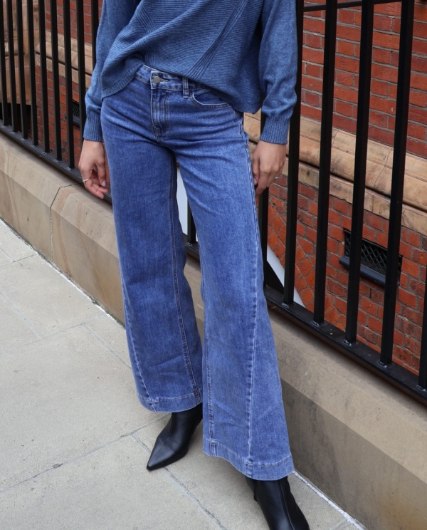 Designed to sit high on the waist and cut with wide legs, the denim is lightly washed for an authentic lived-in look. Wear yours with and oversized shirt or chunky knit. The high waist complements so many tops.