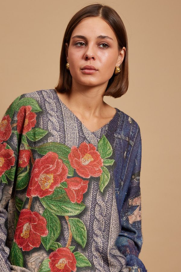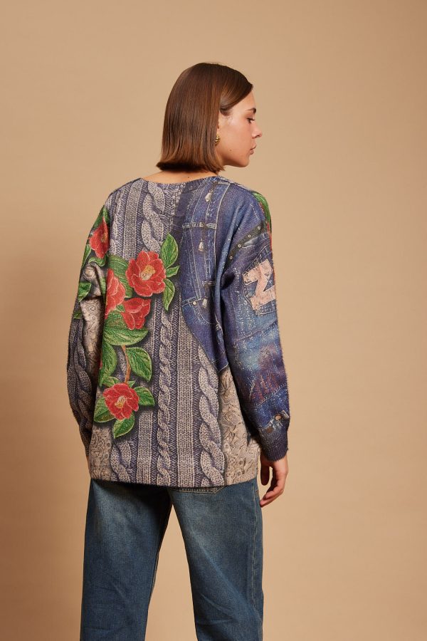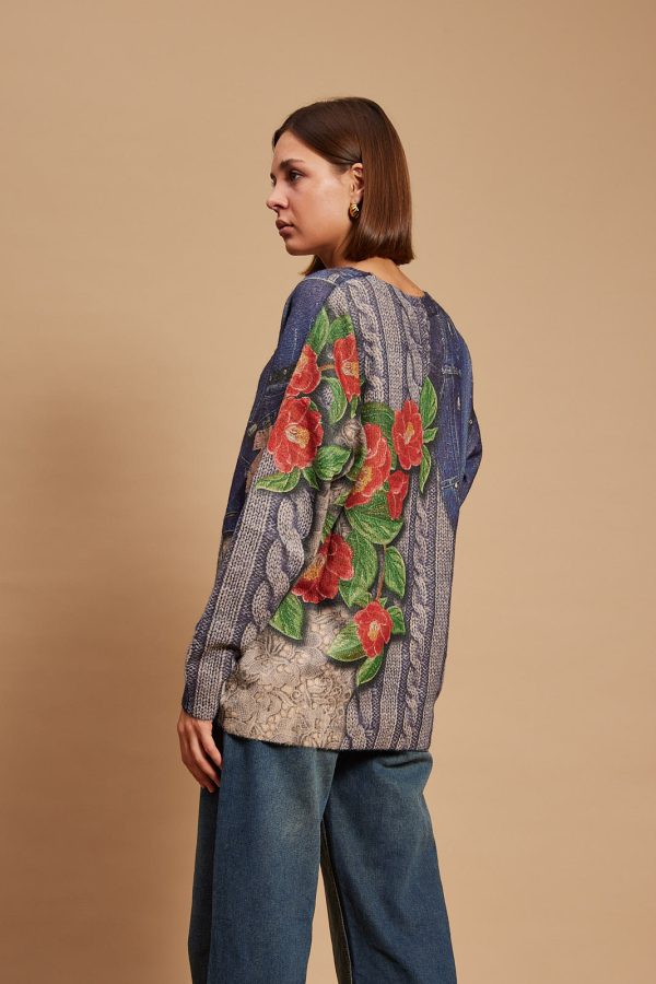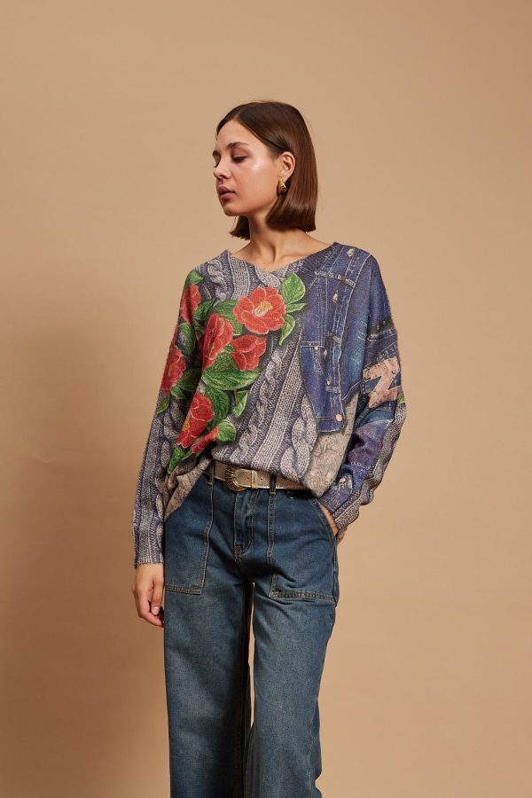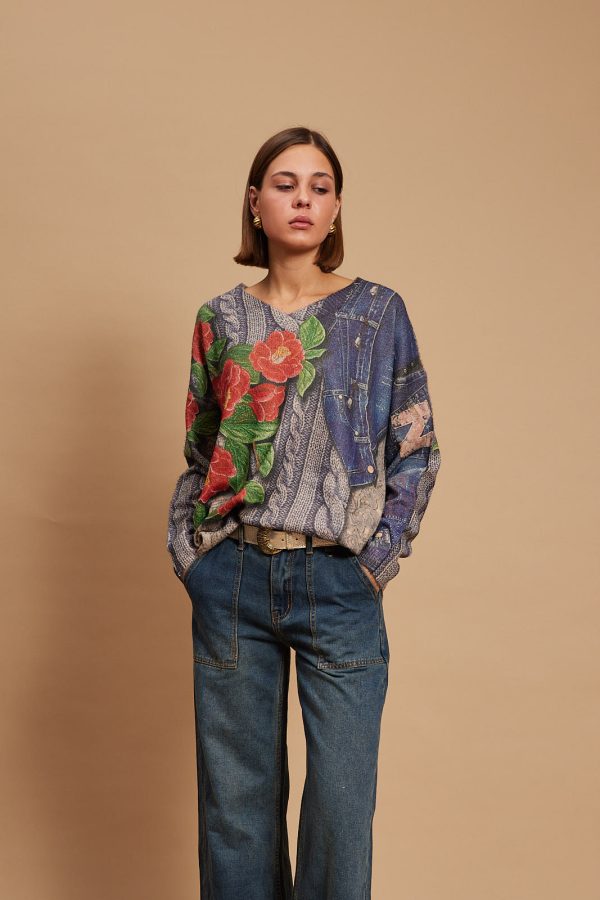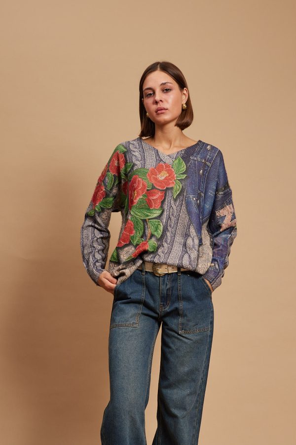 Nia sweater is printed with a combination of abstract and pretty details that are strategically placed to emphasize the shape of your figure. It’s made from lightweight polyester cotton blend for a relaxed fit and has a round neckline. Wear yours with tonal denim and heels. Designed in a classic crew-neck shape,  in a relaxed fit enhanced by dropped shoulders . Switch between styling it with boyfriend jeans, slouchy tailoring and tulle skirts.