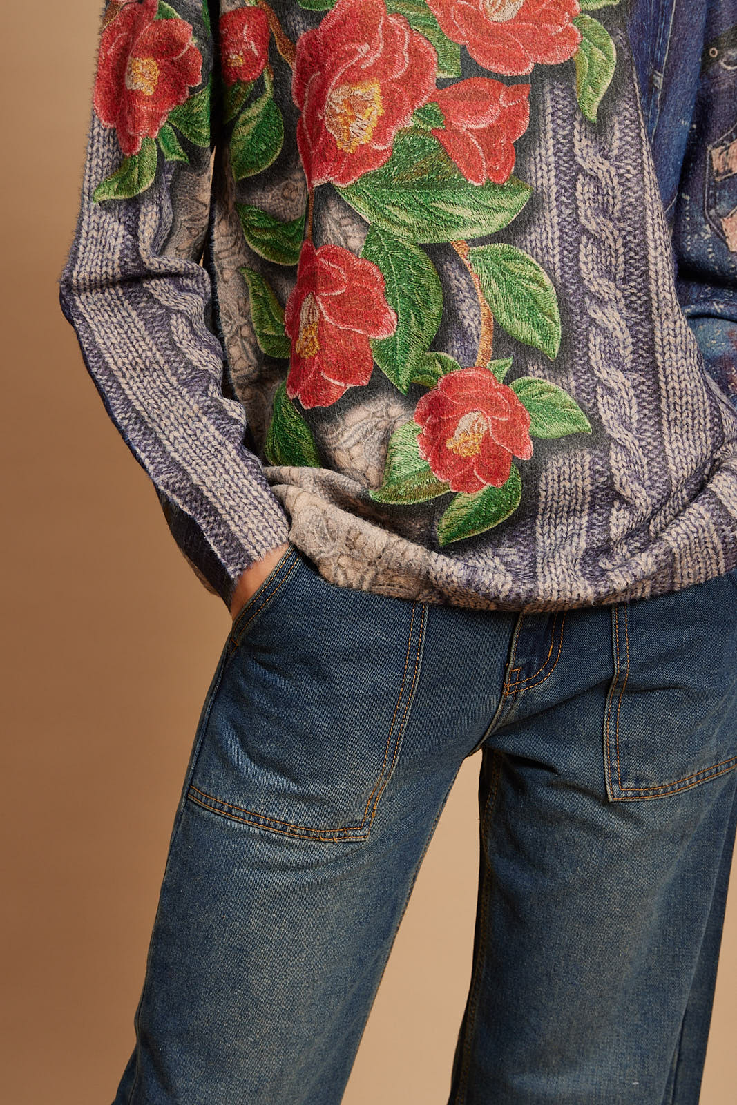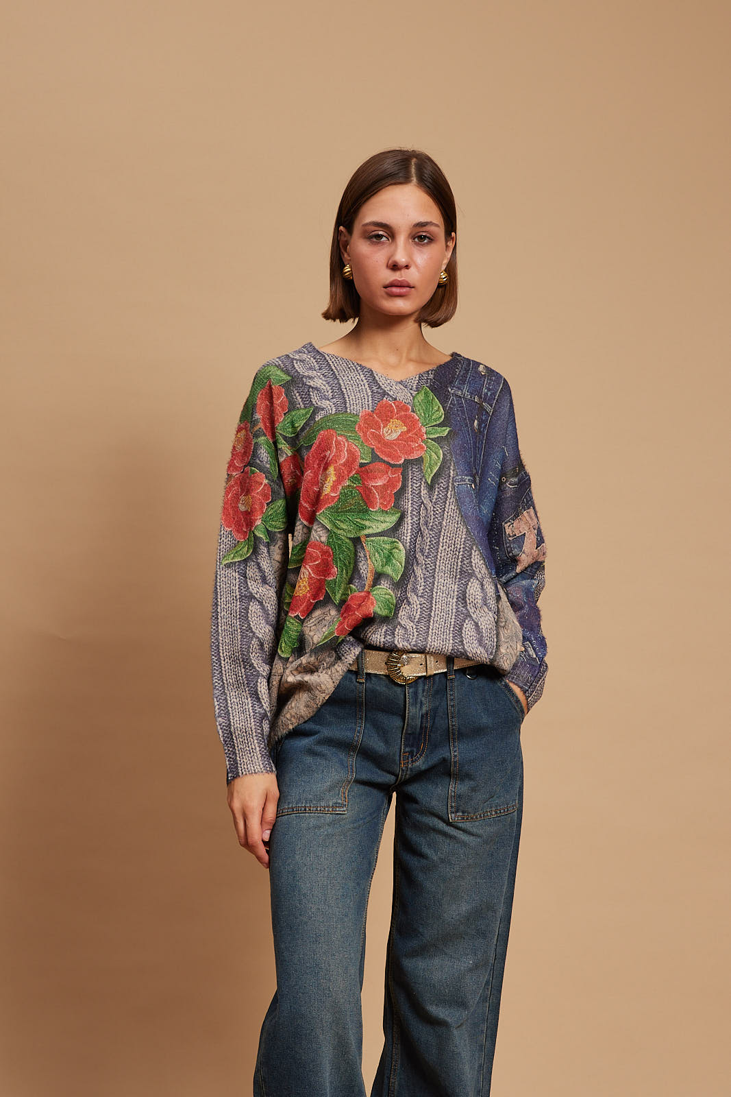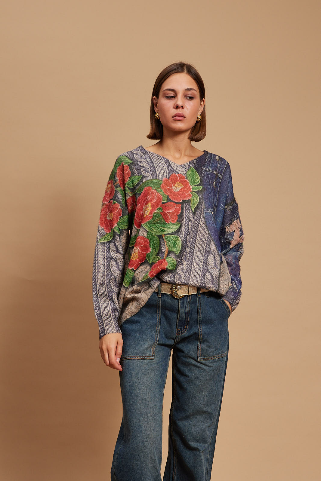 Nia sweater is printed with a combination of abstract and pretty details that are strategically placed to emphasize the shape of your figure. It’s made from lightweight polyester cotton blend for a relaxed fit and has a round neckline. Wear yours with tonal denim and heels. Designed in a classic crew-neck shape,  in a relaxed fit enhanced by dropped shoulders . Switch between styling it with boyfriend jeans, slouchy tailoring and tulle skirts.