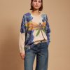 Nia sweater  is printed with a combination of abstract and pretty details that are strategically placed to emphasize the shape of your figure. It’s made from lightweight polyester cotton blend for a relaxed  fit and has a round neckline. Wear yours with tonal denim and heels. Designed in a classic crew-neck shape,  in a relaxed fit enhanced by dropped shoulders . Switch between styling it with boyfriend jeans, slouchy tailoring and tulle skirts.