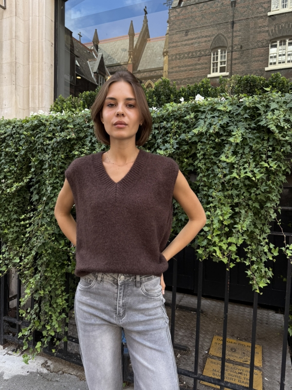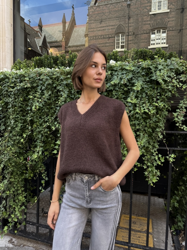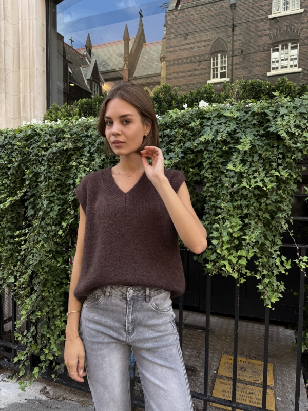 Nina – Knitted Vest In Brown