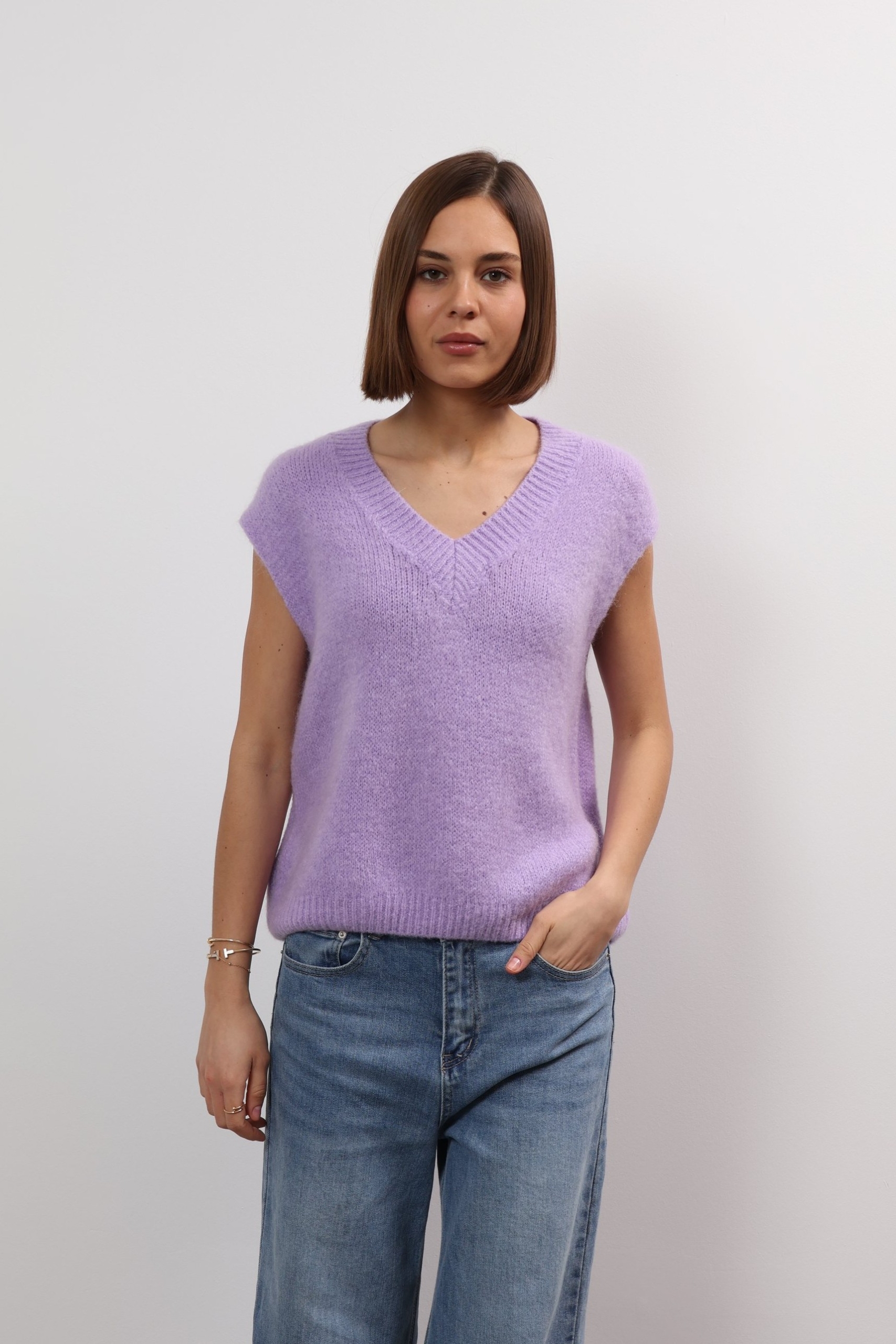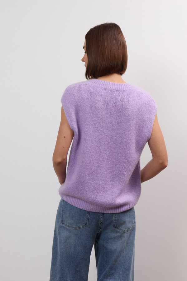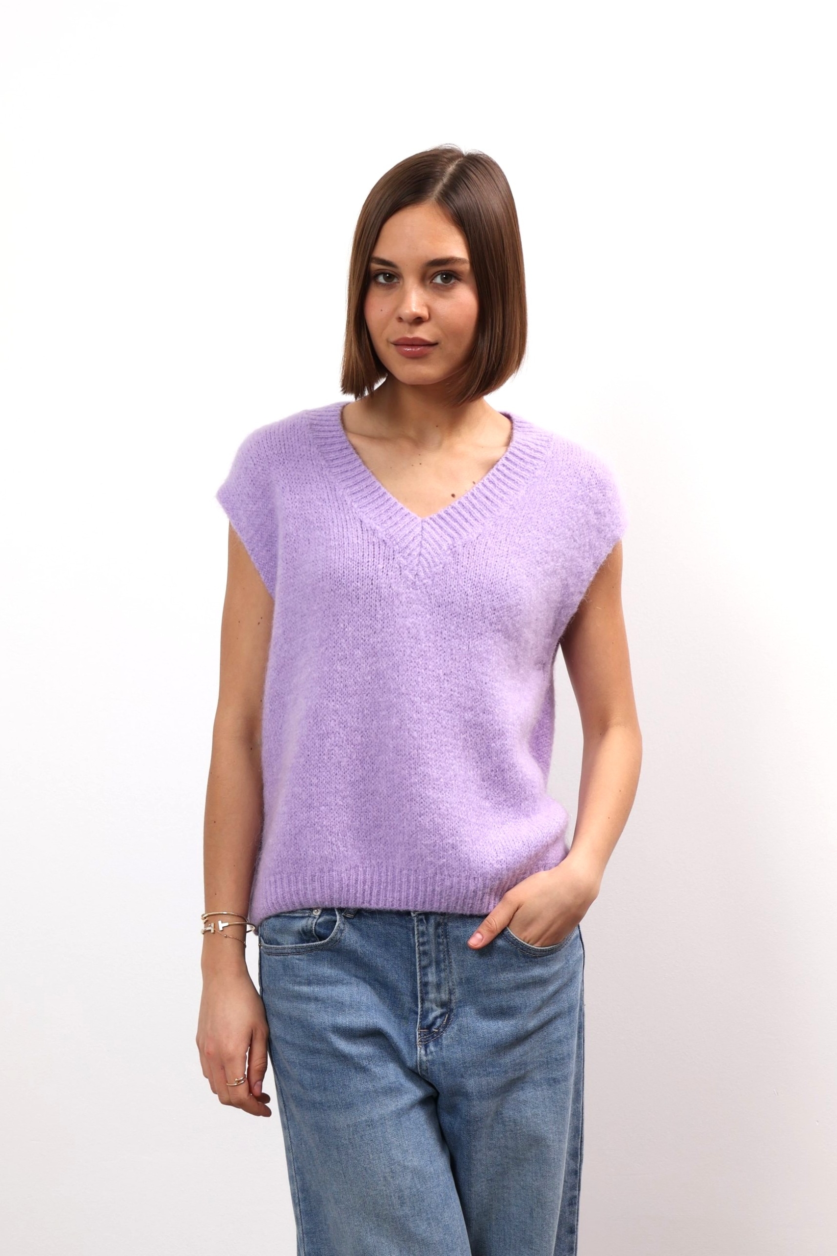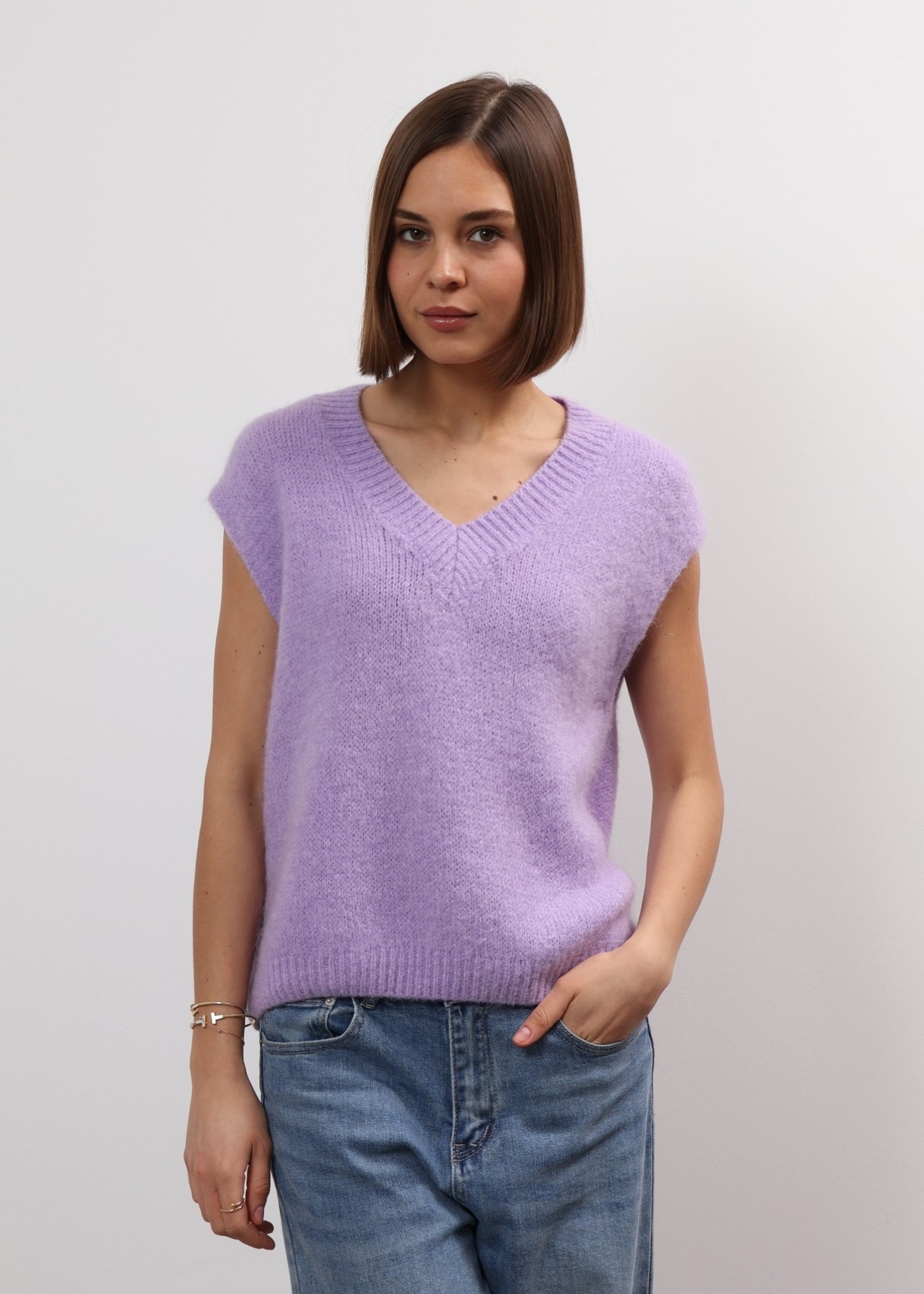 Knitted vest Nina is made from cosy wool, viscose and mohair blend. It’s traced with ribbed trims and looks just as chic over crisp shirting as it does solo. Wear yours on its own or layered over a collared shirt. Style yours with a sleek midi skirt or tailored pants.