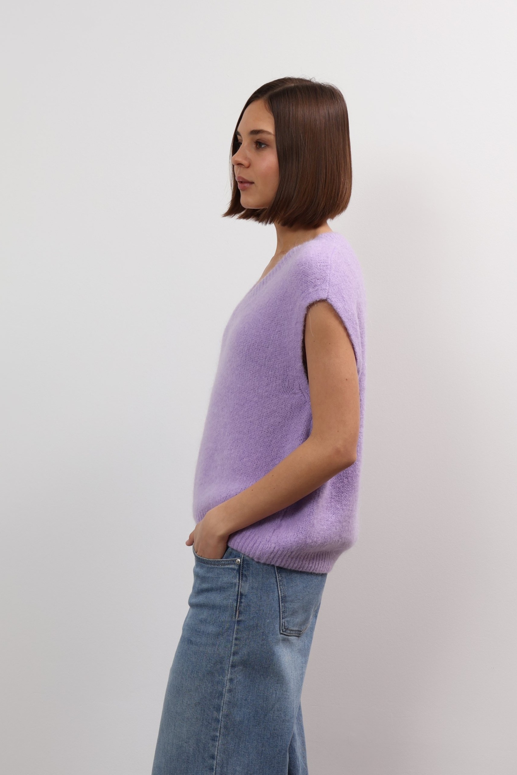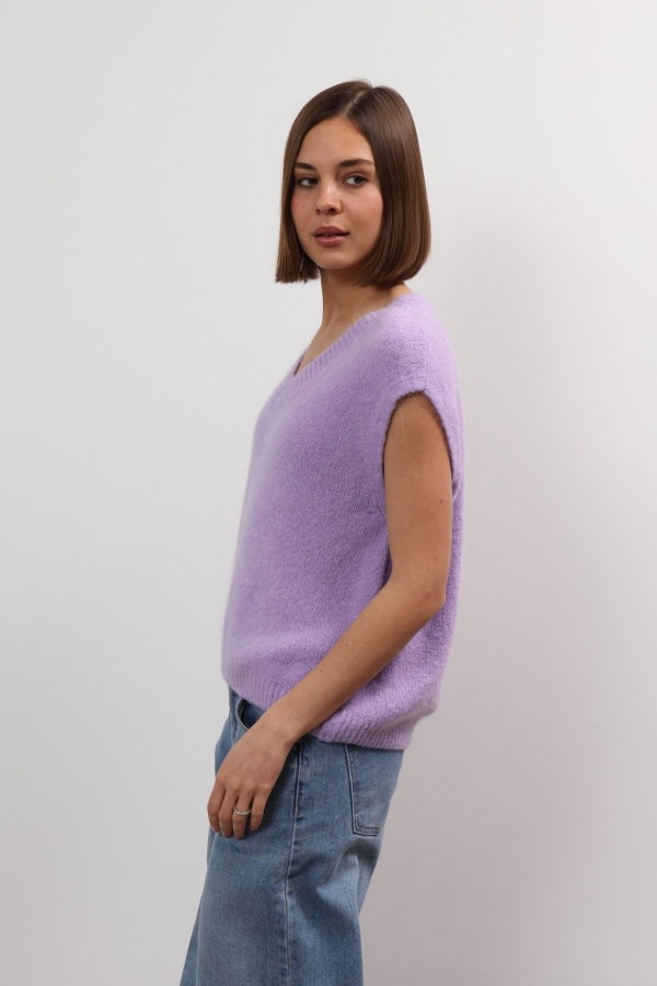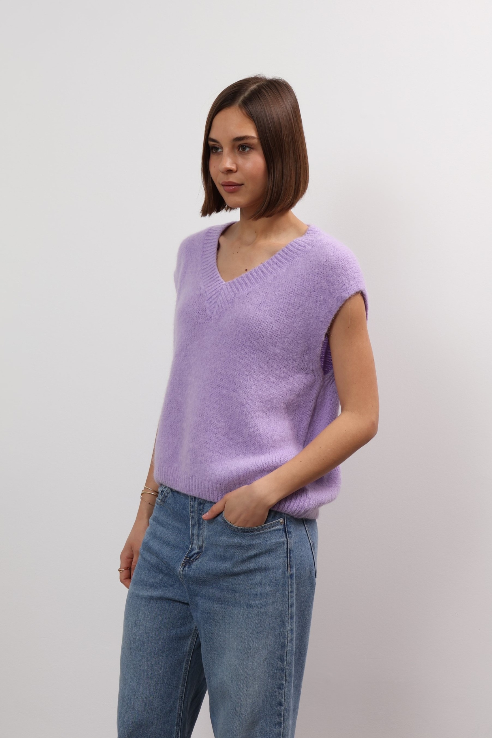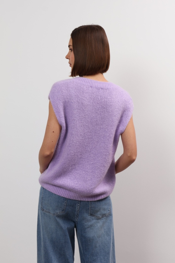 Knitted vest Nina is made from cosy wool, viscose and mohair blend. It’s traced with ribbed trims and looks just as chic over crisp shirting as it does solo. Wear yours on its own or layered over a collared shirt. Style yours with a sleek midi skirt or tailored pants.