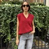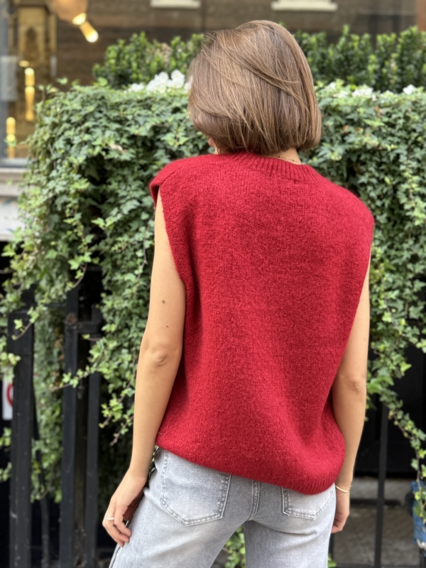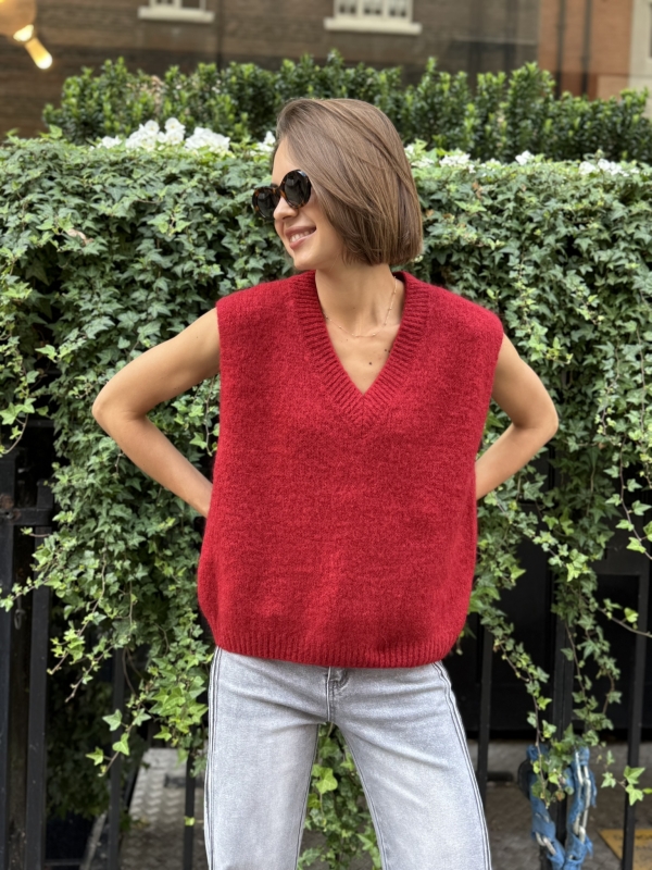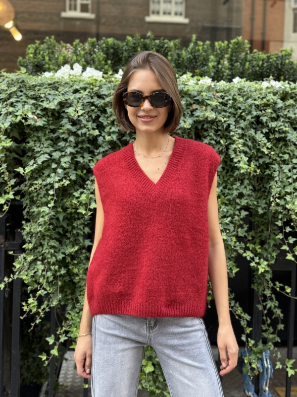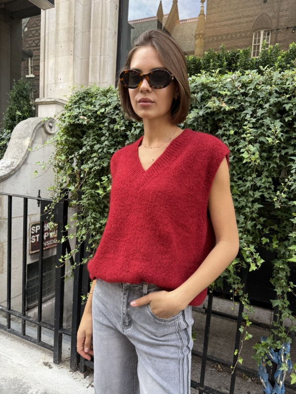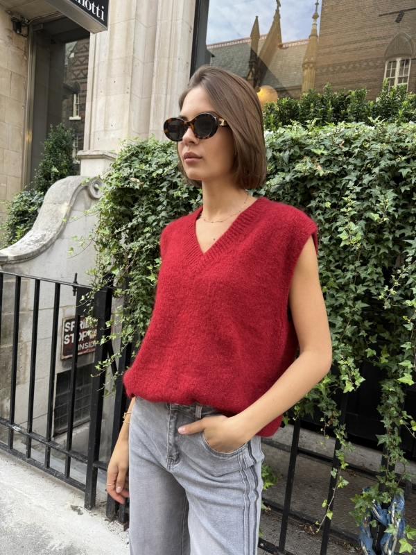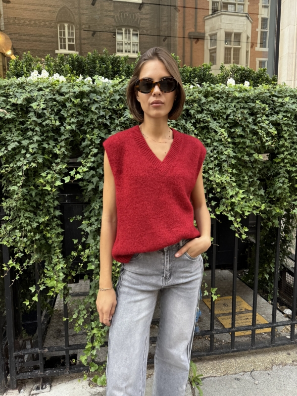Knitted vest Nina is made from cosy wool, viscose and mohair blend. It’s traced with ribbed trims and looks just as chic over crisp shirting as it does solo. Wear yours on its own or layered over a collared shirt. Style yours with a sleek midi skirt or tailored pants.