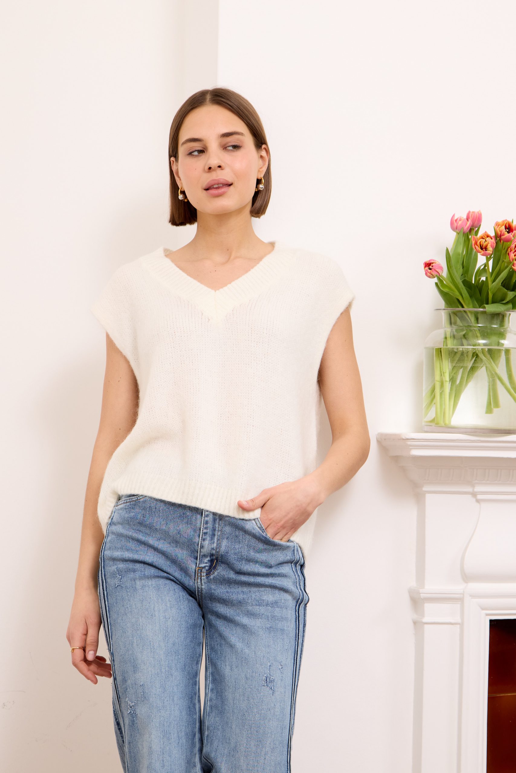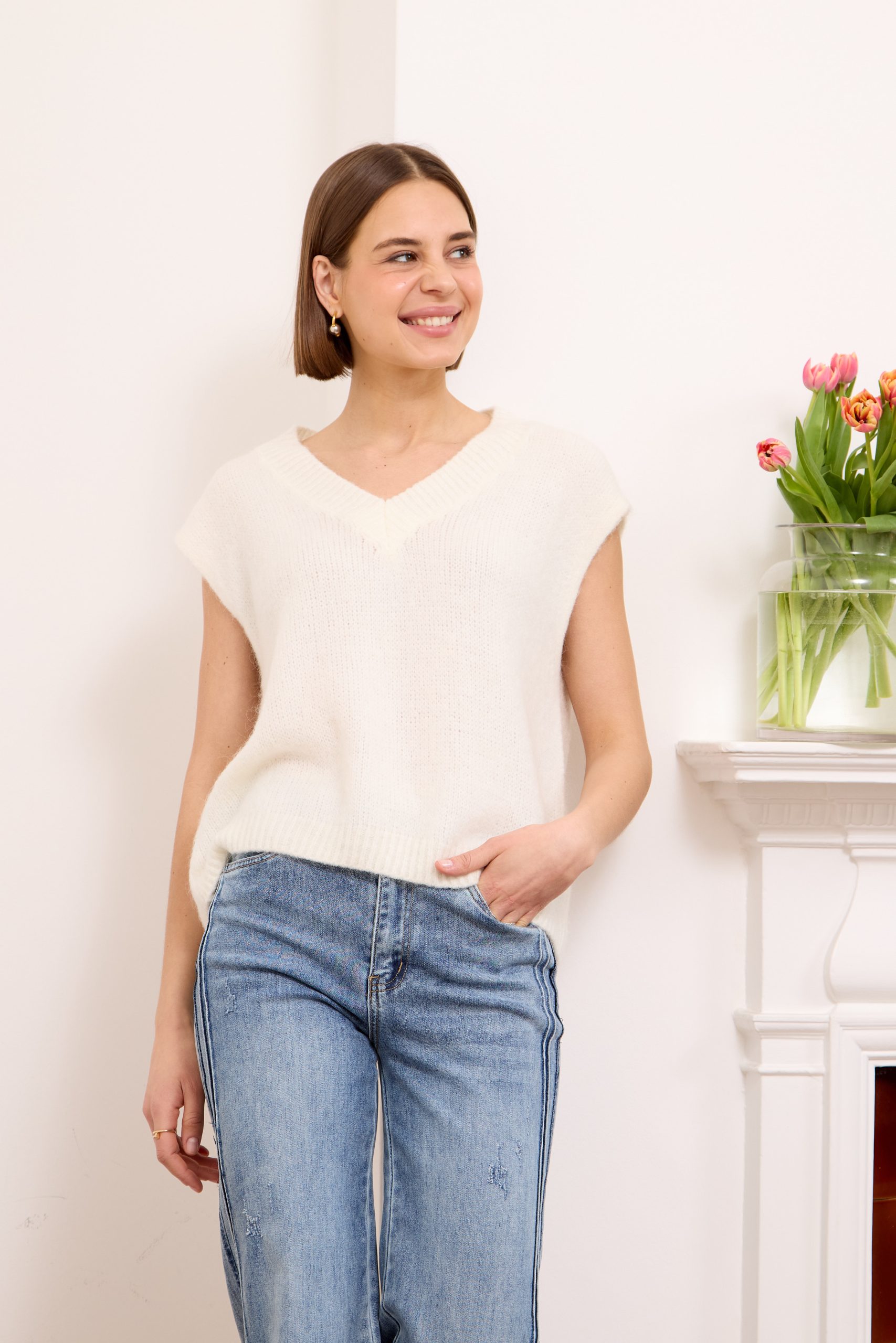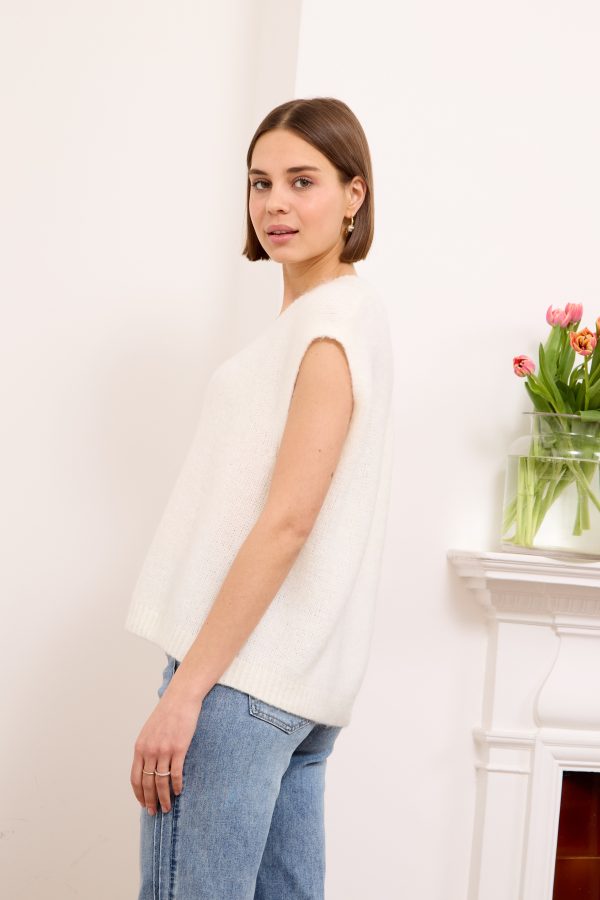 Knitted vest Nina is made from cosy wool, viscose and mohair blend. It’s traced with ribbed trims and looks just as chic over crisp shirting as it does solo. Wear yours on its own or layered over a collared shirt. Style yours with a sleek midi skirt or tailored pants.