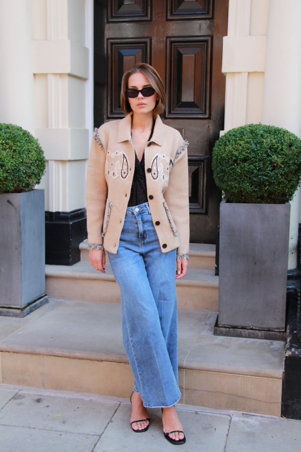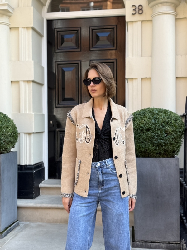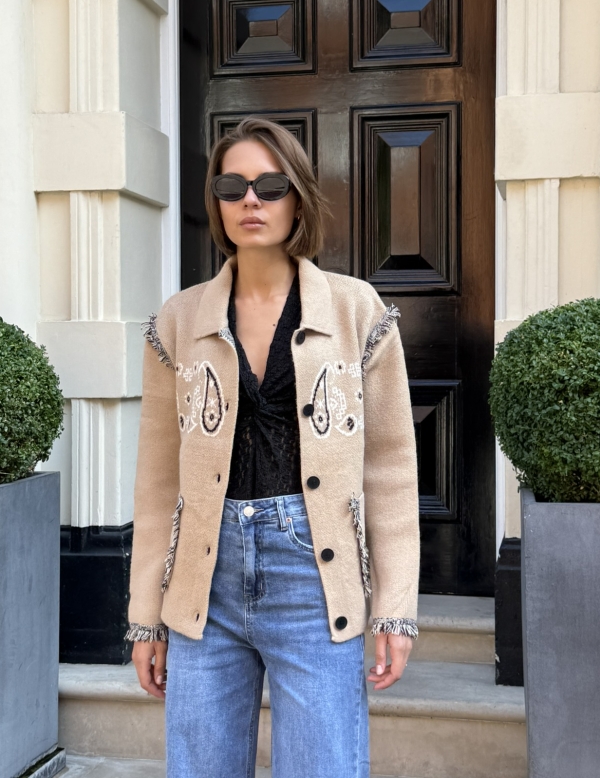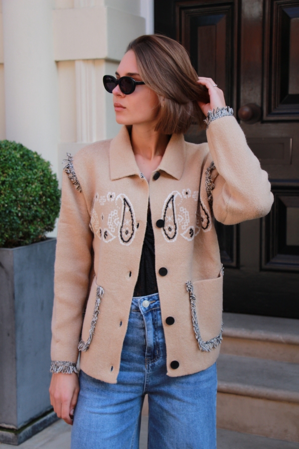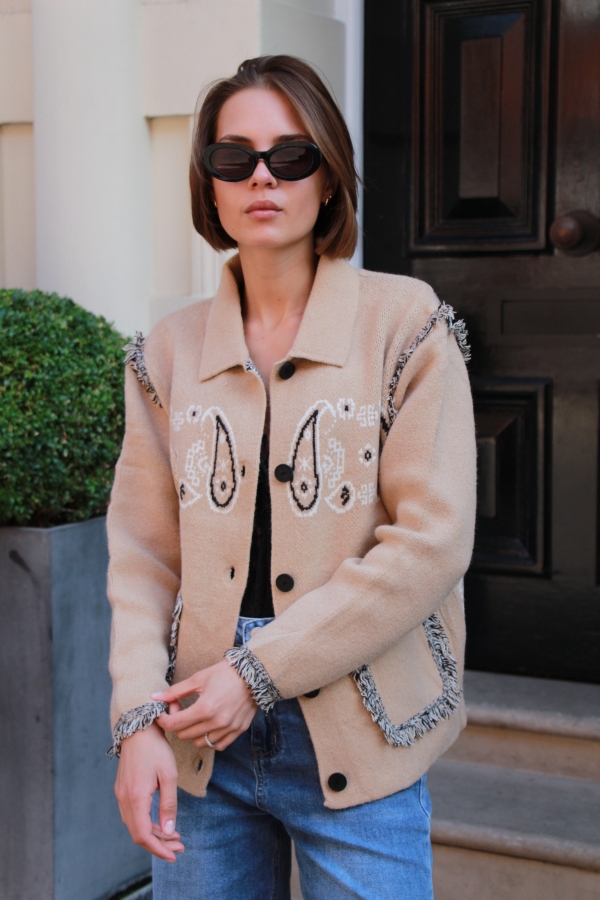 Odessa – jacquard-knit wool cashmere cardigan in beige