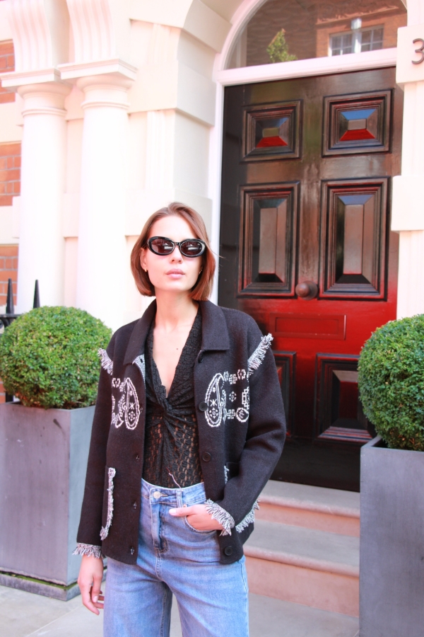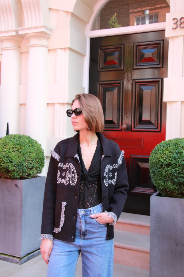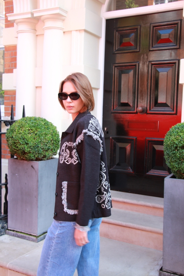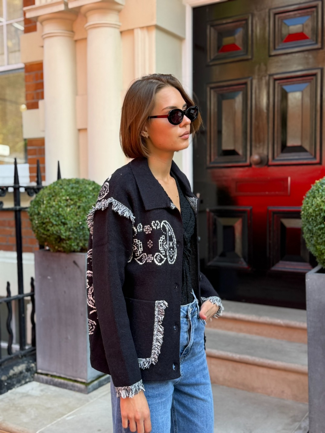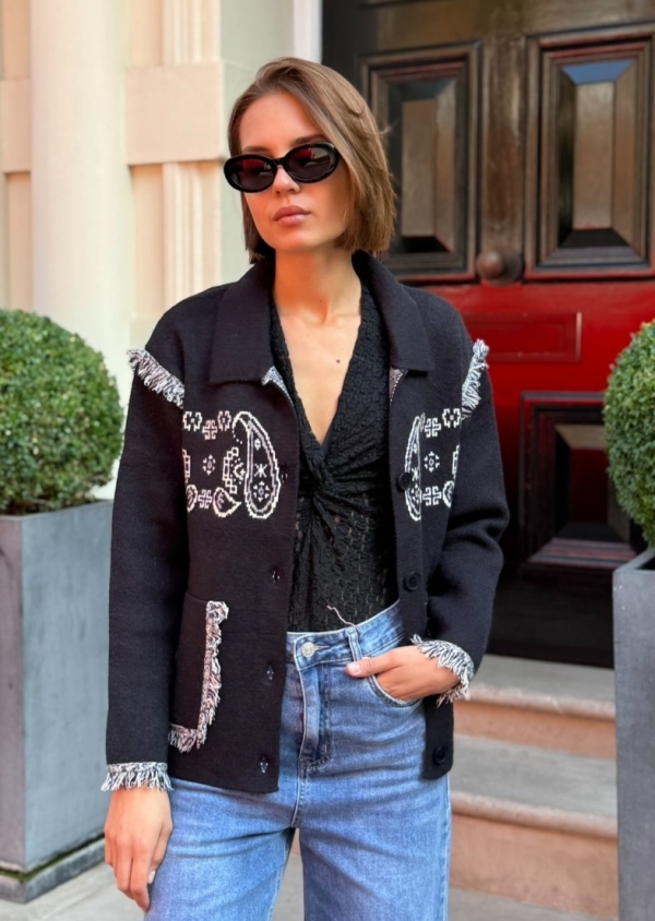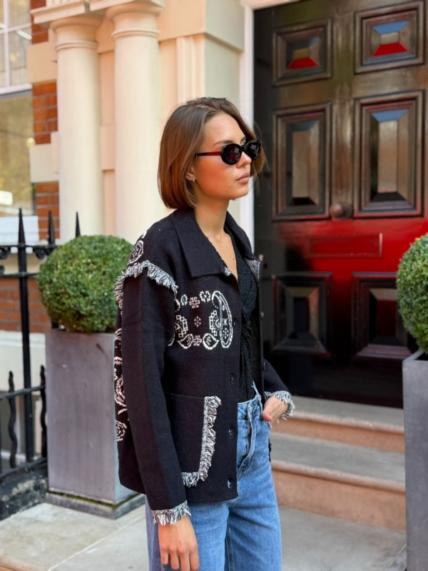 Odessa – jacquard-knit wool cashmere cardigan in black