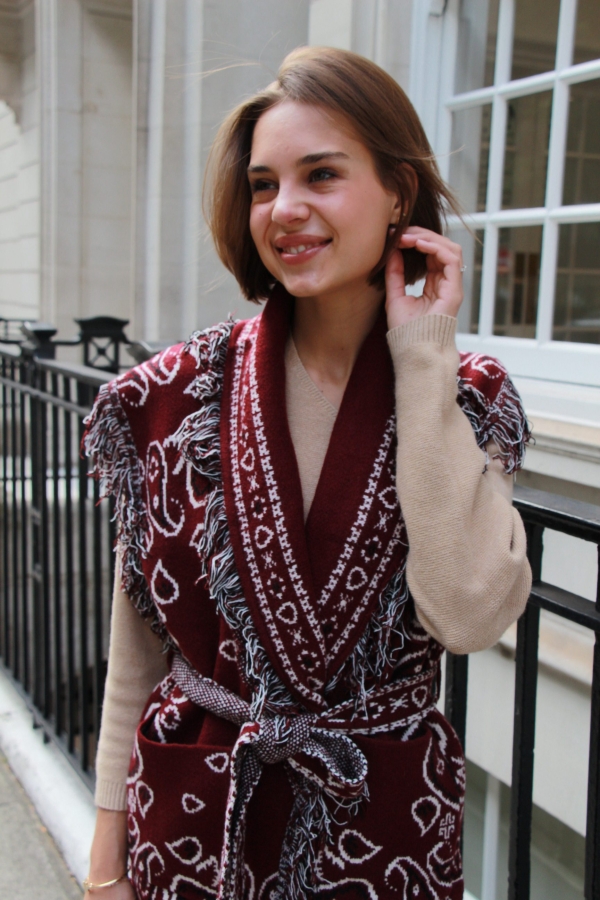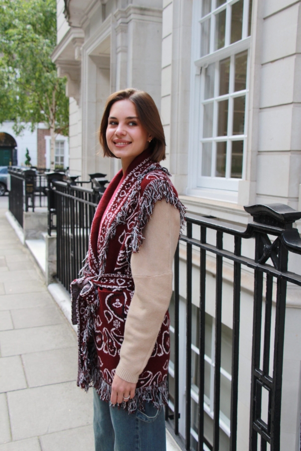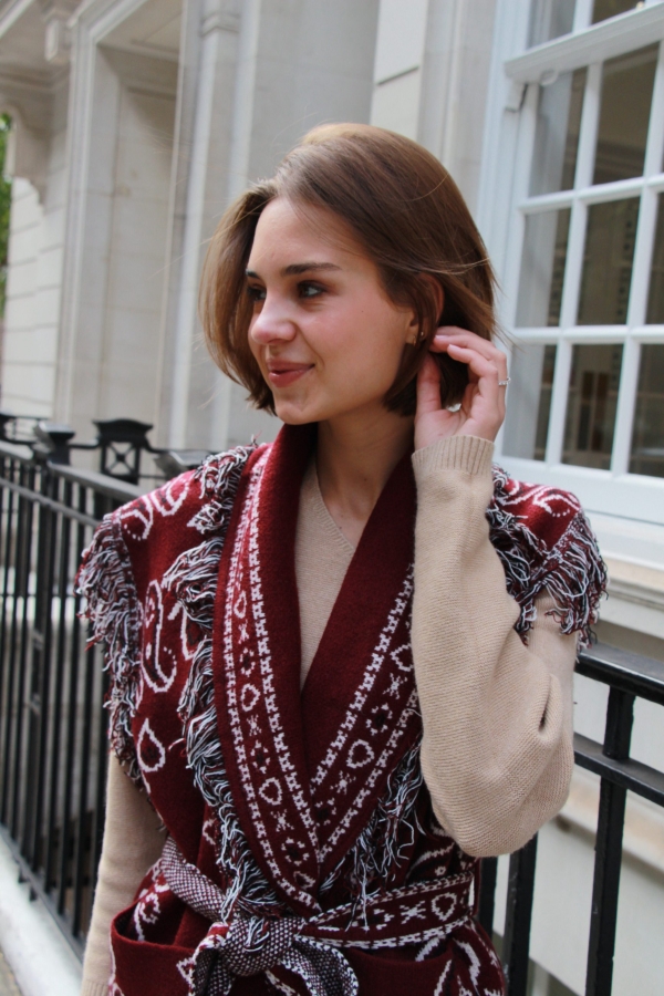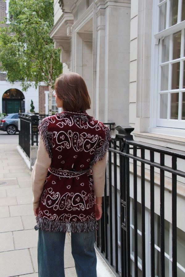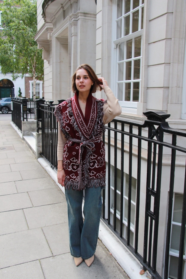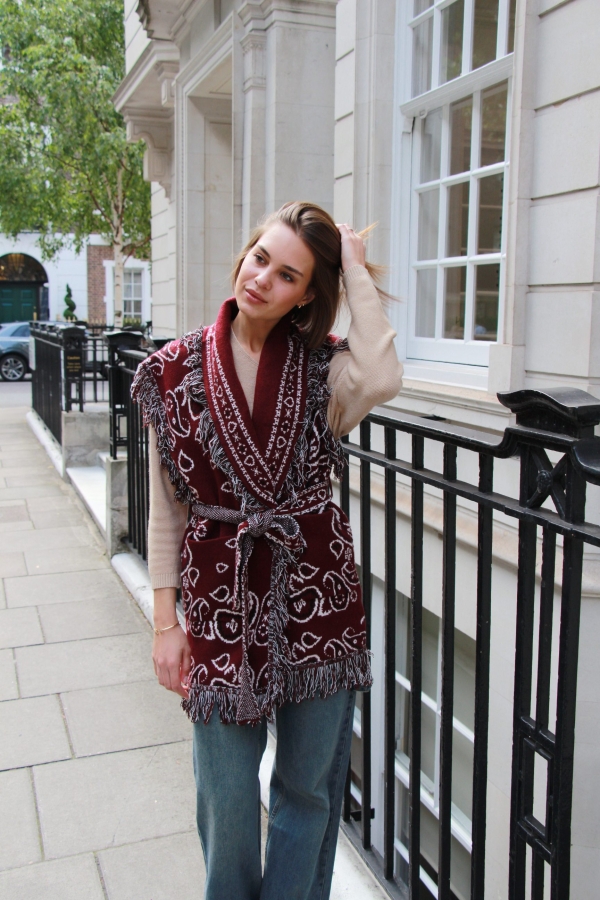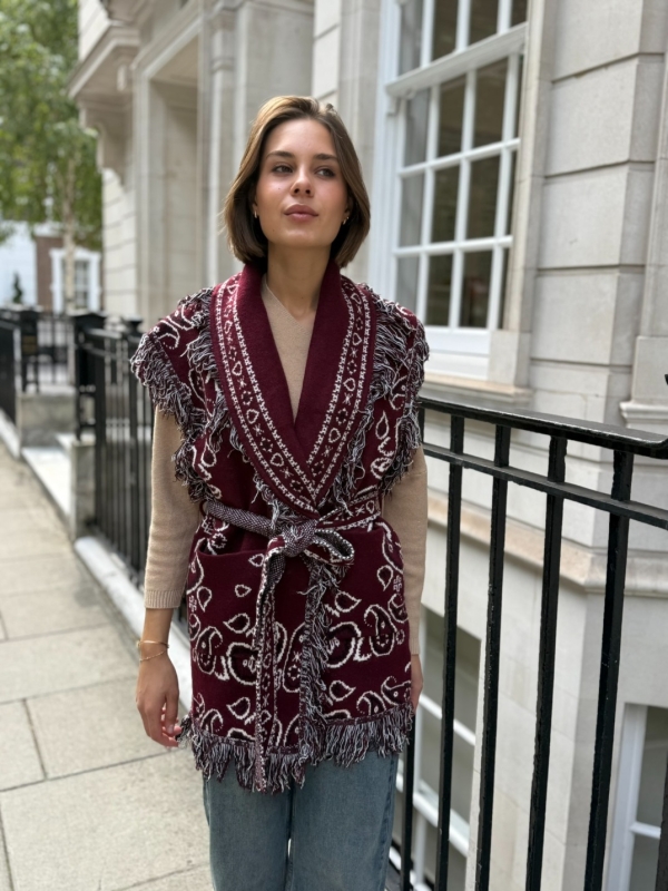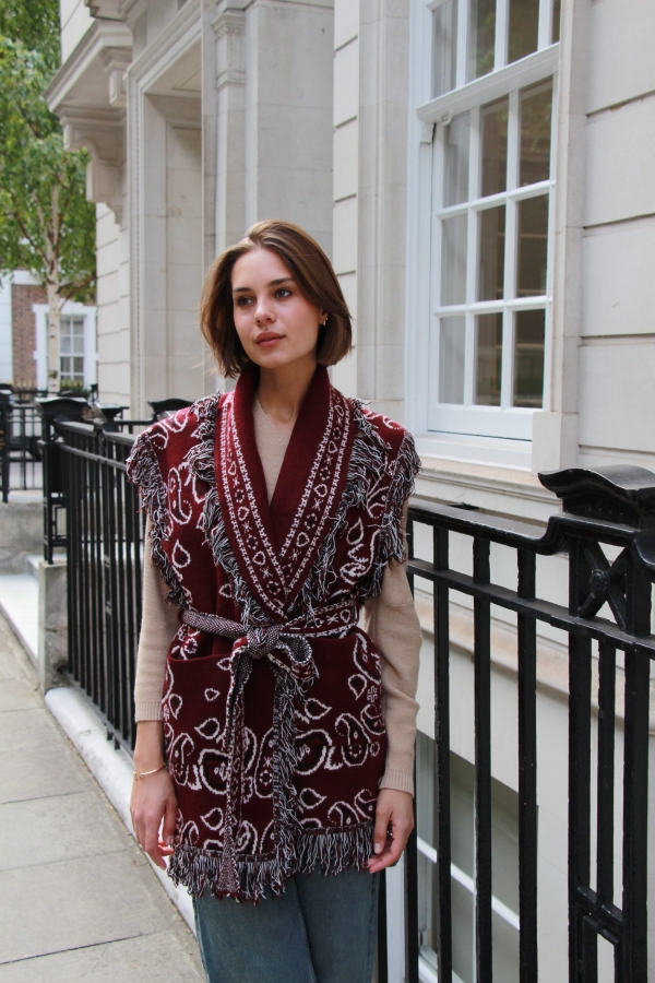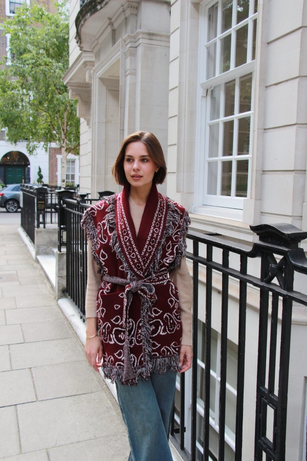 Odette – jacquard-knit wool cashmere gilet in burgundy