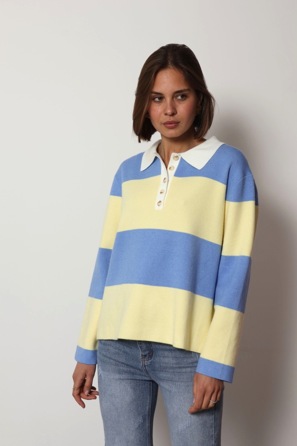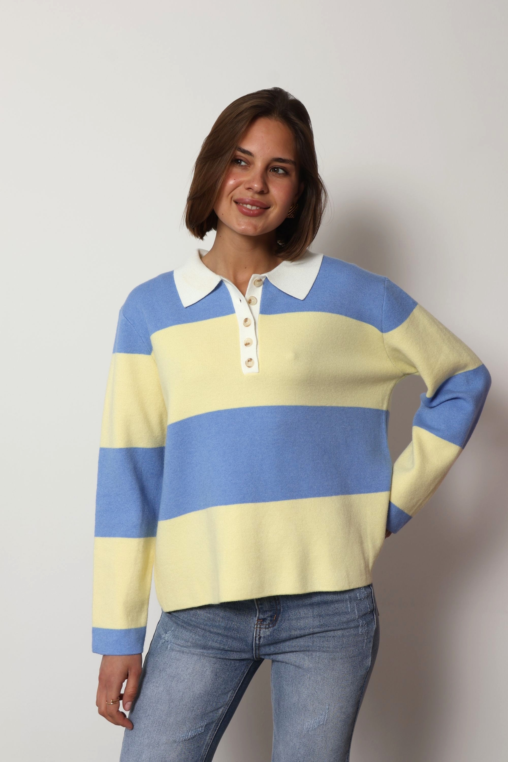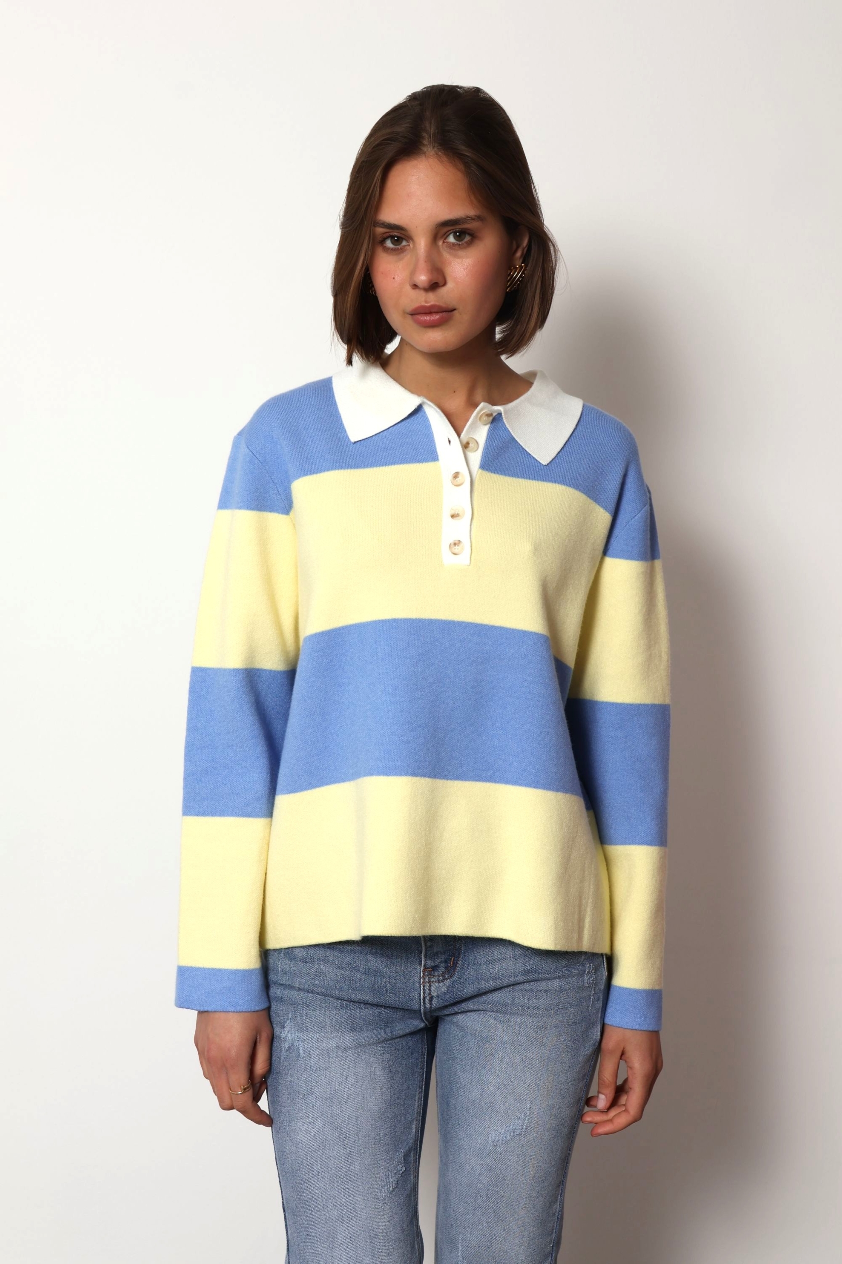 Olivia Jane -Striped rugby shirt sweater in blue and yellow
