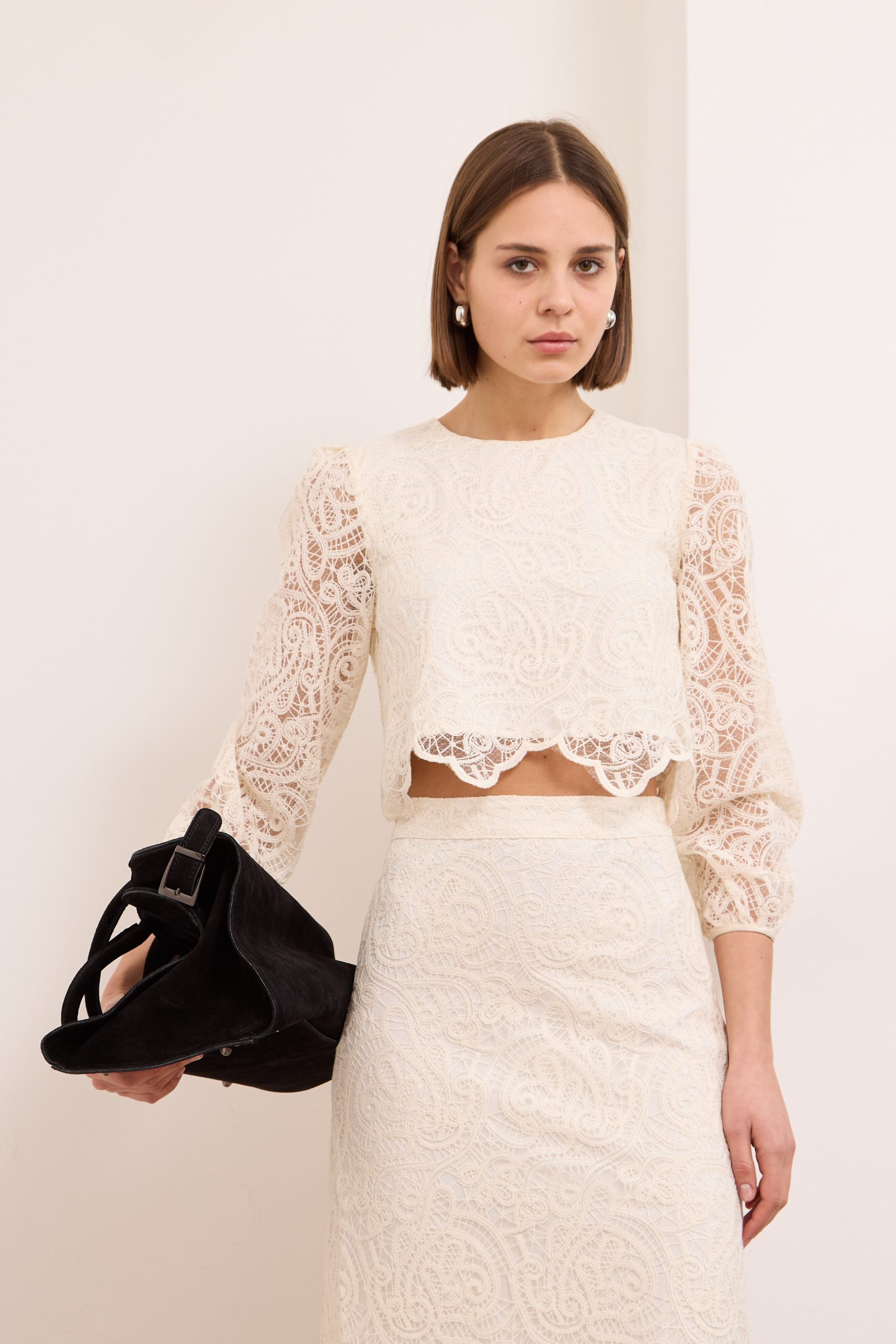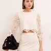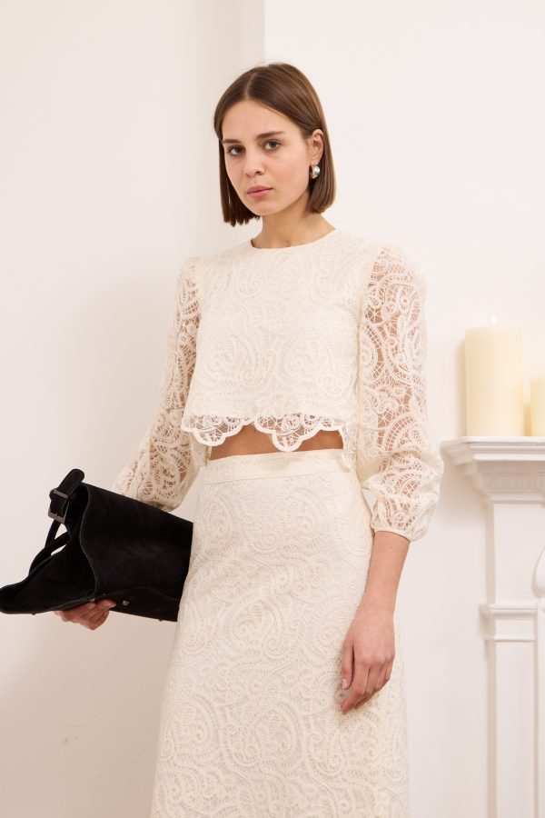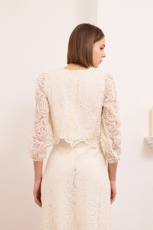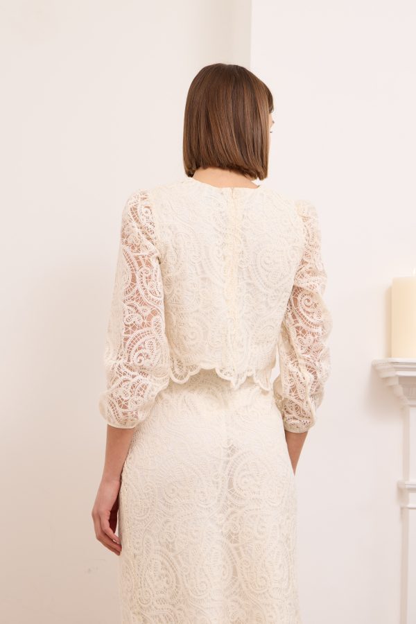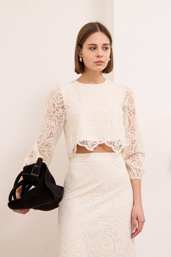 Olivia effortlessly incorporates romantic, vintage details into its feminine collections. This elegant lace trimmed blouse whimsically evokes the Victorian era. Crafted from delicate lace with touches of cotton, it’s cut for a slim fit with elegant sleeves . It’s designed with scalloped detailing at the edge . Delicate lace trims give it a pretty, bohemian look. Style yours into high-rise jeans or tailored pants.