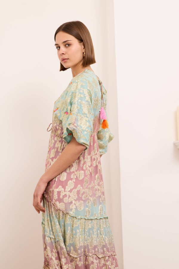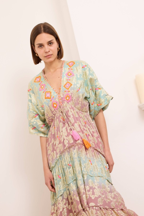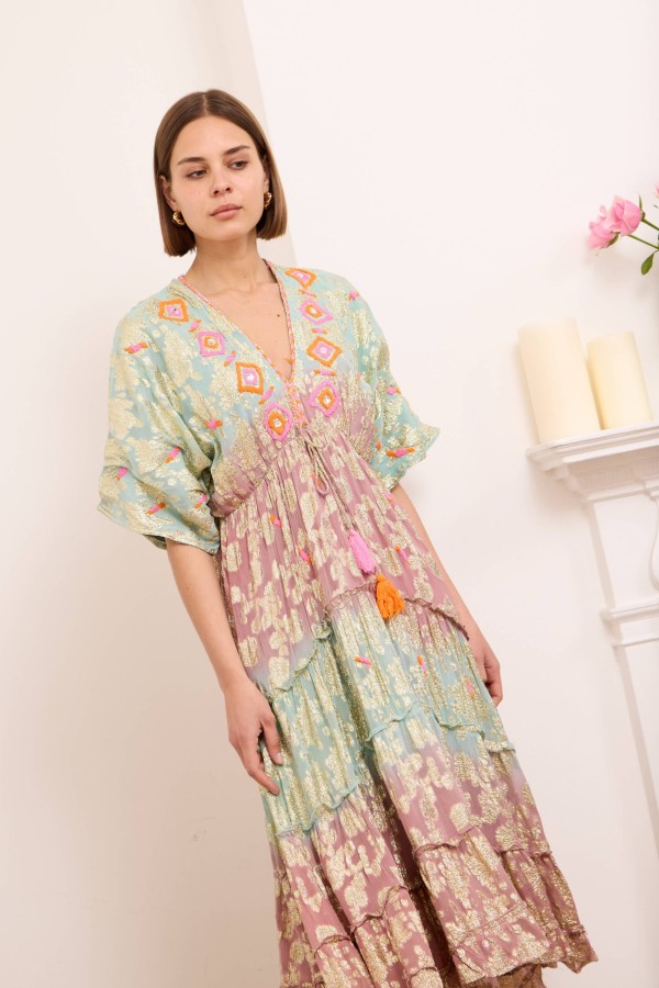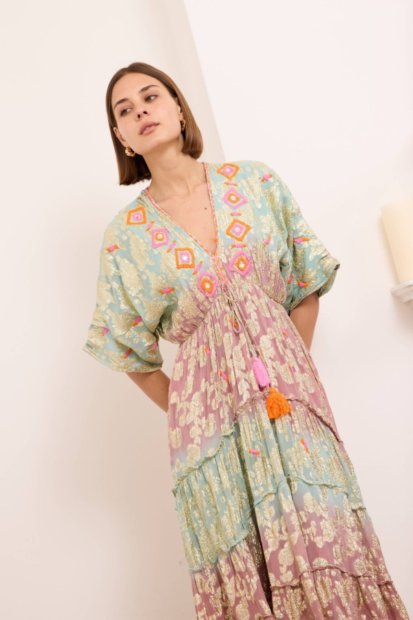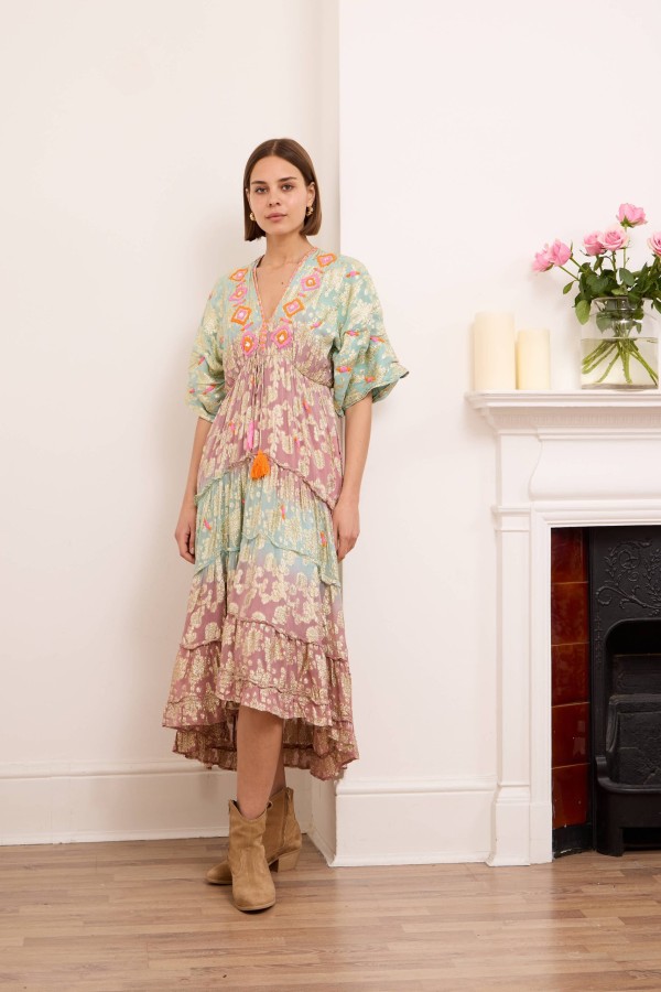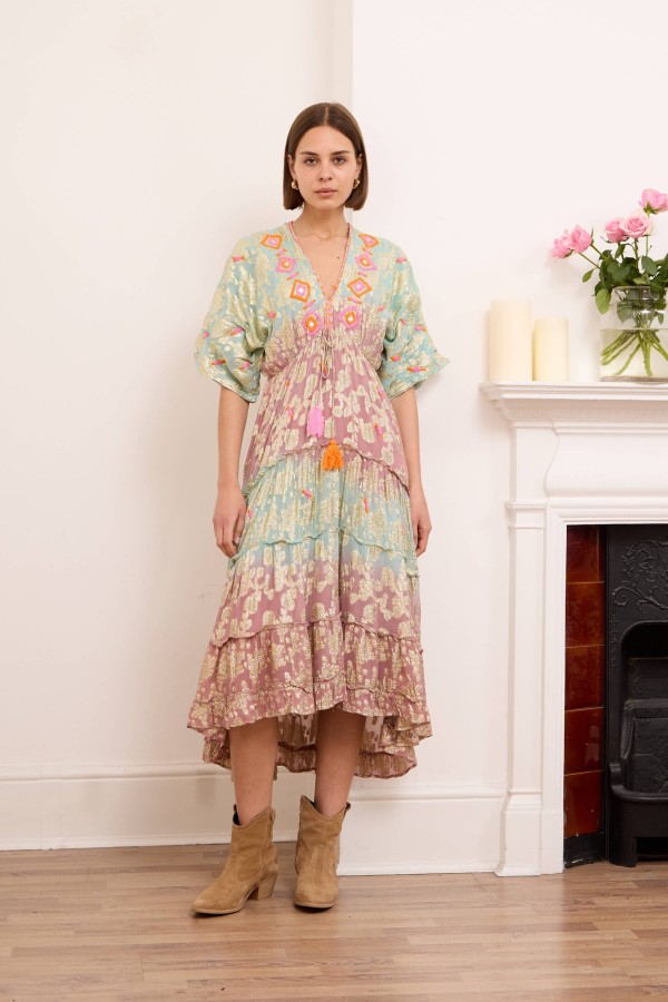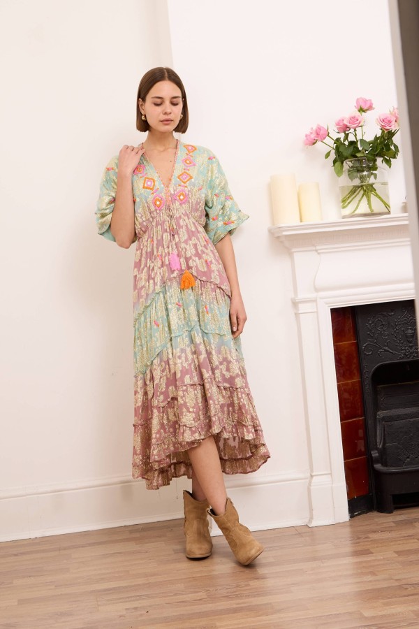 Onyx dress is ready for vacations spent exploring the coast with its floaty maxi length and embellished pattern. It’s spun from light and airy viscose with ties at the back, an open back and a shirred panel . Cut from airy viscose , it has a floaty tiered skirt that moves beautifully as you walk . Onyx maxi dress makes getting ready for special events feel effortless. Style yours with raffia wedge sandals and a wide-brimmed hat.
