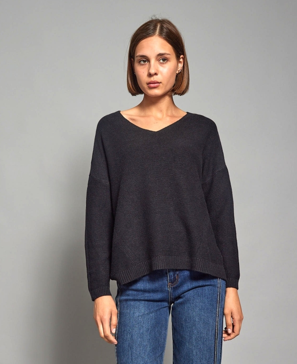 Pandora -viscose-blend v neck Sweater In black