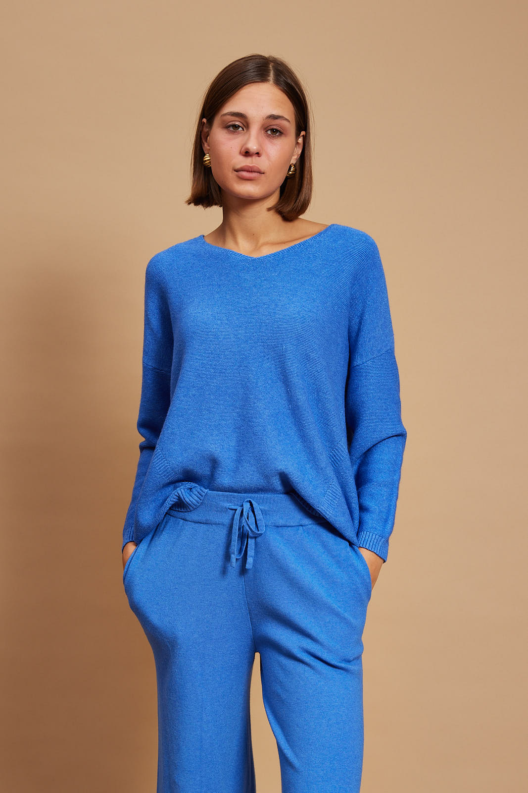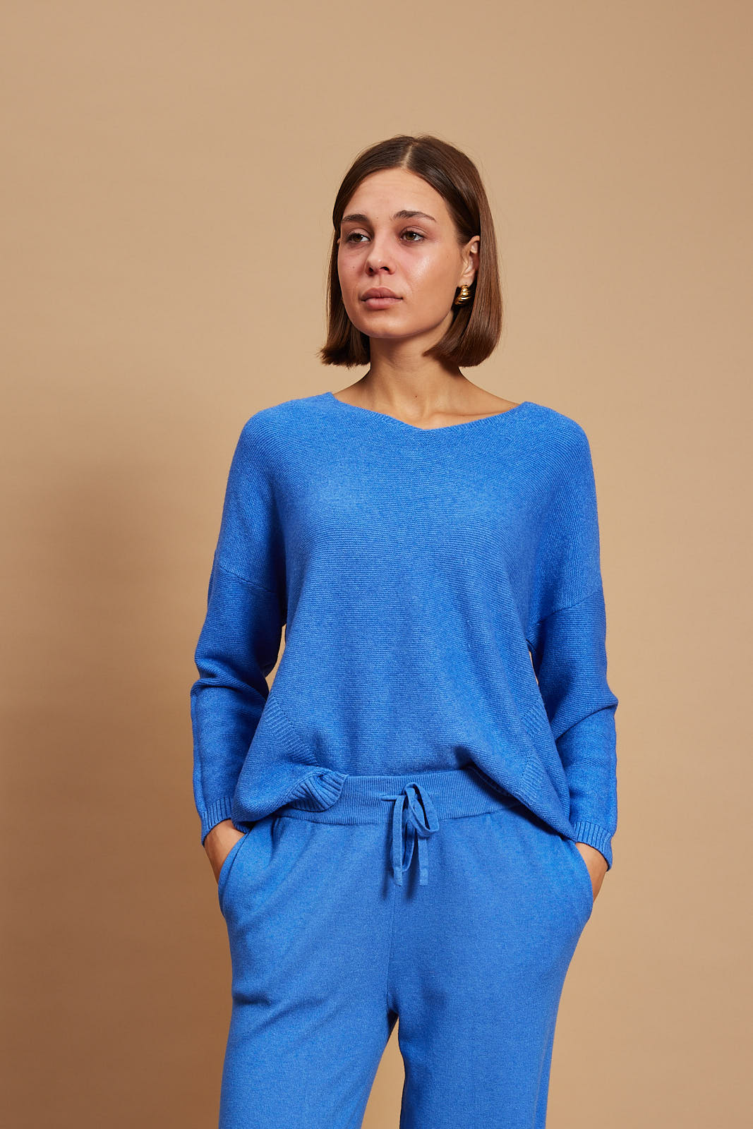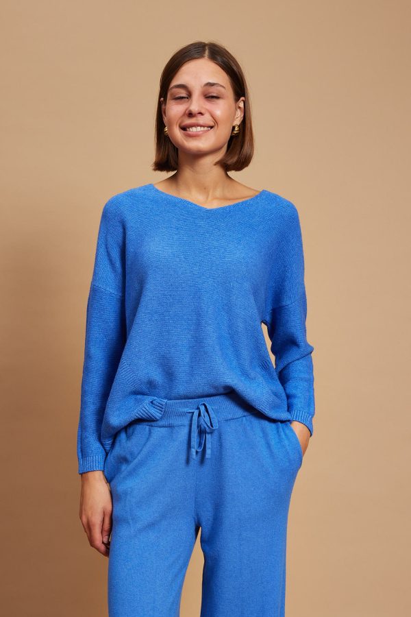 Pandora sweater offers refined comfort. It’s finely knitted with touches of viscose for a really lightweight and breathable handle. The striking hue will instantly freshen up your complexion and complements everything from neutral tones to dark denim. Designed in a classic v neck shape,  in a relaxed fit and has ribbed trims to enhance the sleeves.  Wear it solo or underpin it with a collared shirt or simple tee. Wear yours with high-rise jeans or tailoring. We have the coordinating pants in our edit, too.