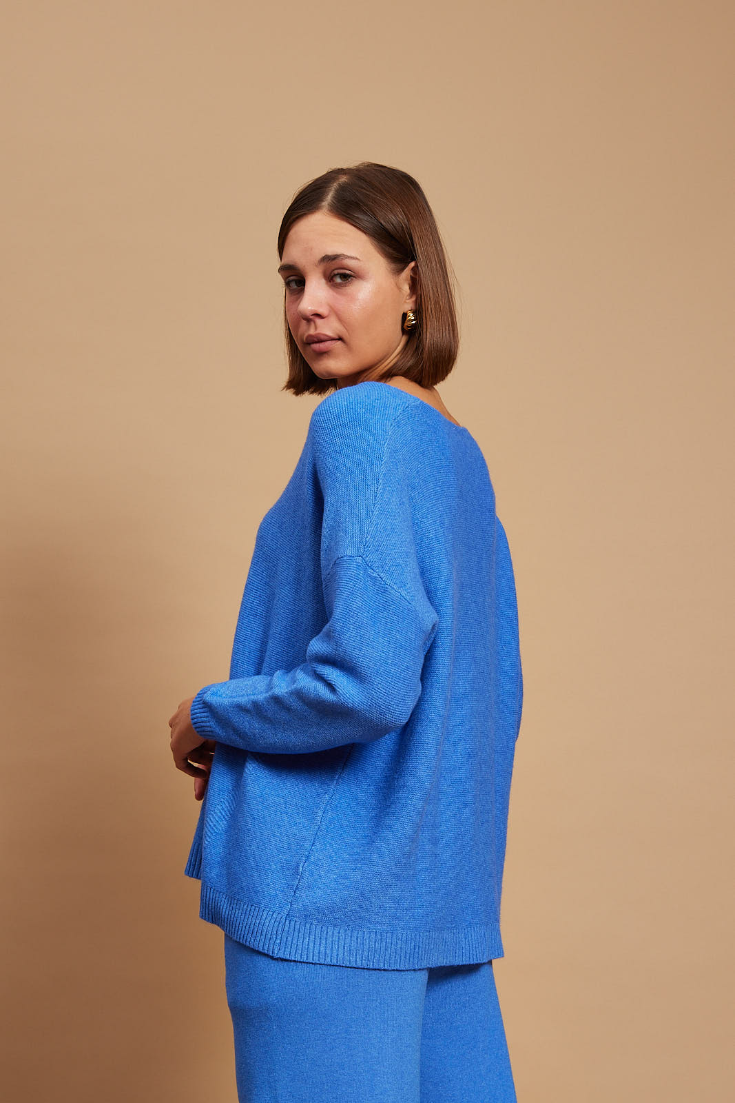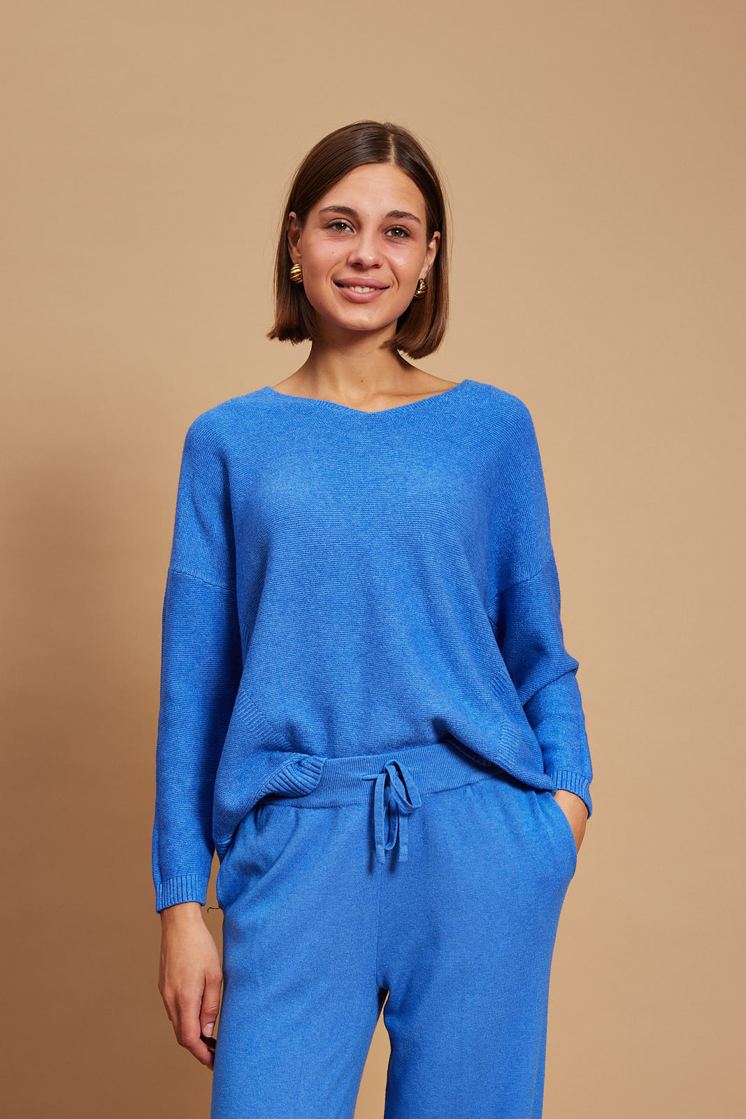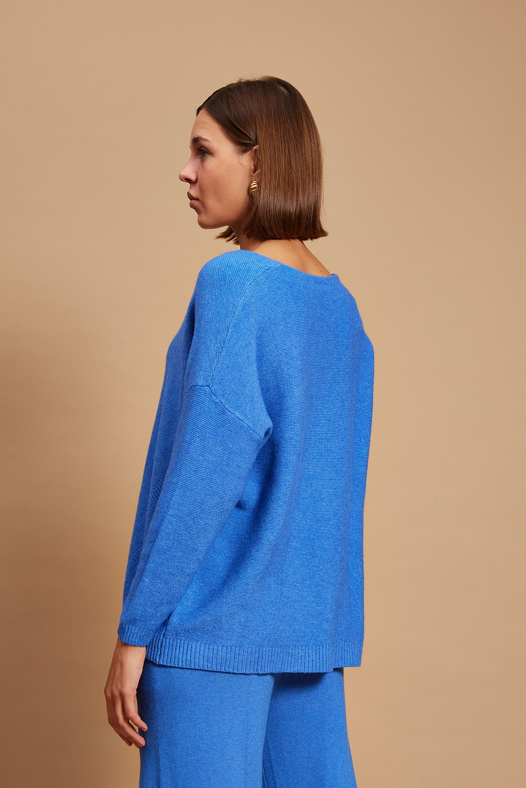 Pandora sweater offers refined comfort. It’s finely knitted with touches of viscose for a really lightweight and breathable handle. The striking hue will instantly freshen up your complexion and complements everything from neutral tones to dark denim. Designed in a classic v neck shape,  in a relaxed fit and has ribbed trims to enhance the sleeves.  Wear it solo or underpin it with a collared shirt or simple tee. Wear yours with high-rise jeans or tailoring. We have the coordinating pants in our edit, too.