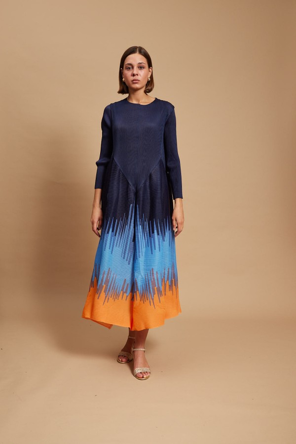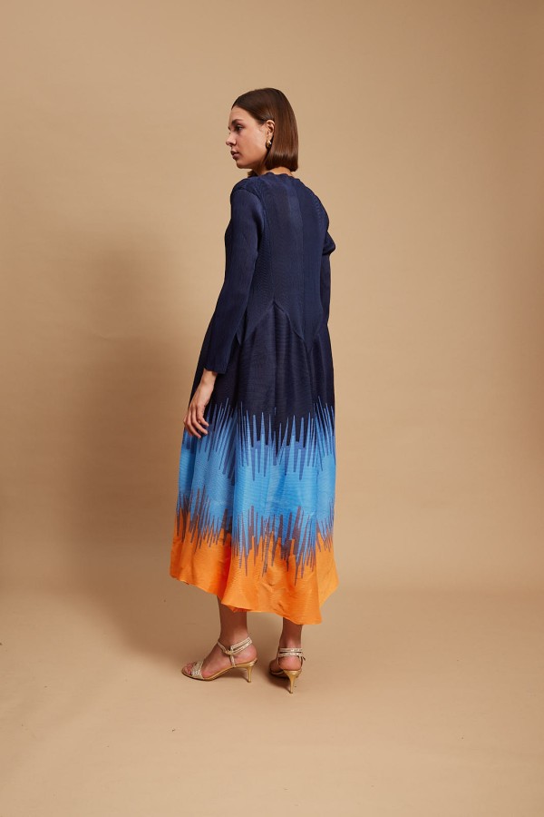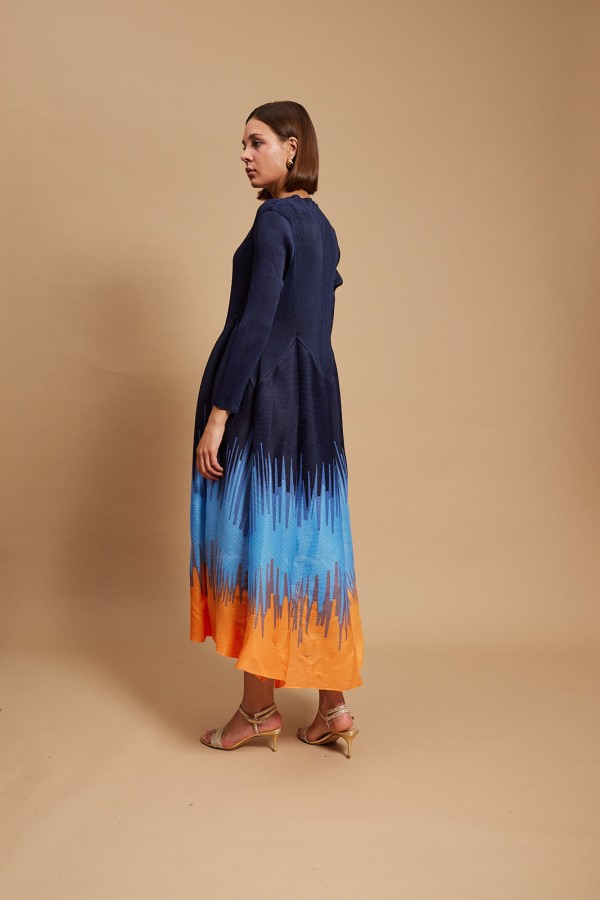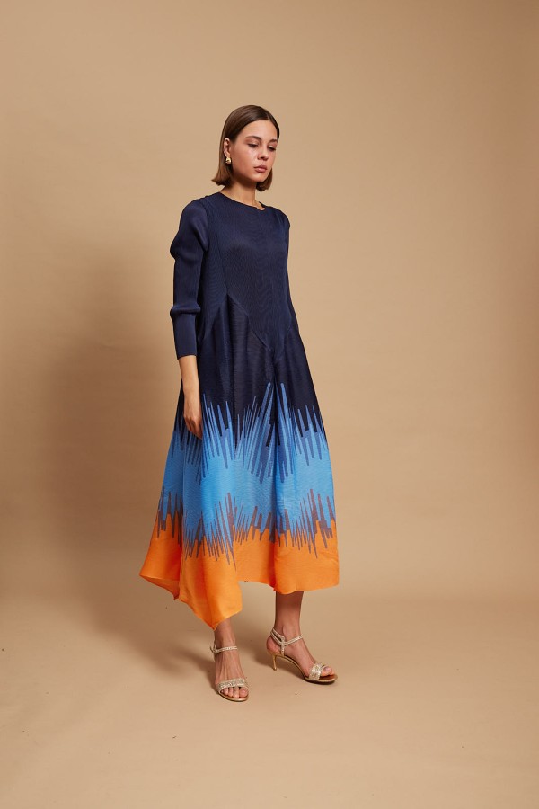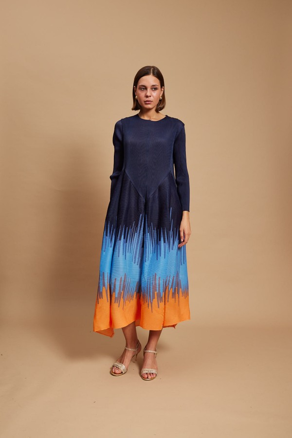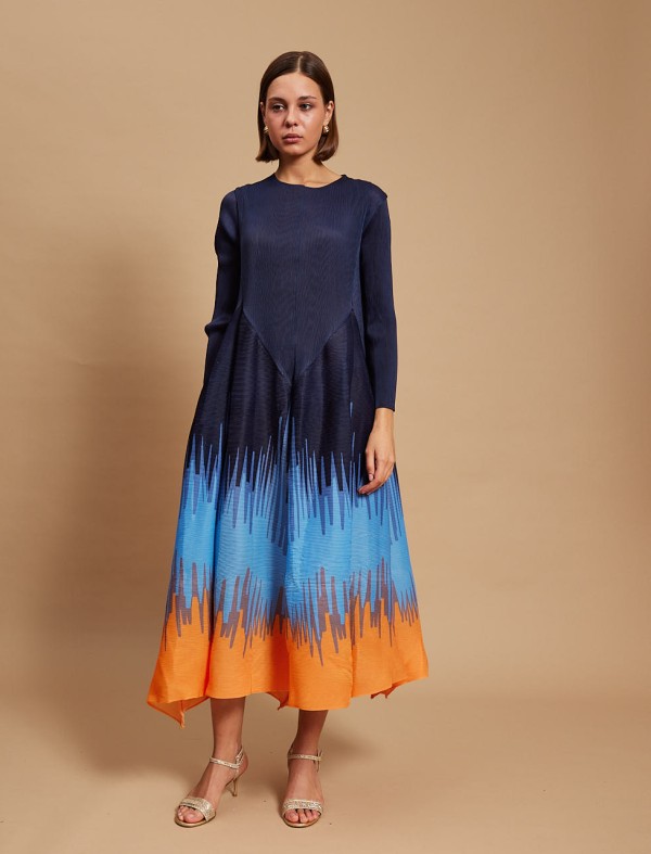 Princess midi plisse dress is patterned with monochromatic print  for a retro feel. Cut from lightweight polyester, it’s sharply pleated throughout for beautiful texture and movement and has a long sleeves. It is the kind of glamorous style that’ll ensure all eyes are on you . The cinched waist has generous pleated that create a dramatic hourglass shape. Style yours with tights and ankle boots.