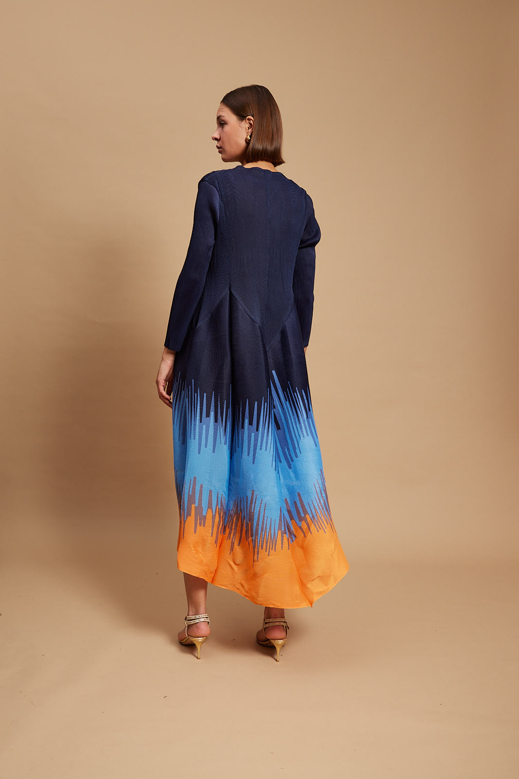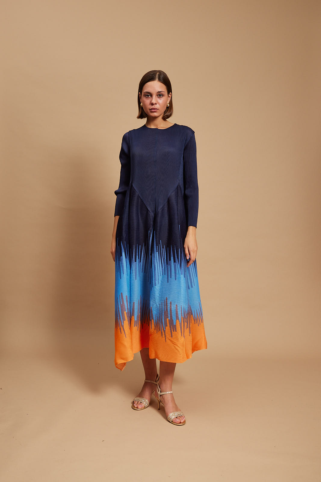 Princess midi plisse dress is patterned with monochromatic print  for a retro feel. Cut from lightweight polyester, it’s sharply pleated throughout for beautiful texture and movement and has a long sleeves. It is the kind of glamorous style that’ll ensure all eyes are on you . The cinched waist has generous pleated that create a dramatic hourglass shape. Style yours with tights and ankle boots.