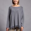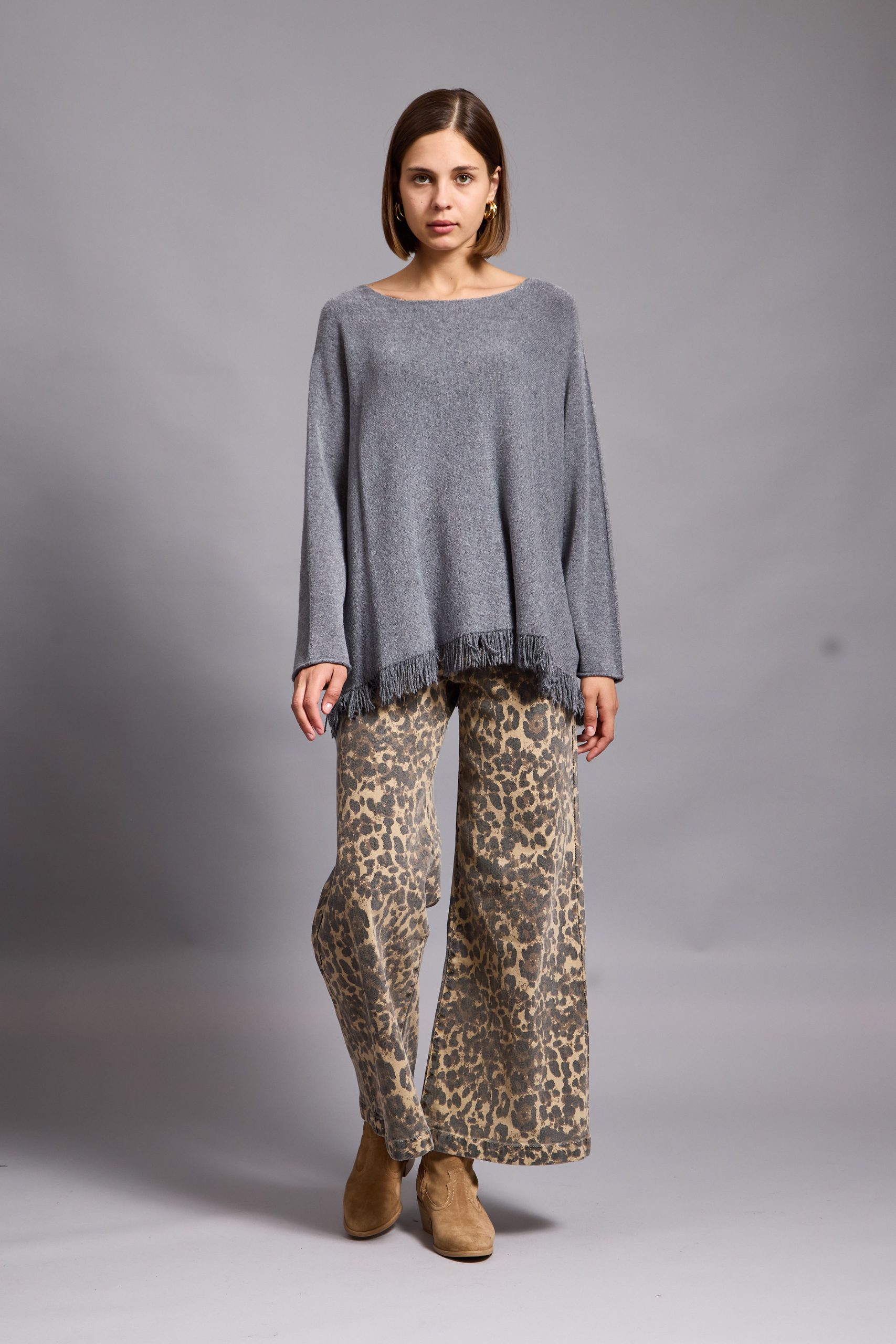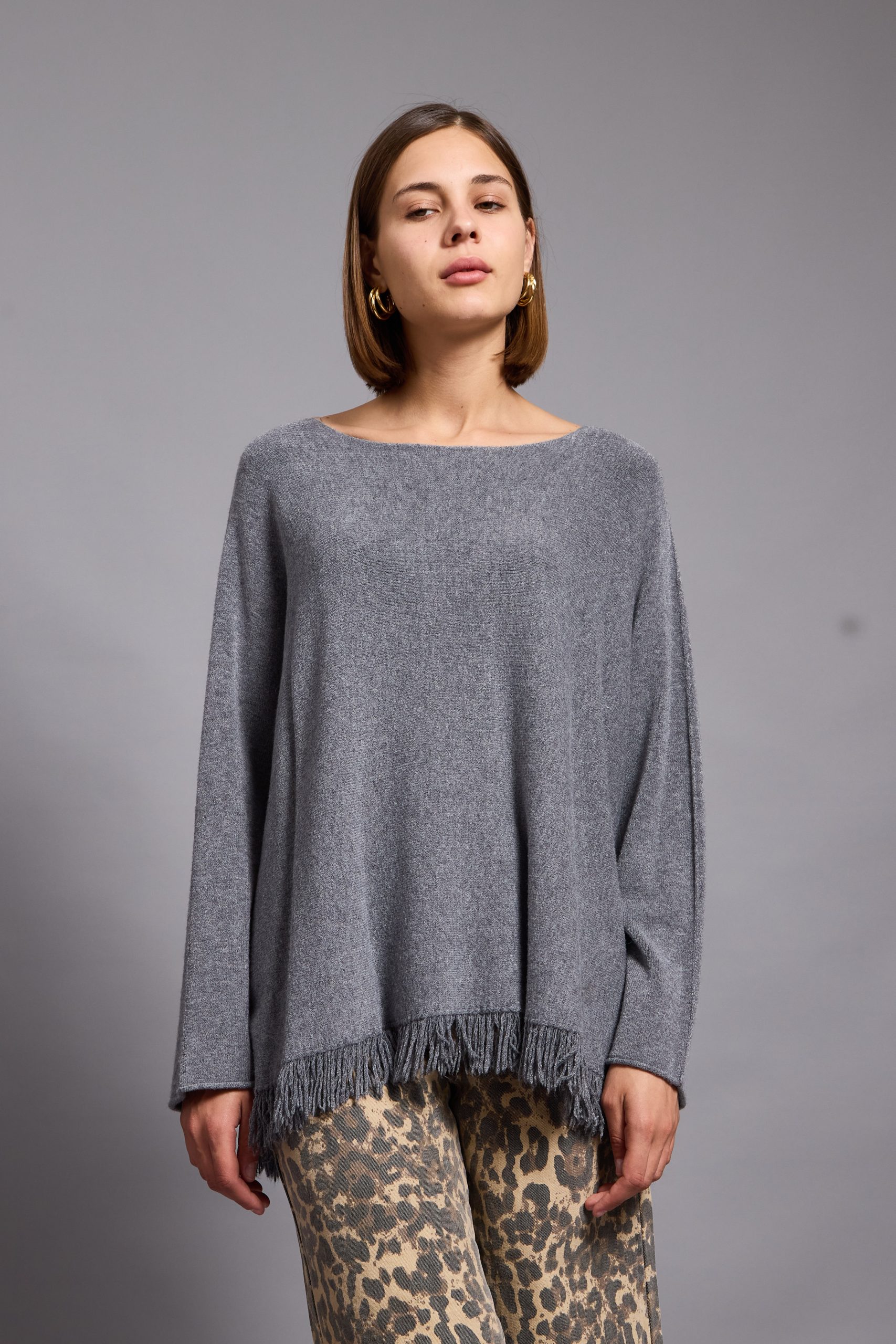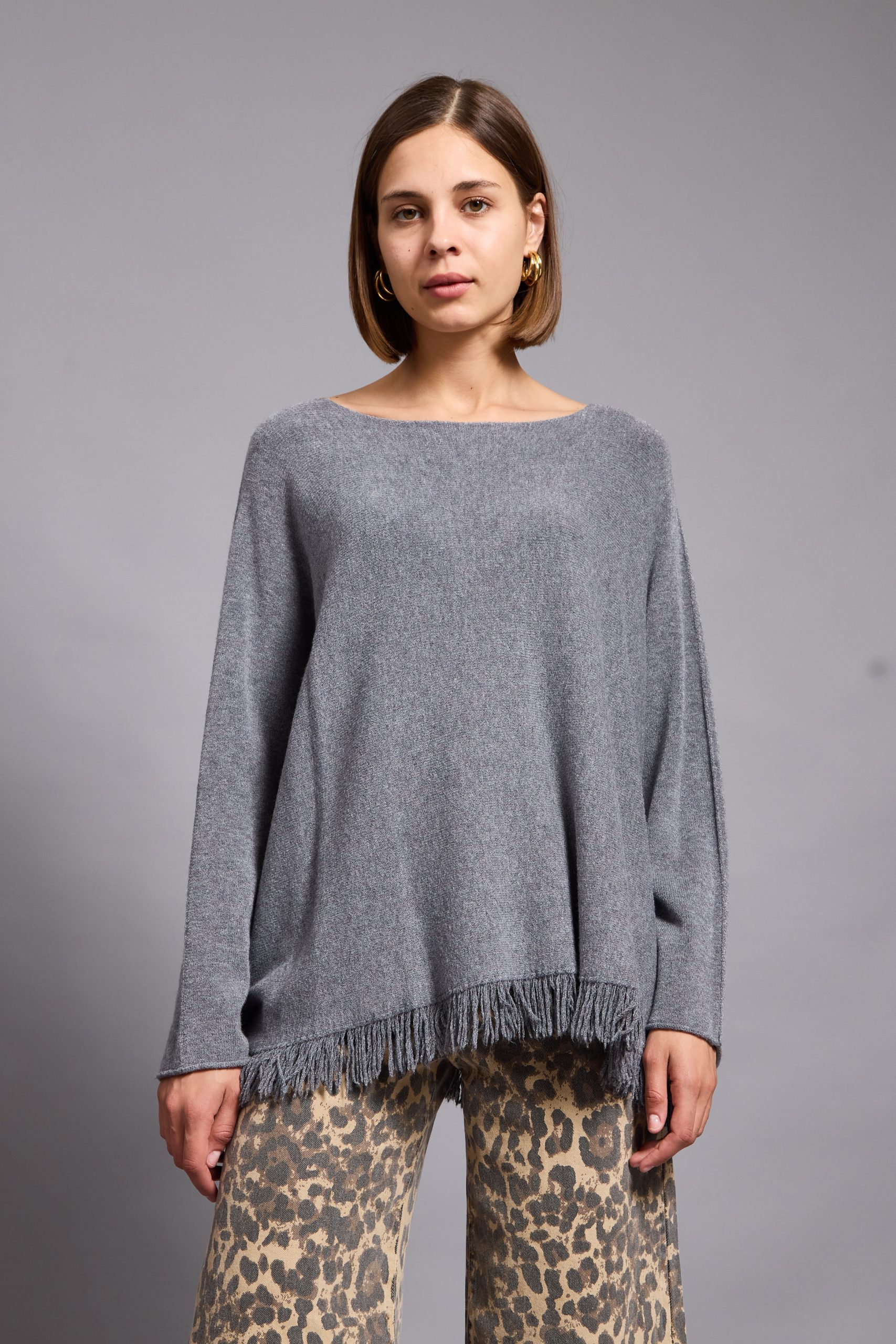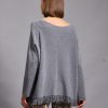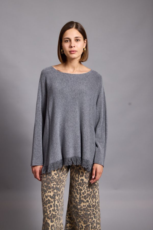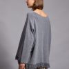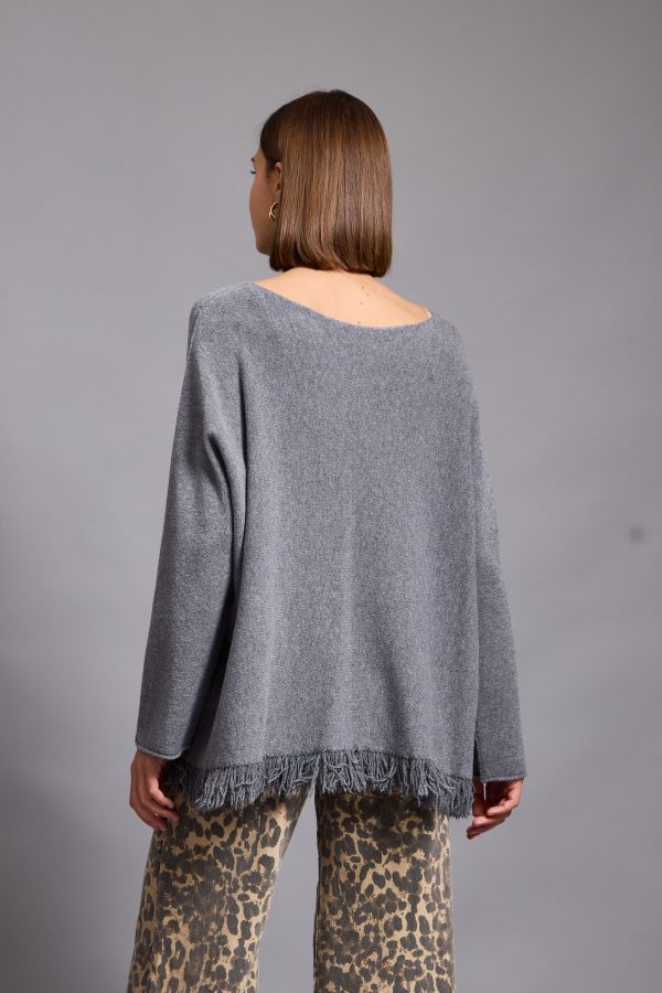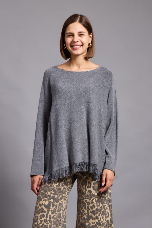 Sasha sweater is knitted from exceptionally soft viscose blend that’s spun in Italy. It feels just as soft and fuzzy as you’d imagine. Small fringed detail elevate it from a classic crew-neck style – the type of detail that sets your wardrobe staples apart. Fold it gently when you’re not wearing it to ensure it lasts for years to come. It has a fringed hem that looks so beautiful in motion.