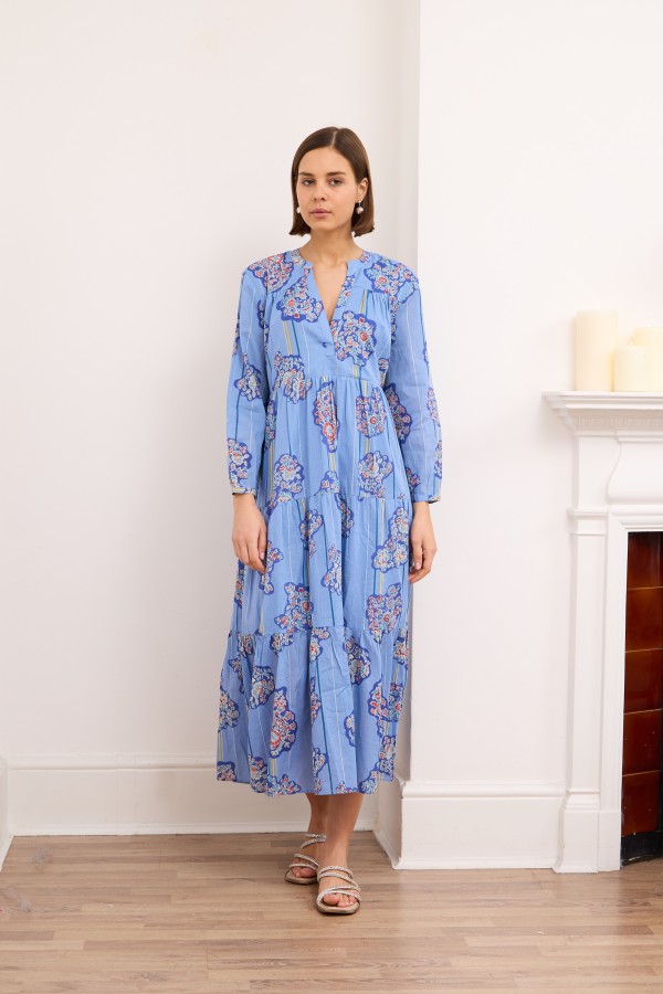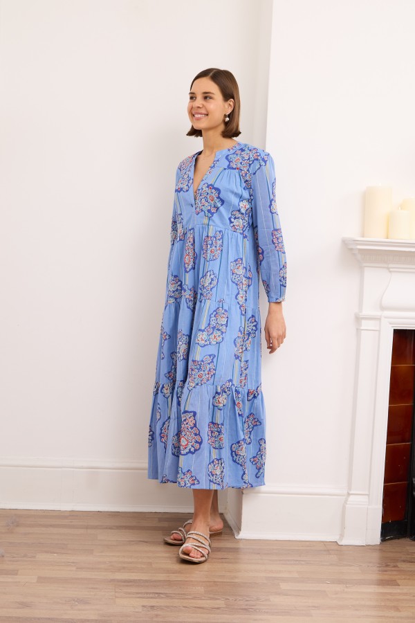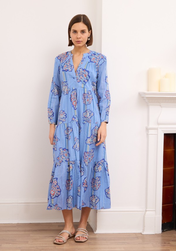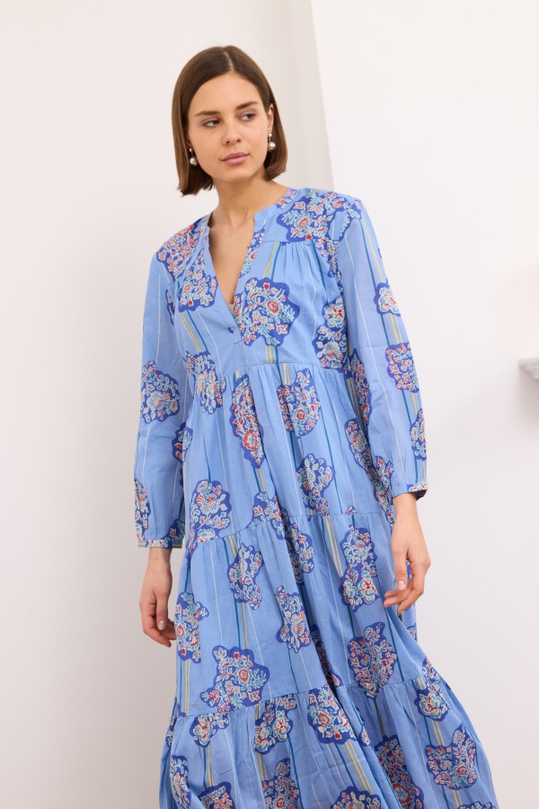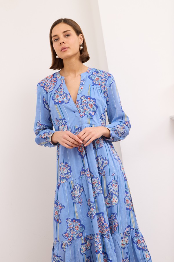 Seraphina dress has a breezy, tiered silhouette, so it’s perfect for slipping on over your swimsuit when on vacation. It’s made from fluid cotton with a bold, graphic pattern and falls to a tiered skirt. The sleeves land just below the elbows, so you can reveal your favorite timepiece. The tiered skirt flutters beautifully in summer breezes. Imbued with the label’s signature bohemian spirit, it’s cut in a relaxed silhouette . Wear yours with everything from sneakers to mules.